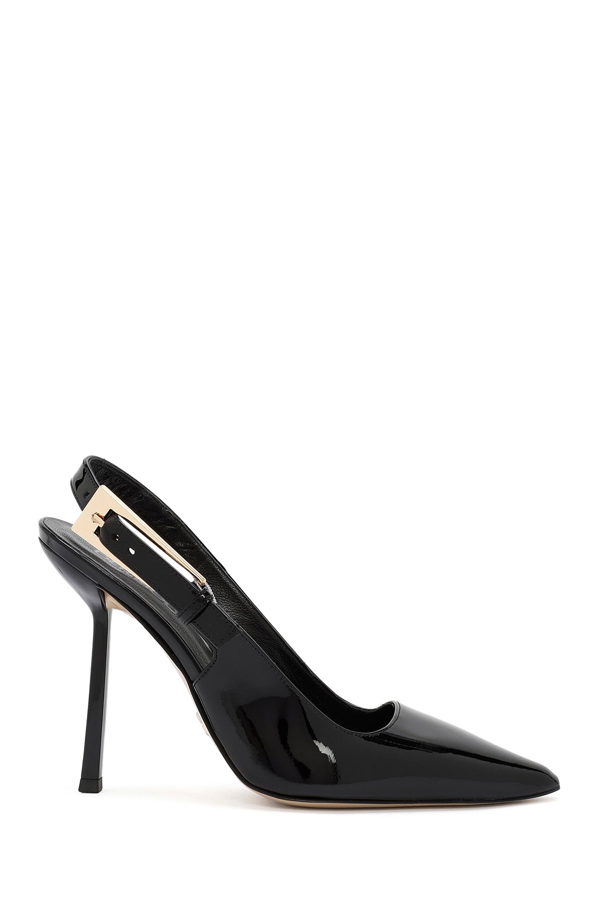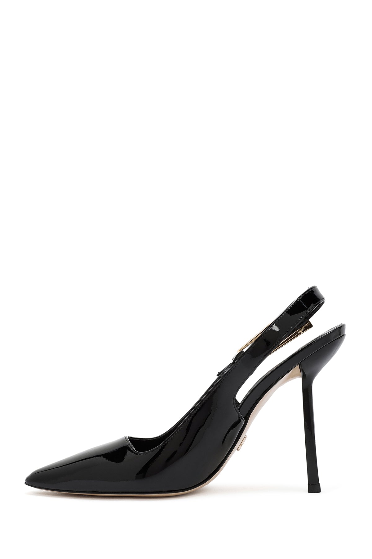 Derimod'un sonbahar koleksiyonundan, rugan deri kullanılarak tasarlanan siyah ayakkabı modeli, 12 cm yüksekliğindeki ince topuğu ile zarif bir duruş sergiliyor. Arkası açık tasarımı ve sivri burun detayı ile modern bir görünüm sunan model, deri iç astarı ile şık bir kullanım sağlıyor. Klasik çizgileri ile öne çıkan ayakkabı, elbiselerden eteklere, pantolonlardan takımlara kadar geniş bir kullanım alanı sunuyor. İlkbahar ve sonbahar mevsimlerinde özel davetlerden iş yaşamına kadar pek çok ortamda tercih edilebilir. Ürün kodu: 25AFD120316