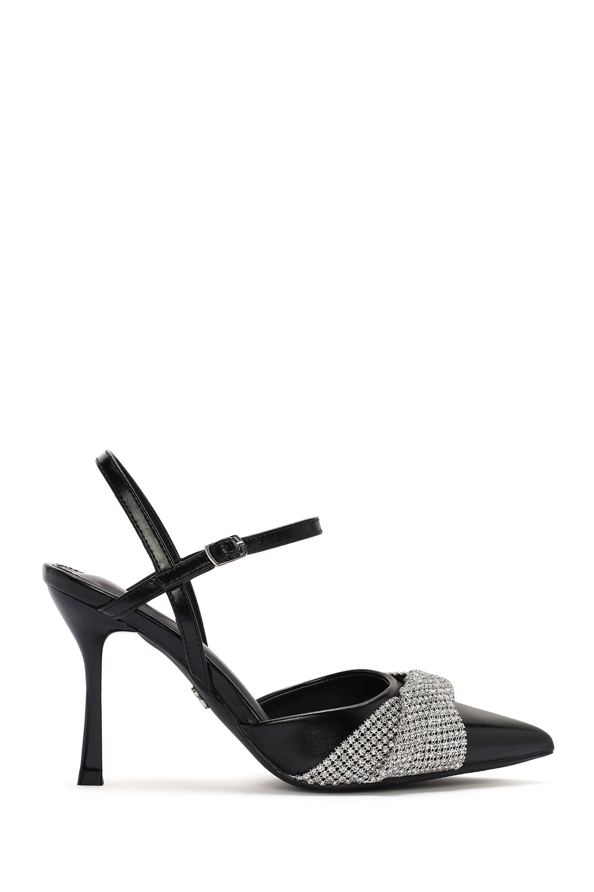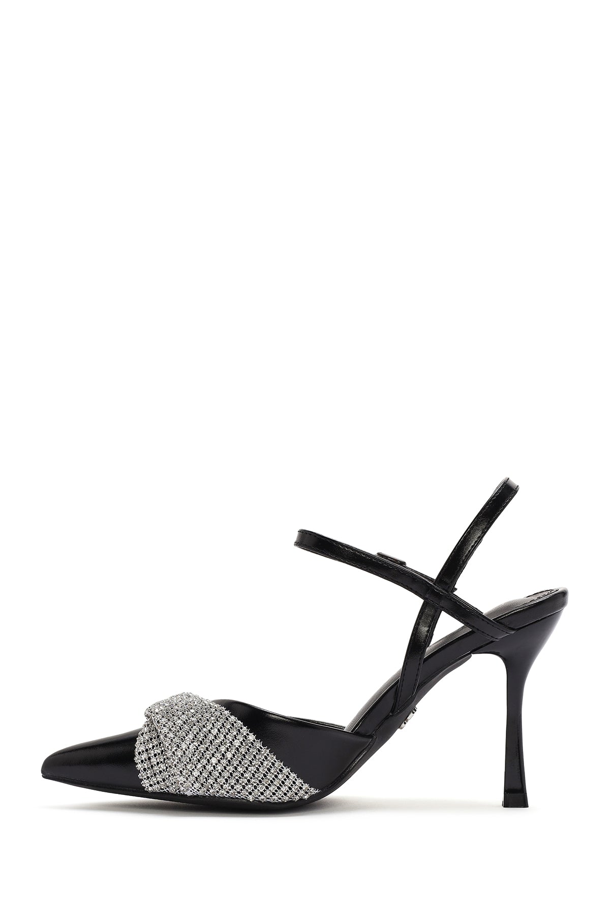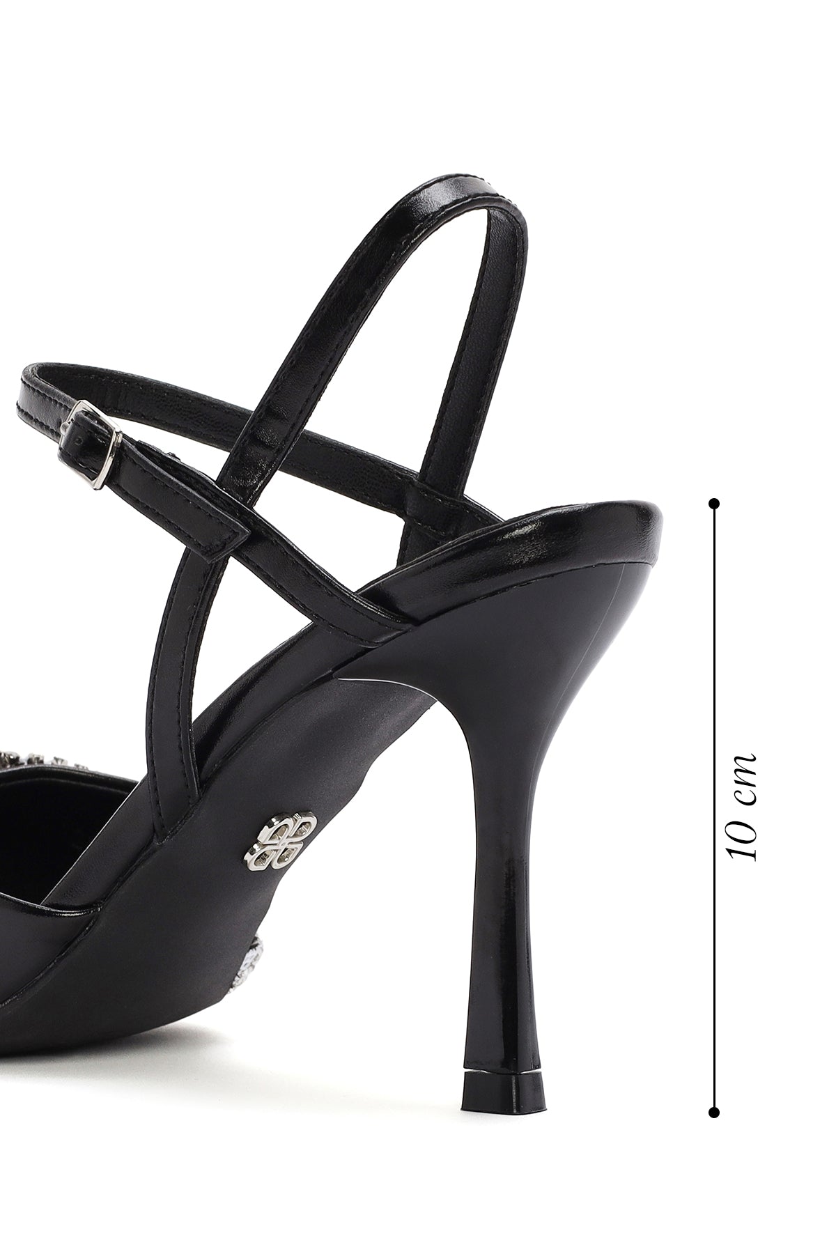 Kadın Siyah Arkası Açık Yüksek Topuklu Taşlı Stiletto