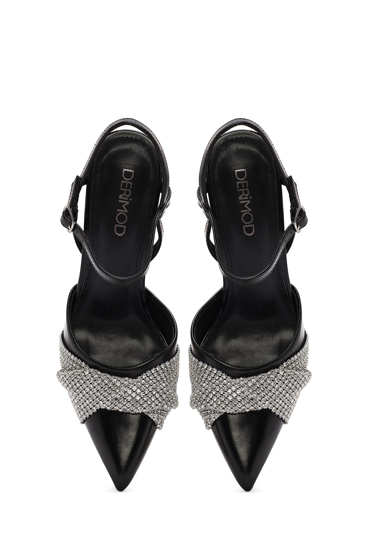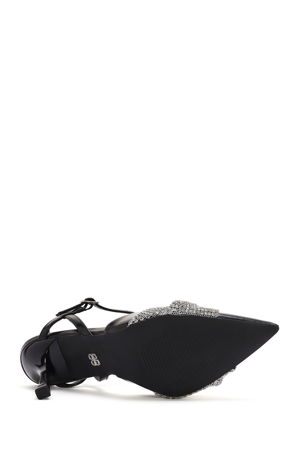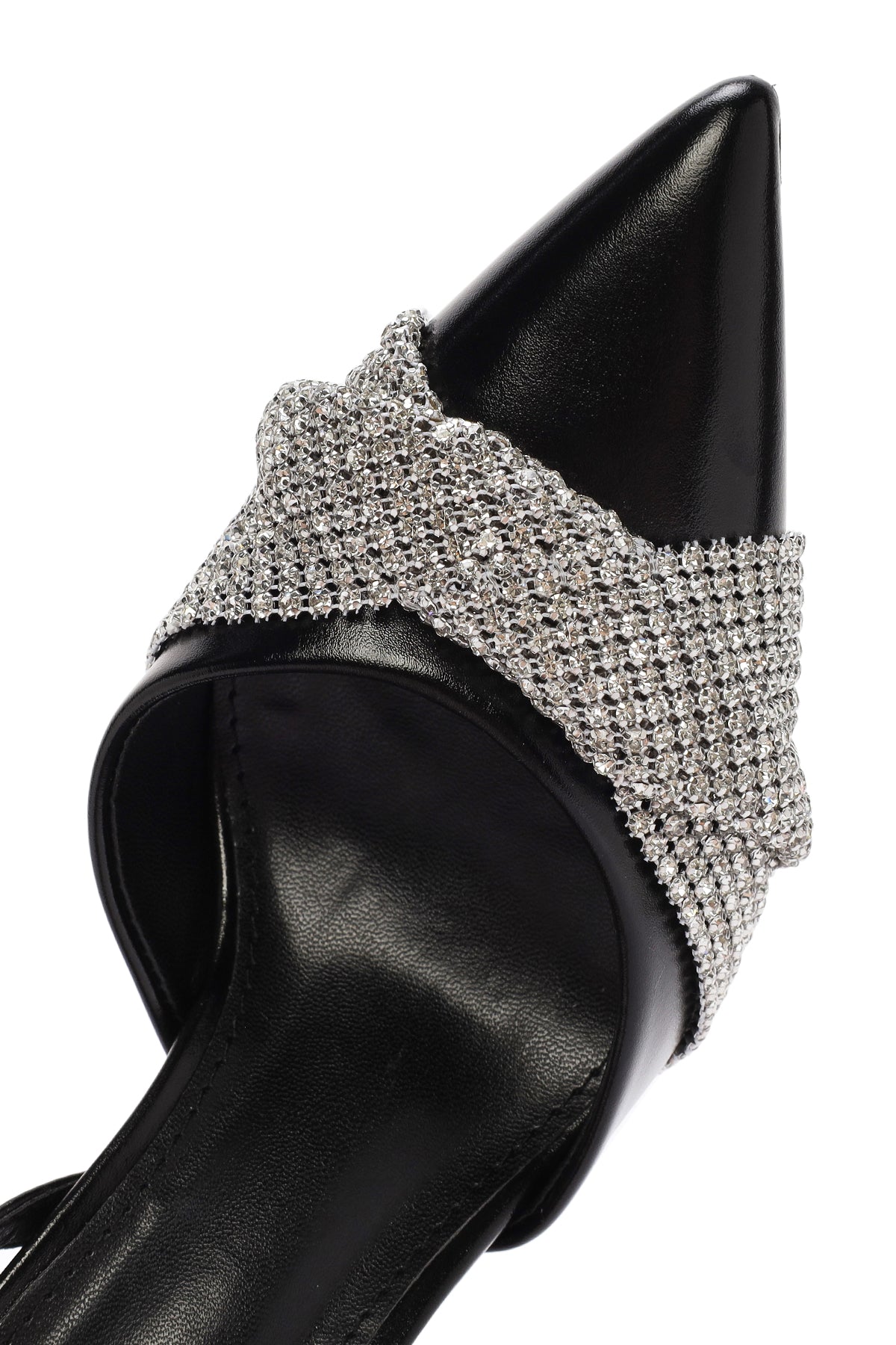 Kadın Siyah Arkası Açık Yüksek Topuklu Taşlı Stiletto