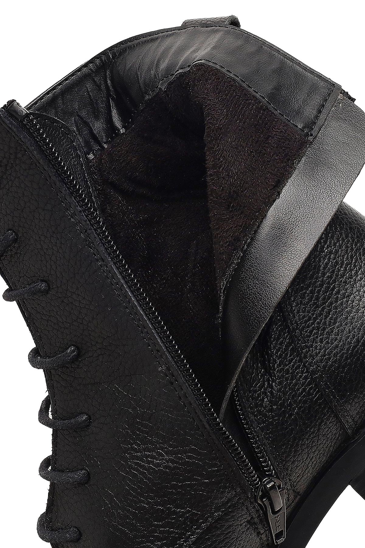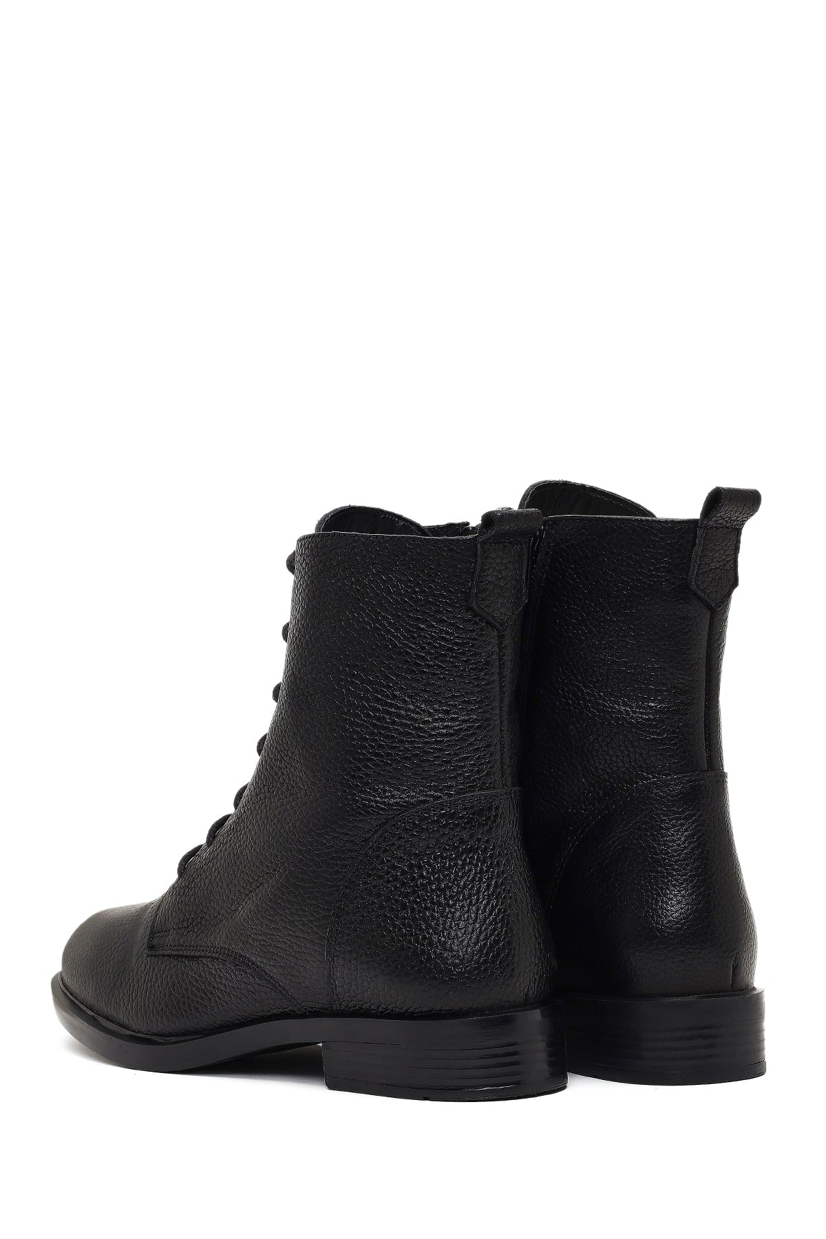 Kadın Siyah Bağcıklı Fermuarlı Deri Bot