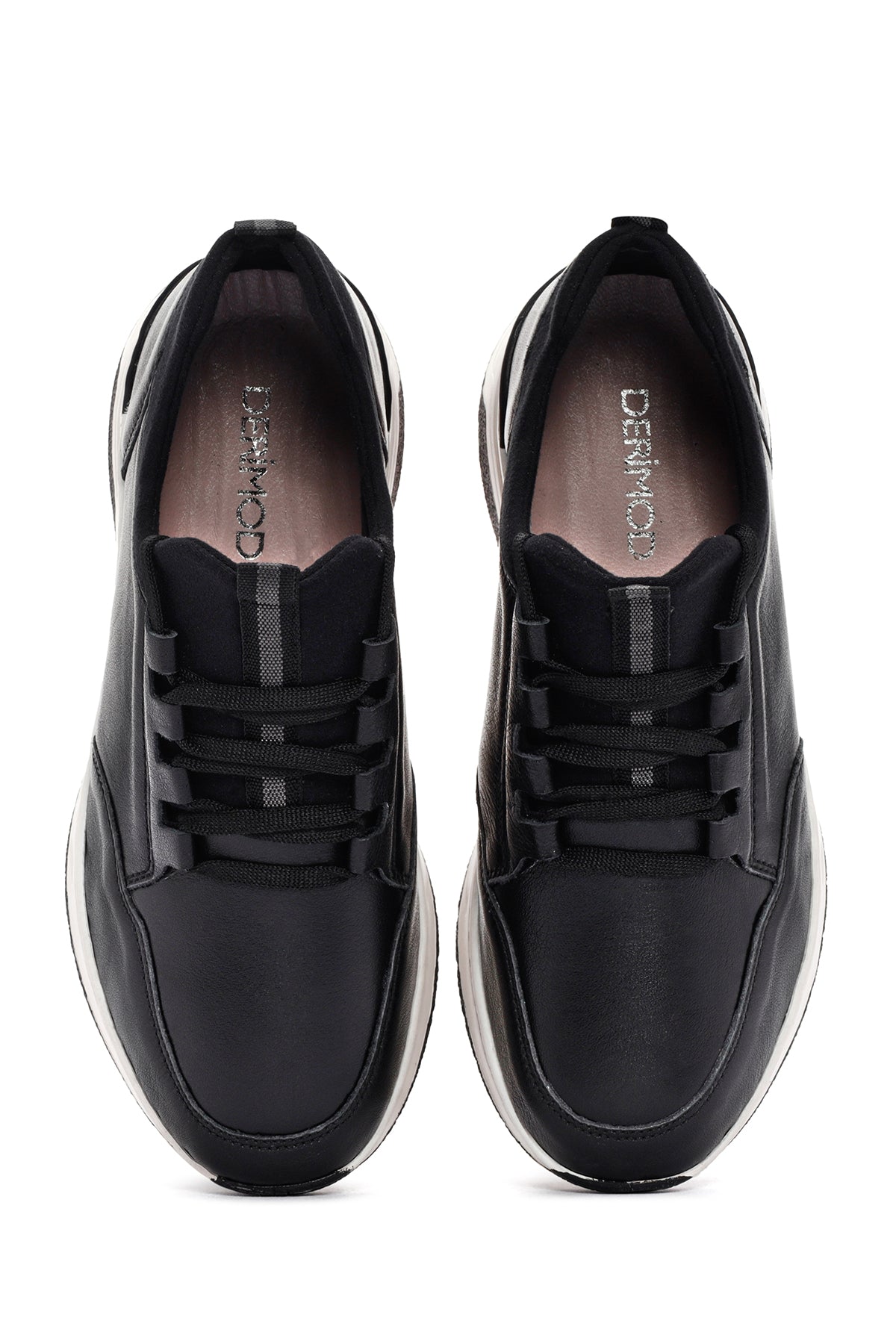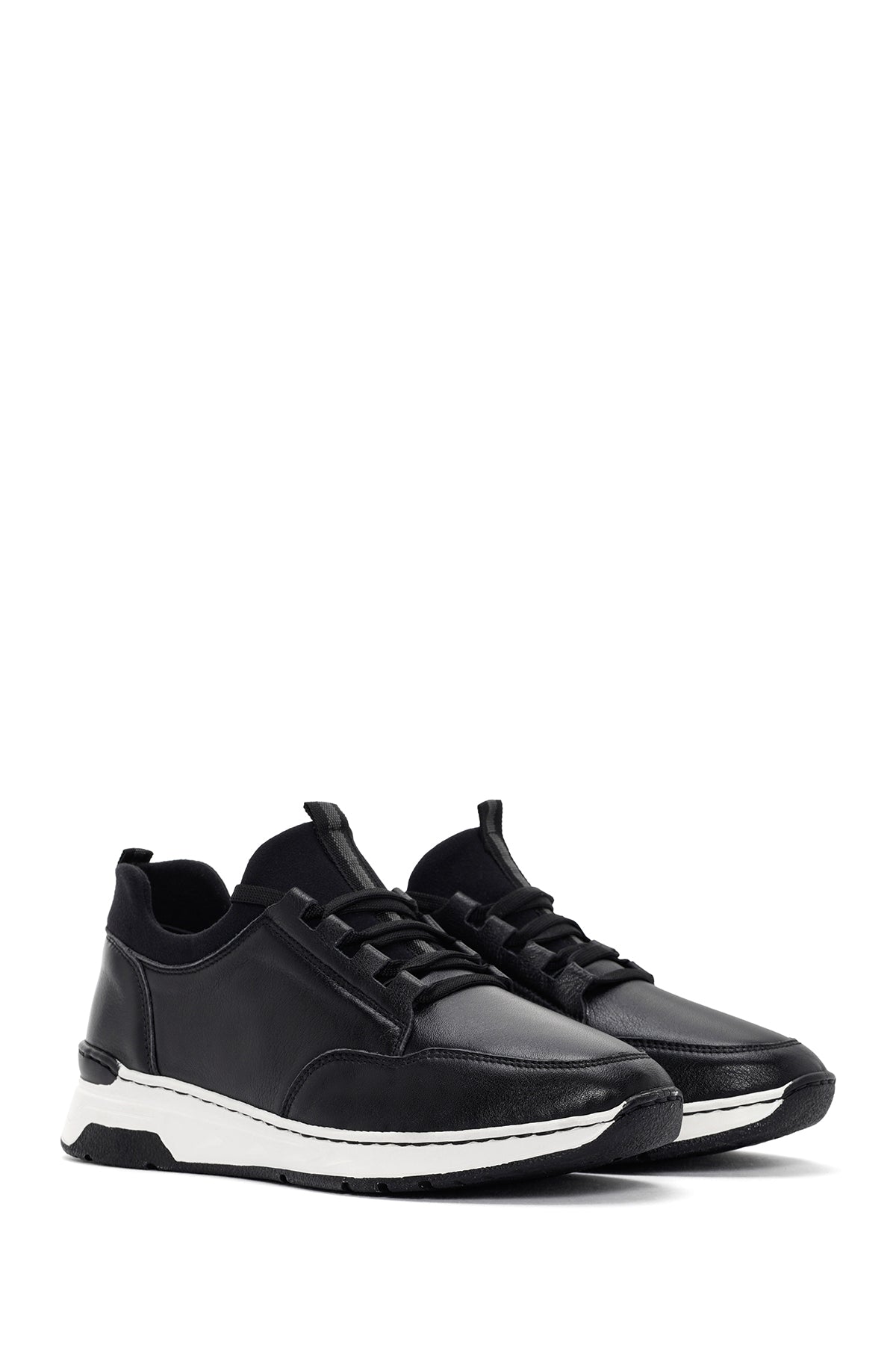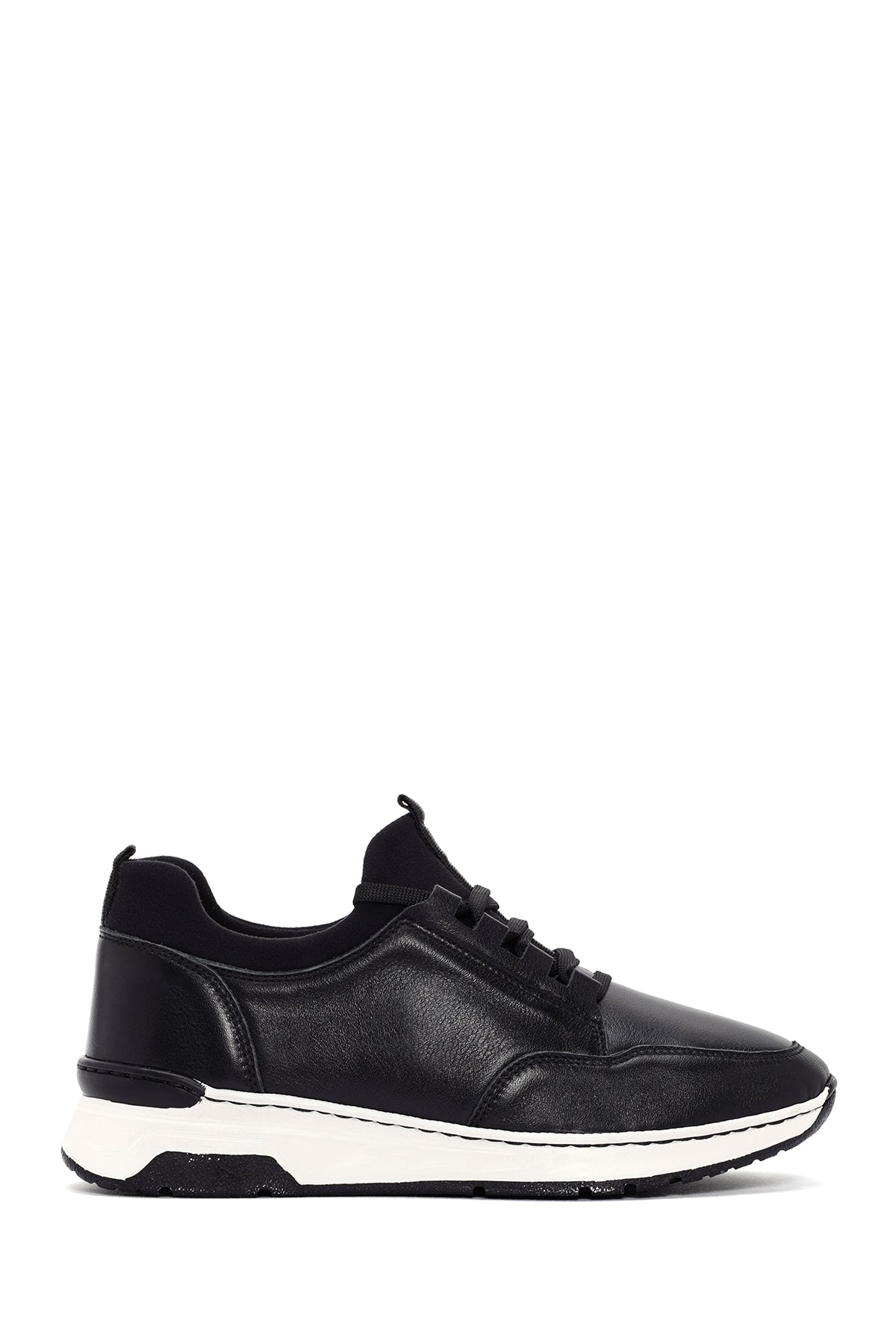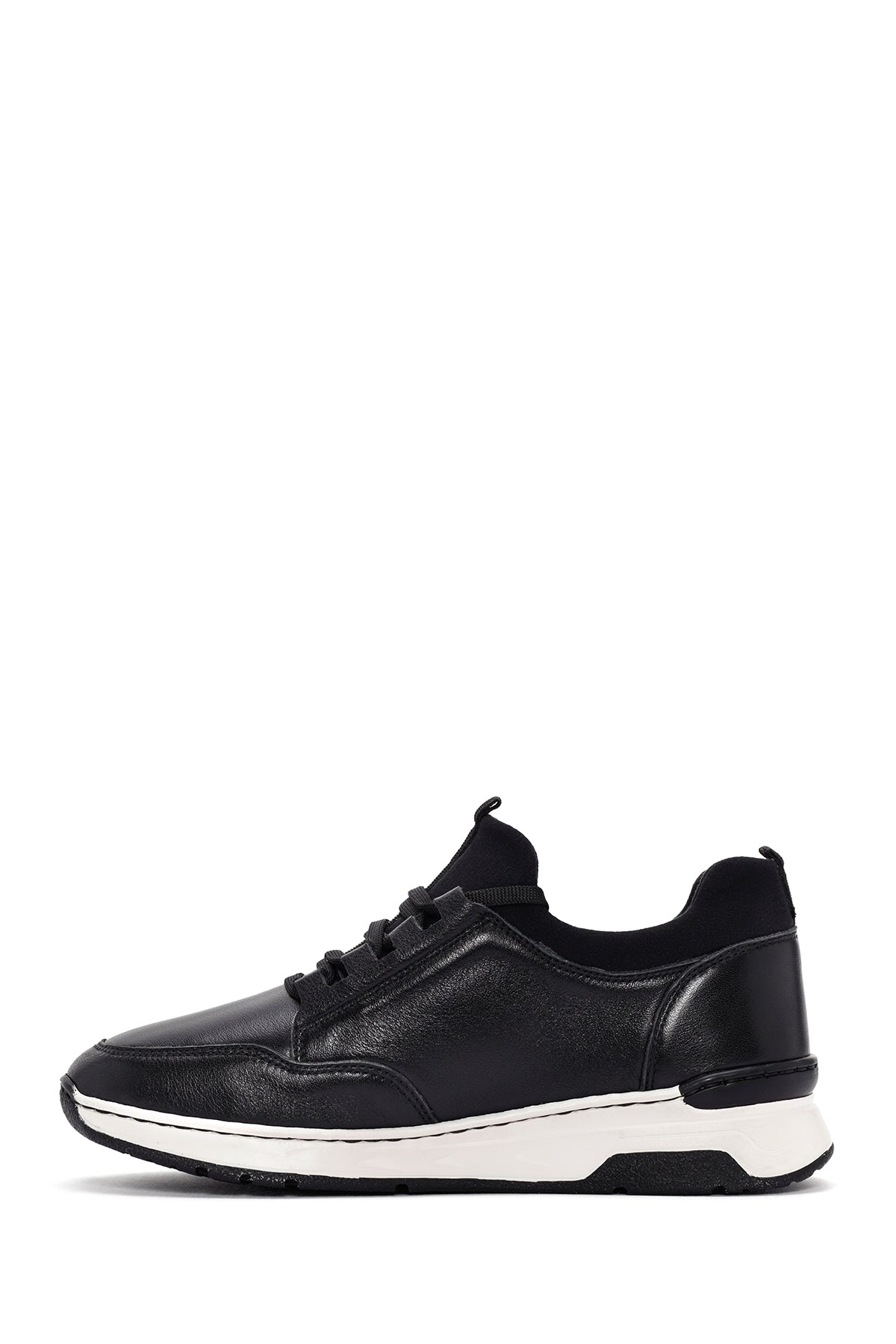 Kadın Siyah Bağcıklı Kalın Tabanlı Deri Sneaker