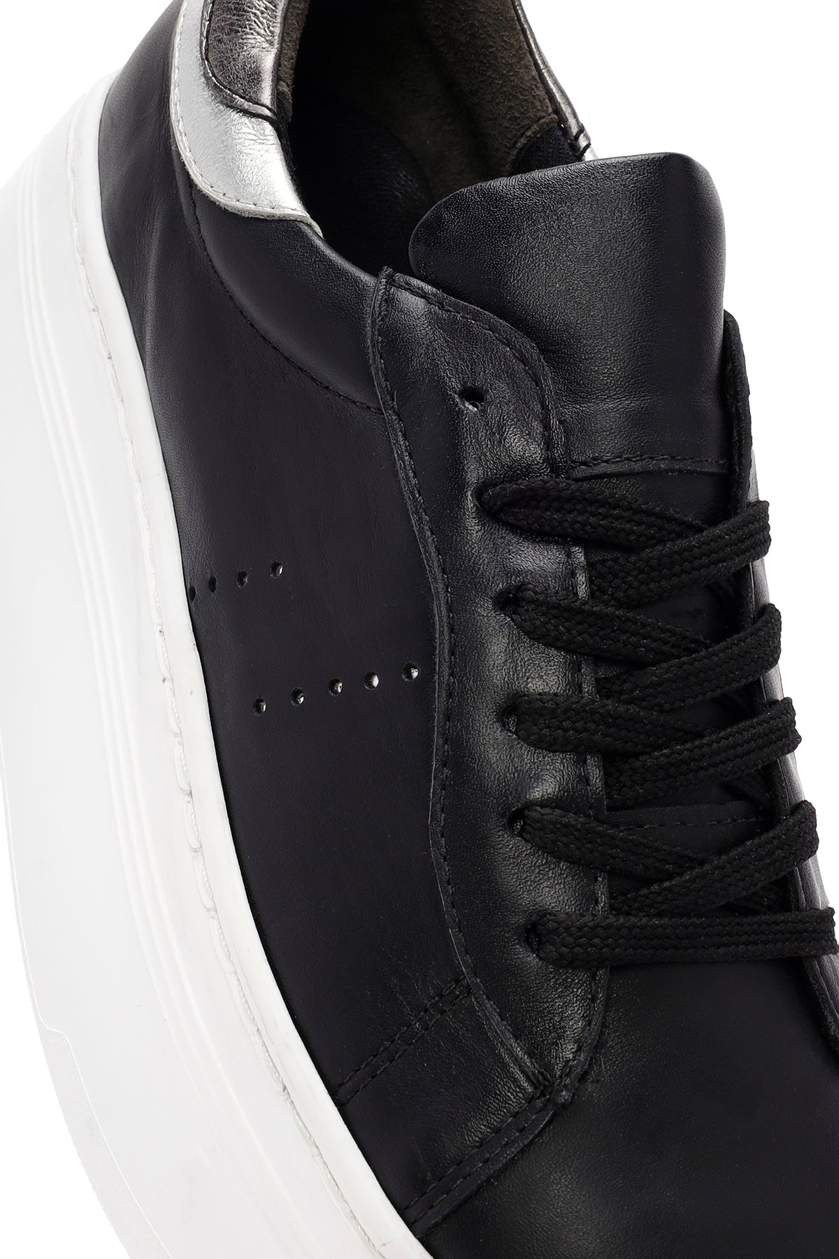 Karışık deri malzemeden üretilen bu sneaker, kış sezonunun modern ve dinamik parçalarından biridir. Bağcıklı tasarımı ile kolay giyim sunan model, 4 cm kalın taban yüksekliği ile dengeli bir duruş sağlar. Deri-tekstil karışımlı iç astarı sayesinde nefes alabilen bir yapı sunan tasarım, dayanıklı dış tabanı ile uzun ömürlü kullanım sağlar. Siyah rengi ve çağdaş tasarımıyla spor-şık kombinlere mükemmel uyum sağlayan sneaker, sonbahar ve kış aylarında tercih edilebilir. Kullanım alanları: Günlük yaşam, spor aktiviteler, şehir gezintileri ve casual stil kombinler için idealdir. Ürün kodu: 24WFD371014