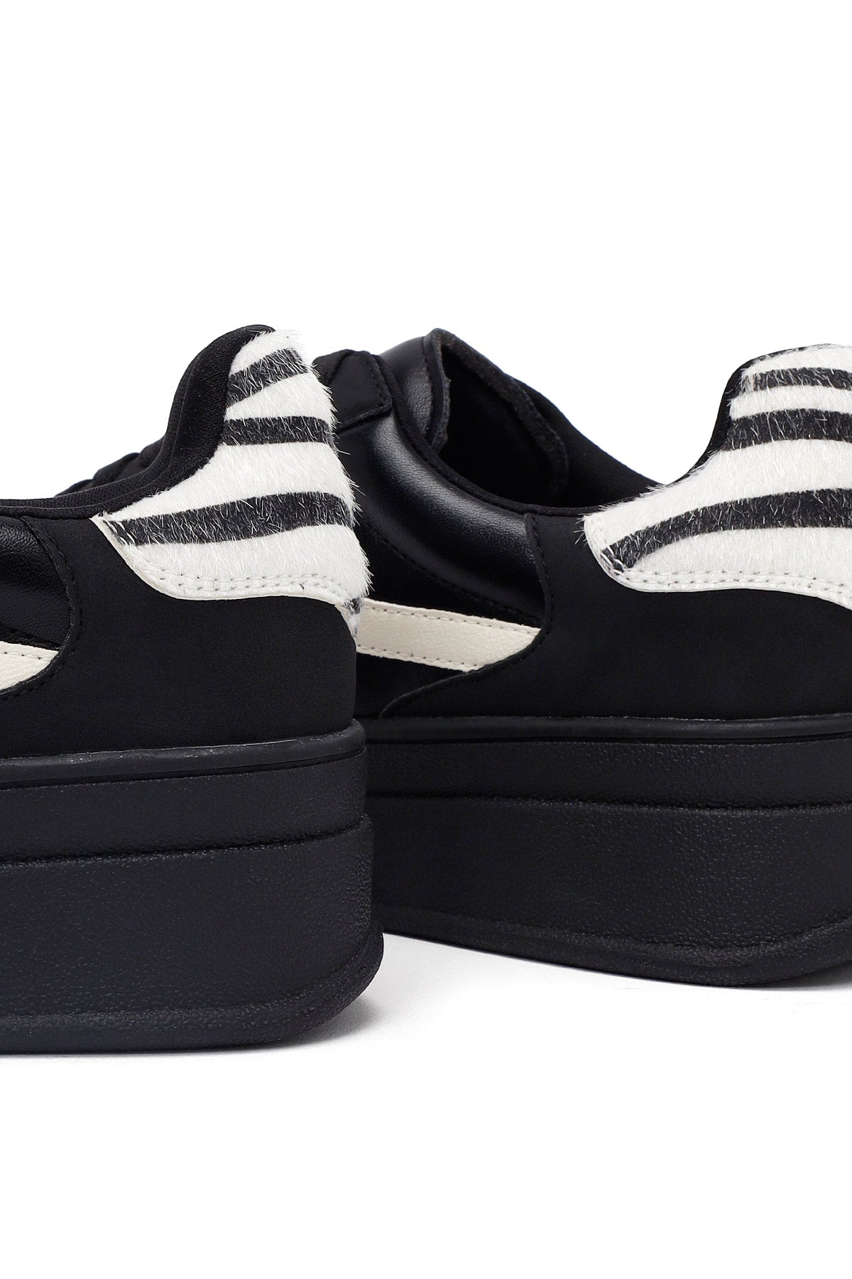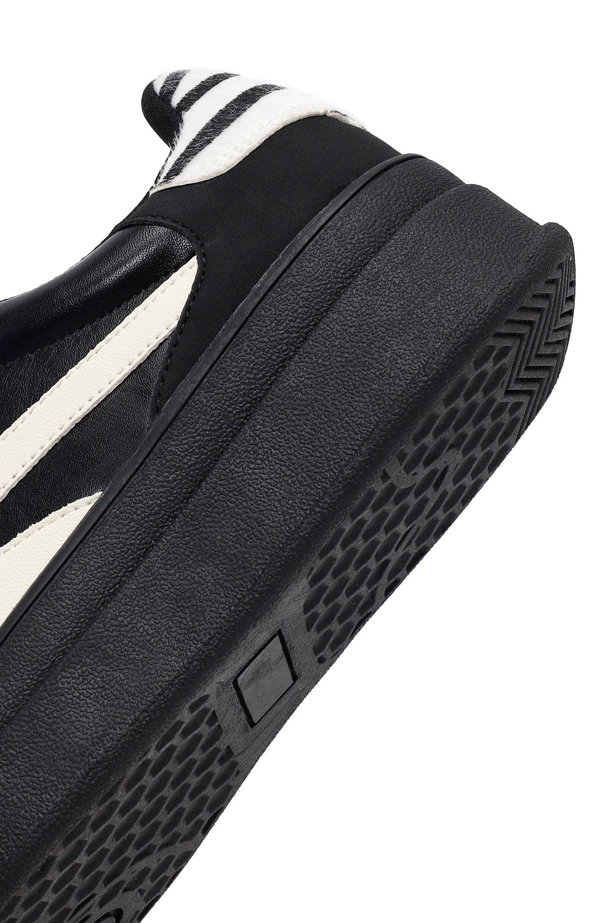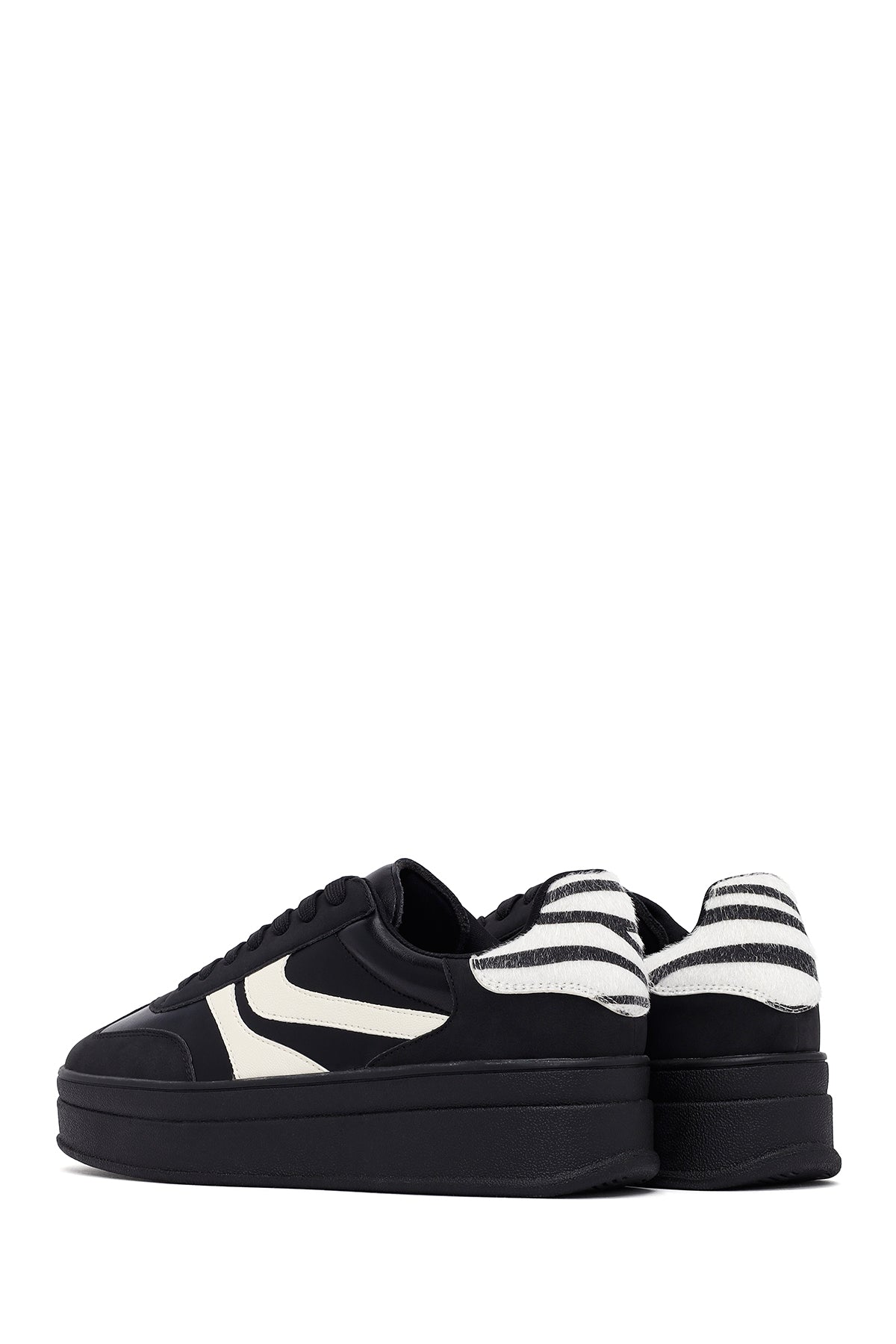 Derimod'un sonbahar koleksiyonundan, modern çizgilere sahip siyah sneaker modeli, 3,5 cm yüksekliğindeki kalın tabanı ile günlük kullanıma uygun bir tasarım sunuyor. Minimalist tasarımı ve temiz hatları ile dikkat çeken model, bağcıklı yapısı sayesinde ayağa tam oturuyor. Kalın taban detayı ile hem trend görünüm hem de boy avantajı sağlayan sneaker, jean'lerden spor takımlara, günlük elbiselerden casual kombinlere kadar geniş bir kullanım alanı sunuyor. İlkbahar ve sonbahar mevsimlerinde günün her saatinde kullanılabilir. Ürün kodu: 25AFD430814