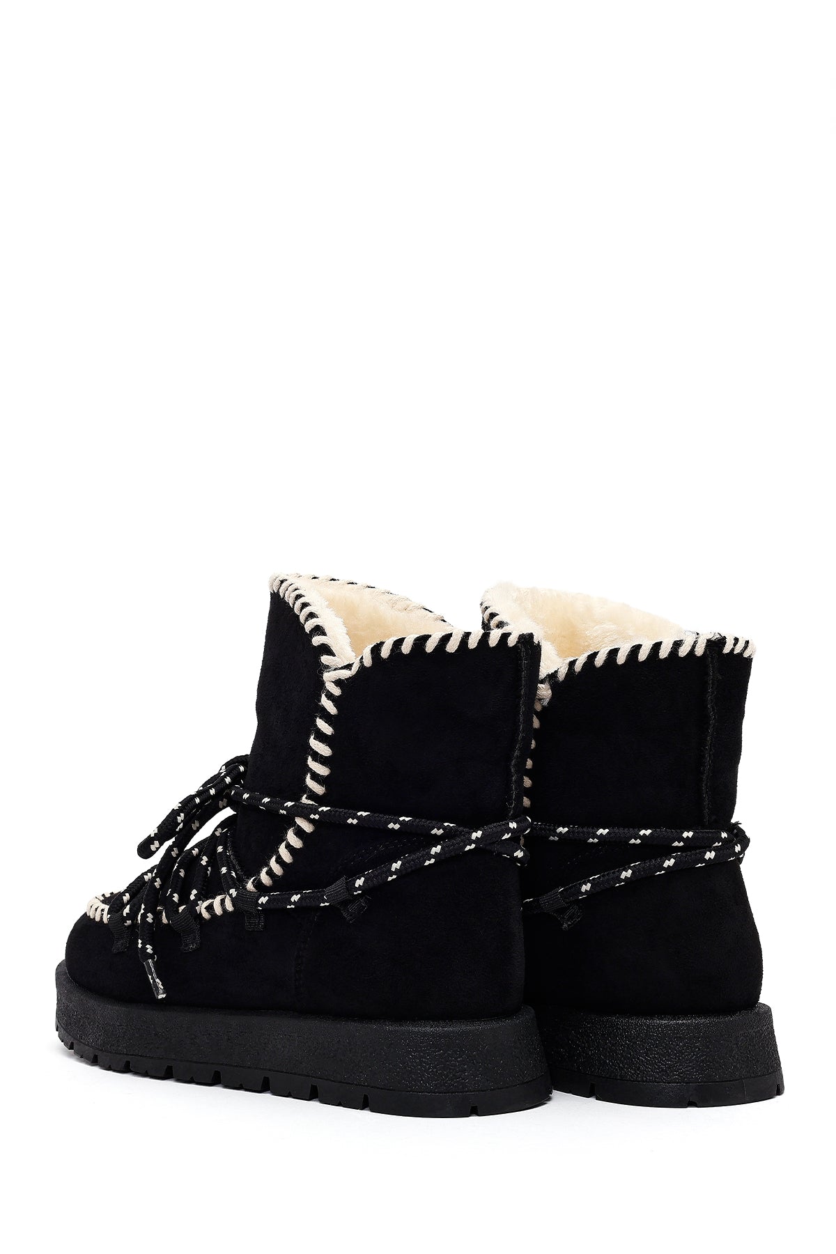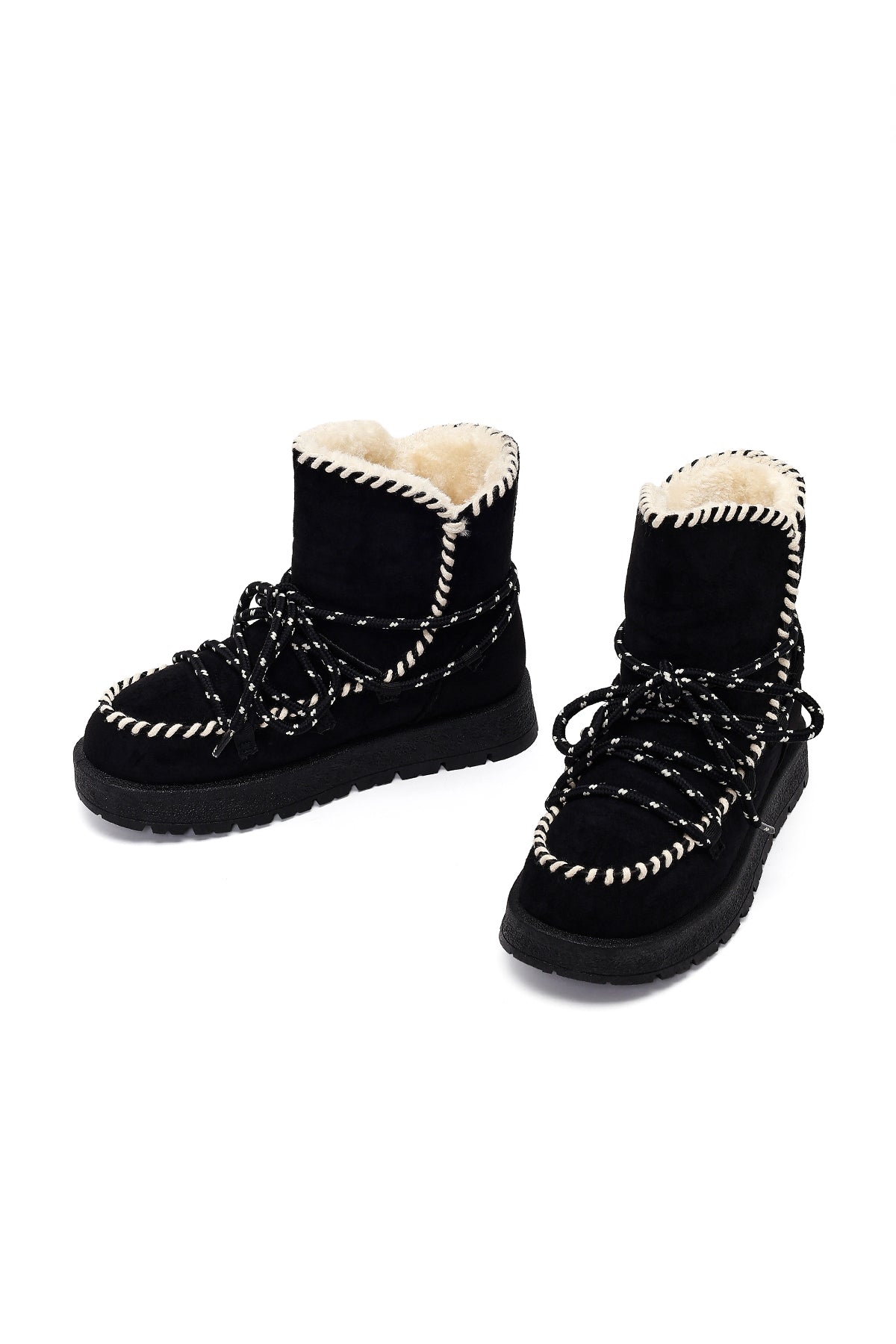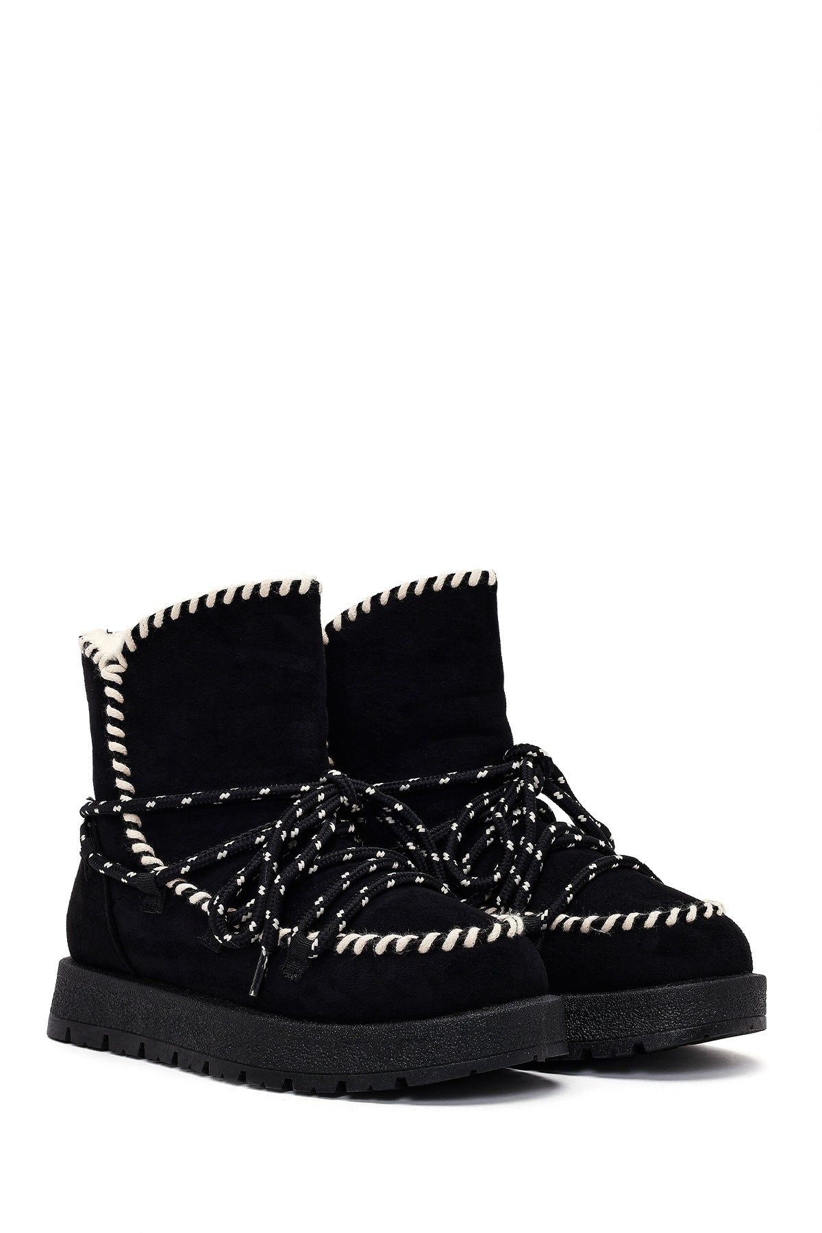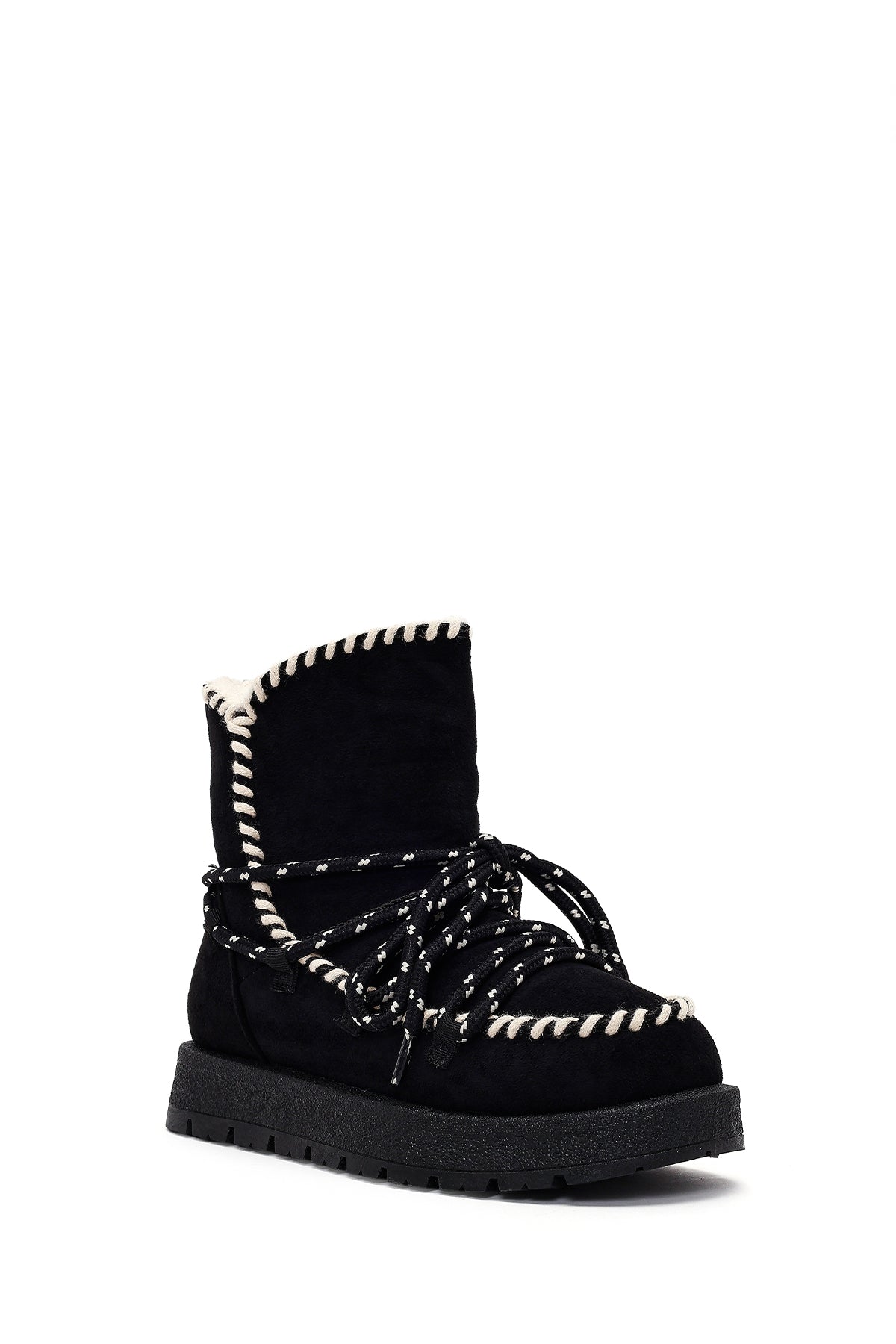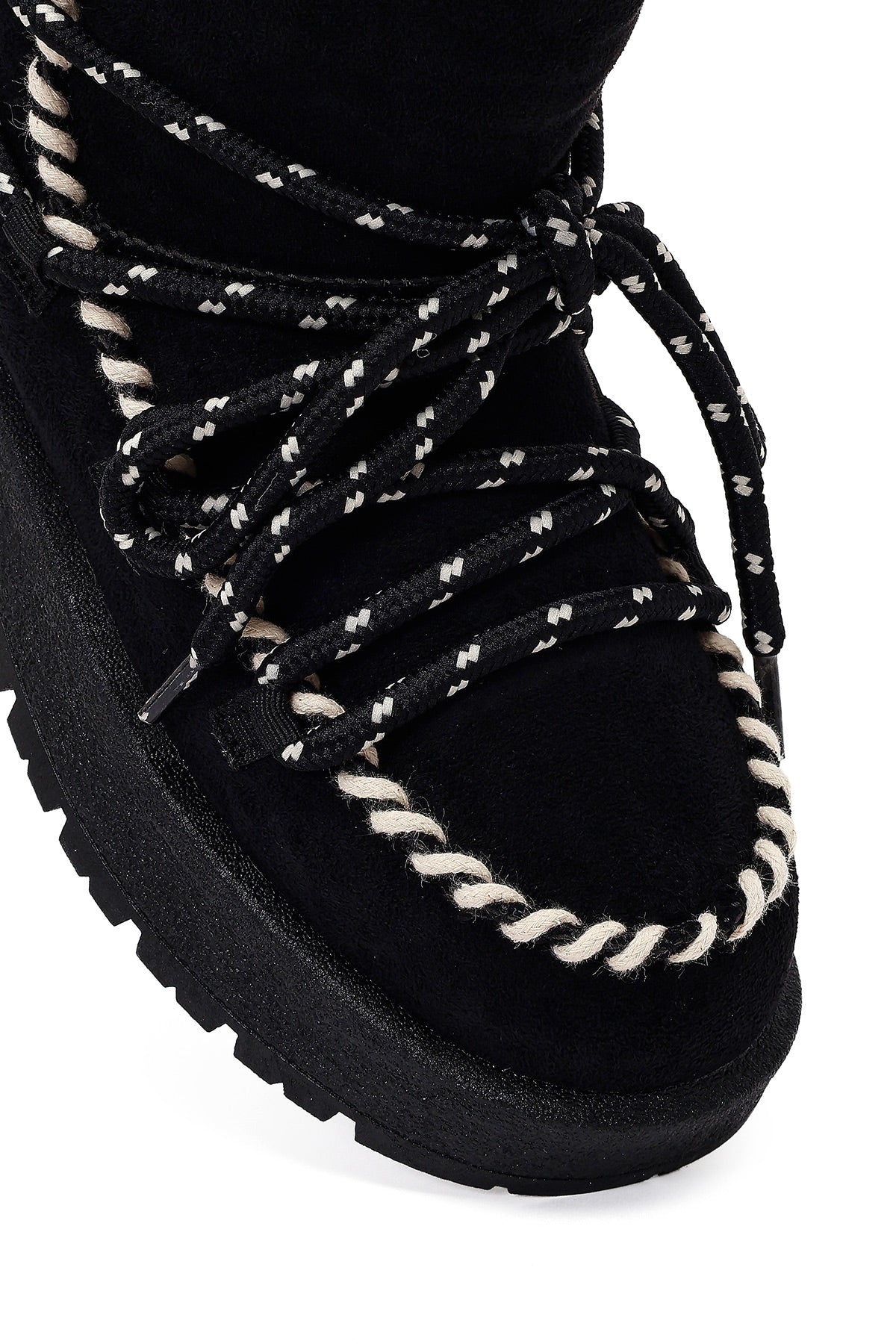 Kadın Siyah Bağcıklı Kalın Tabanlı Süet Teddy Bot