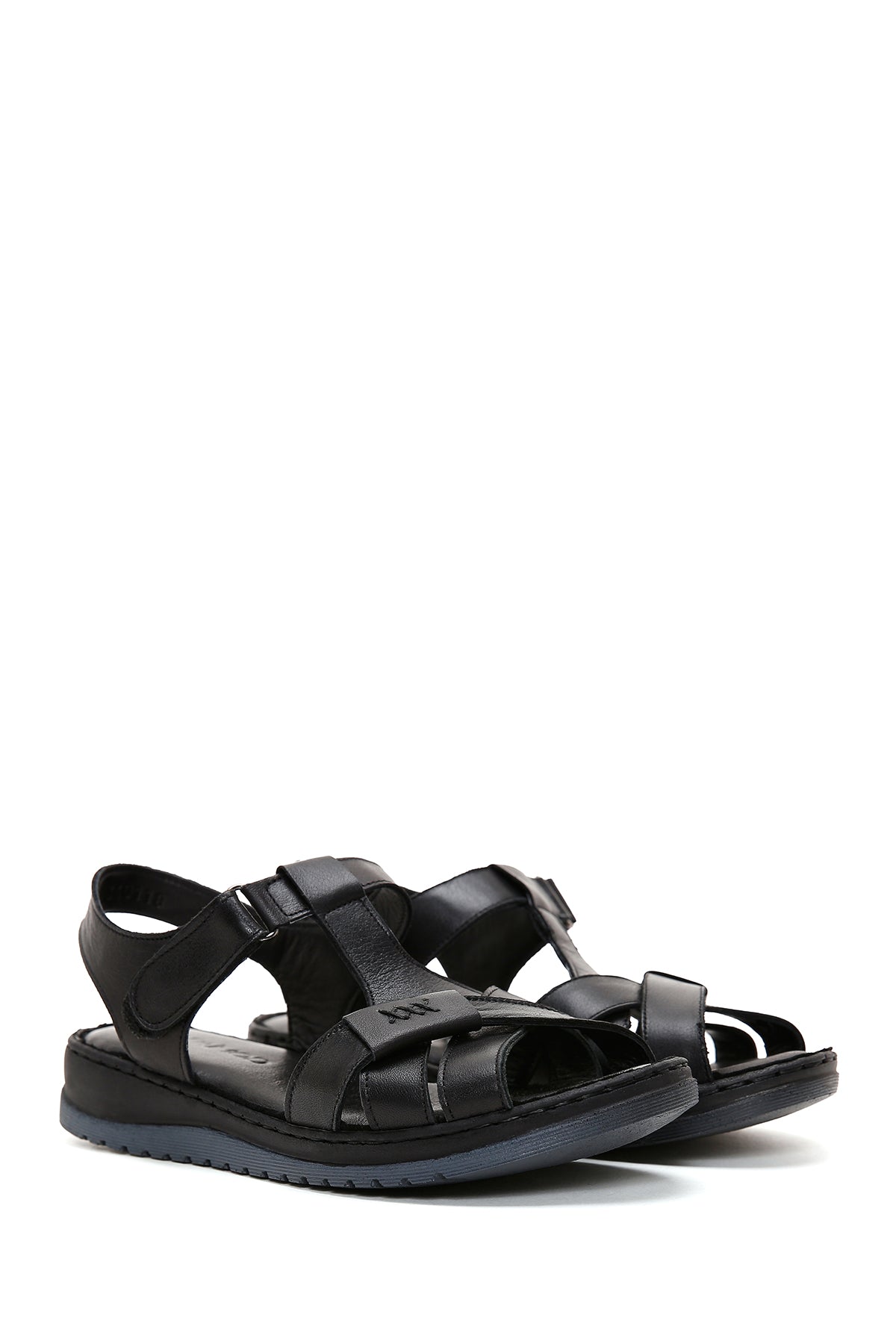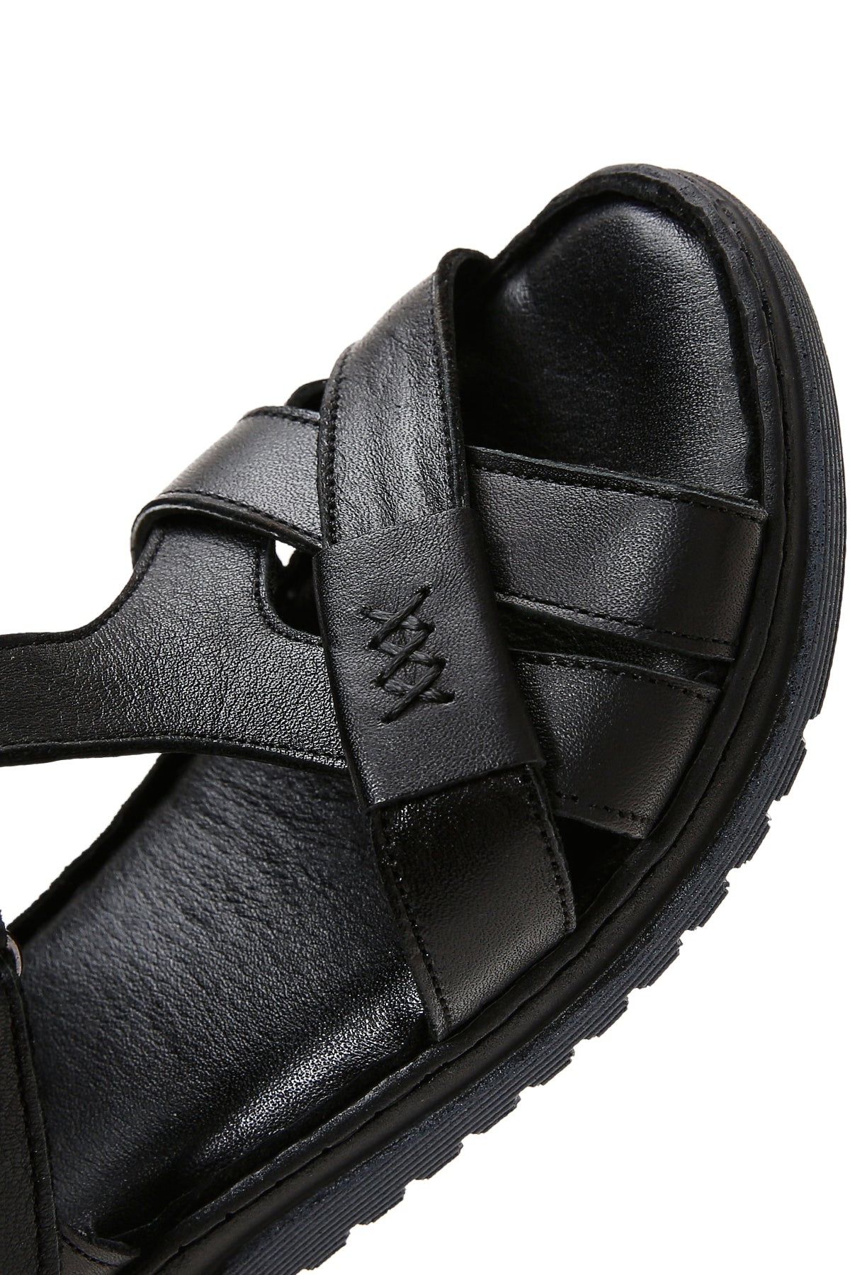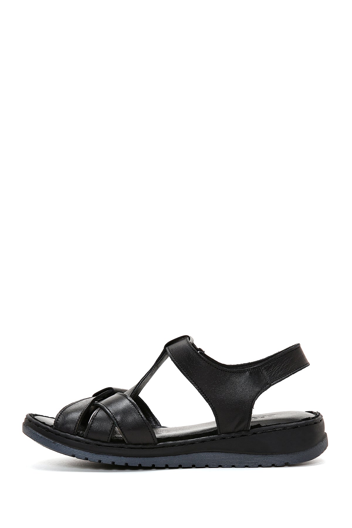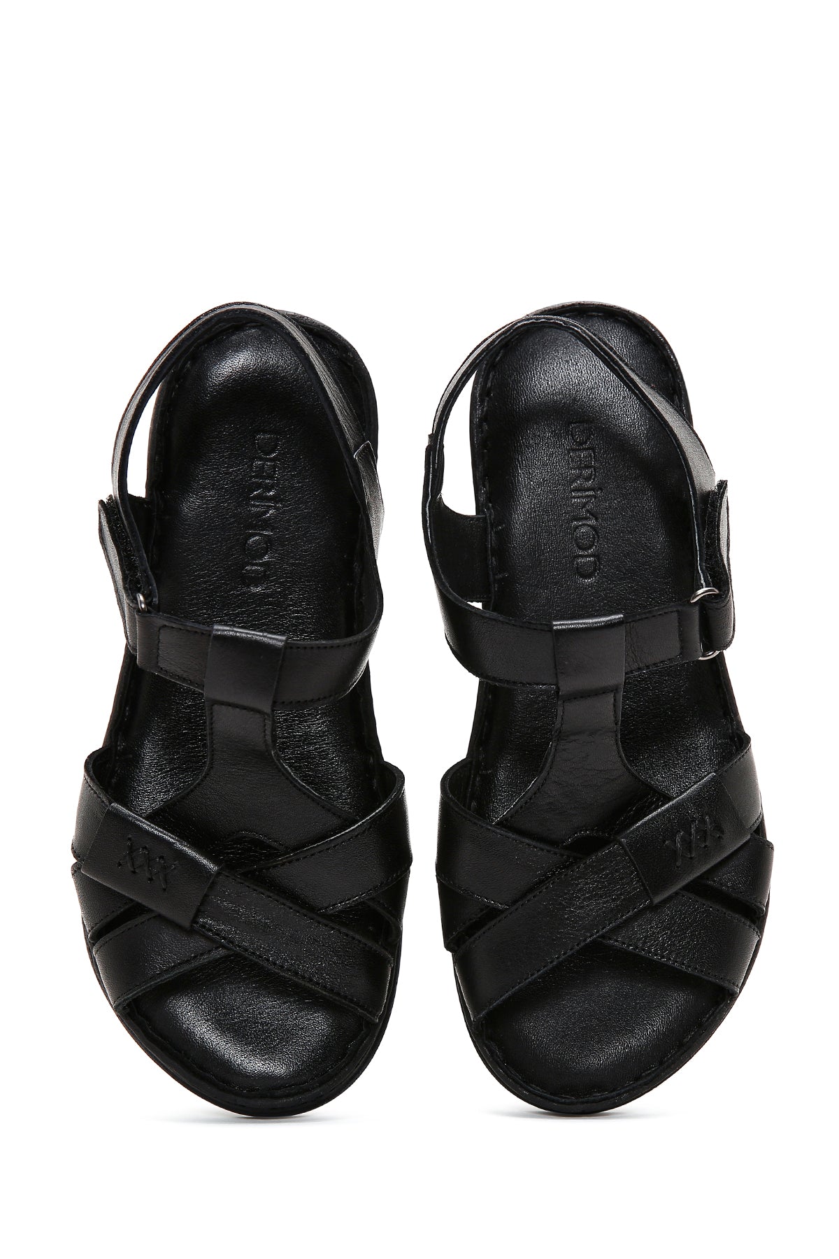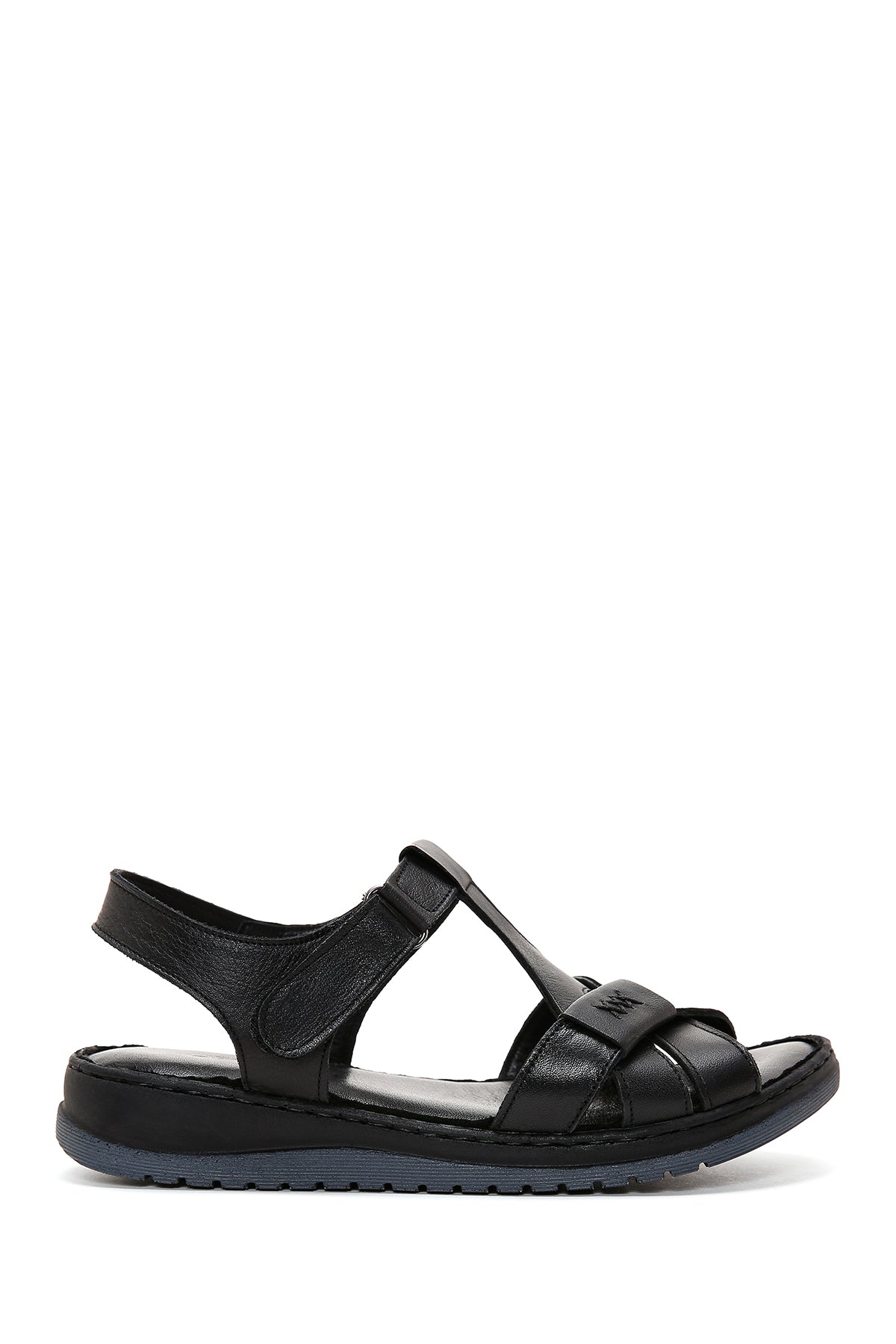 Kadın Siyah Bantlı Deri Comfort Sandalet