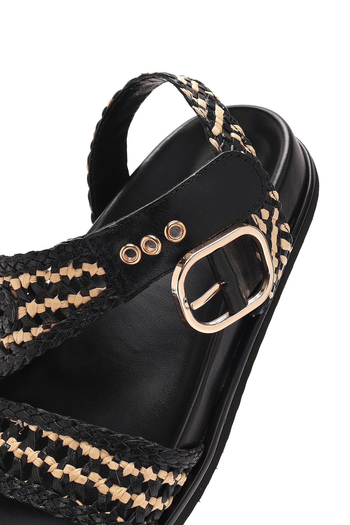 Derimod’un Zarifliği ve Şıklığı bir arada sunan Kadın Siyah Bantlı Hasır Deri Sandalet ile tarzınızı konuşturun. Ürünün kodu: 25SFD5507M7 11