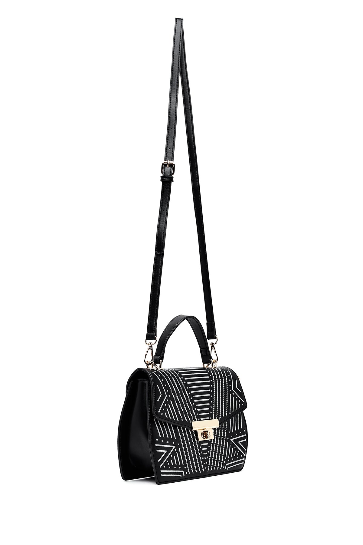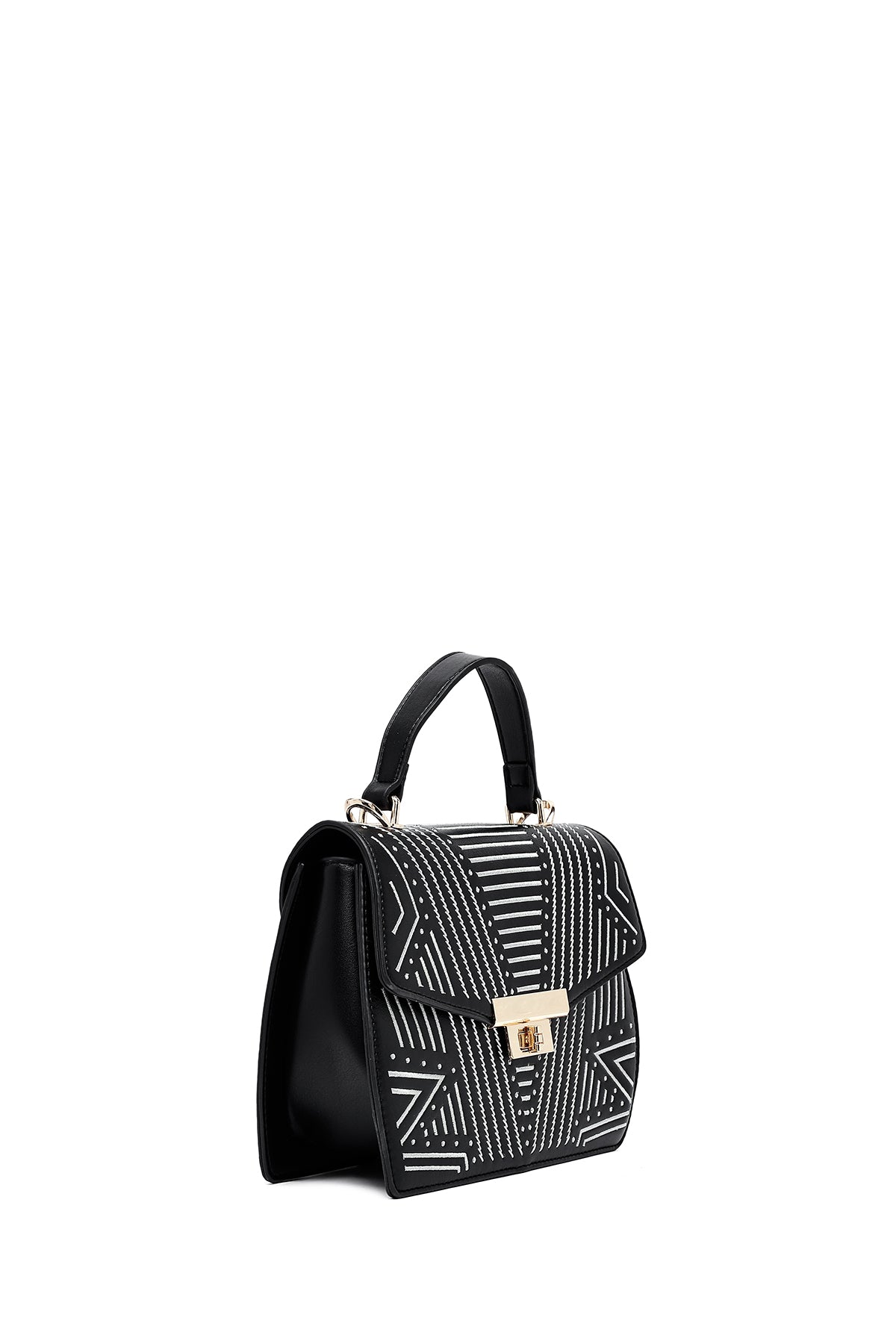 Kadın Siyah Baskılı Uzun Askılı Kol Çantası