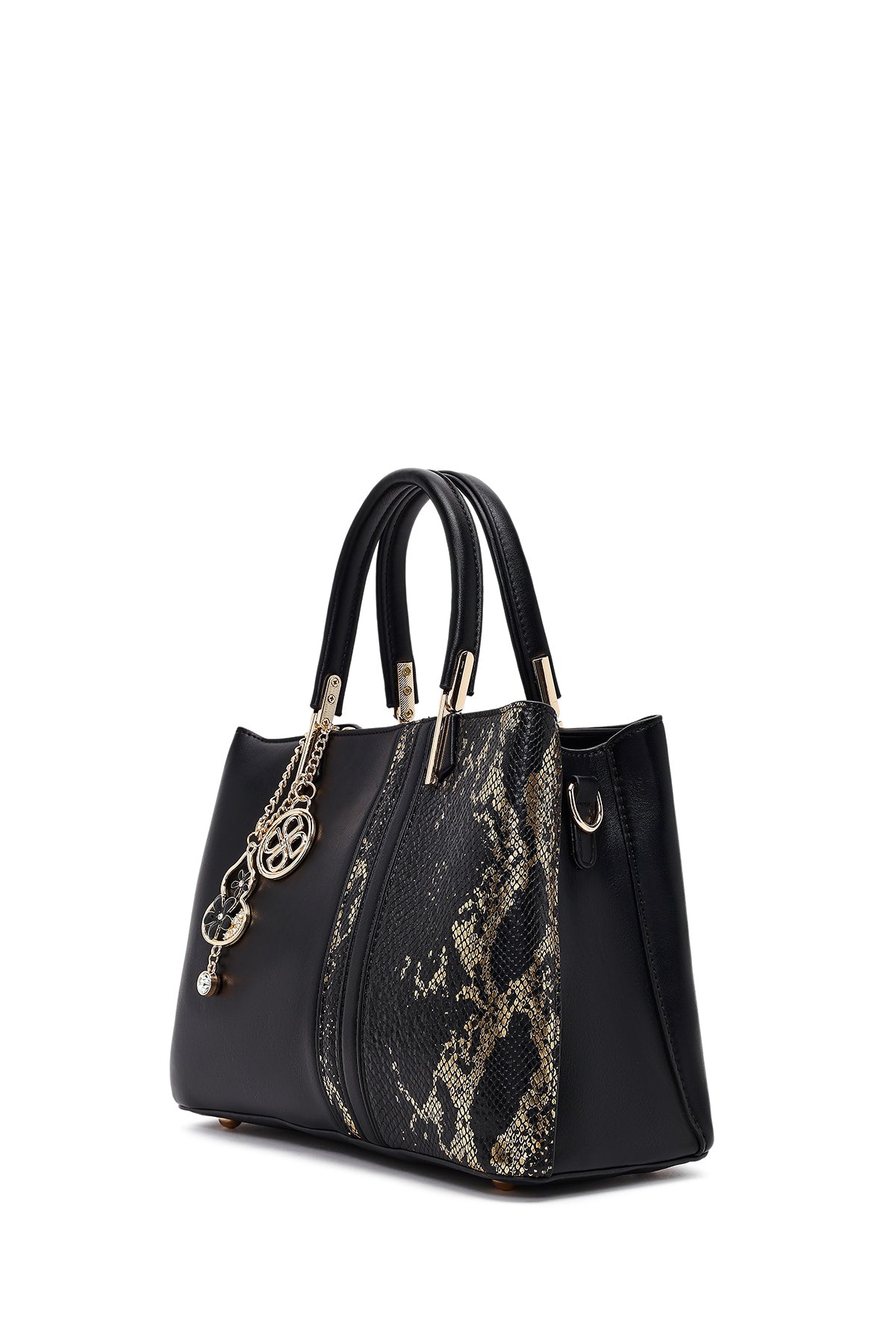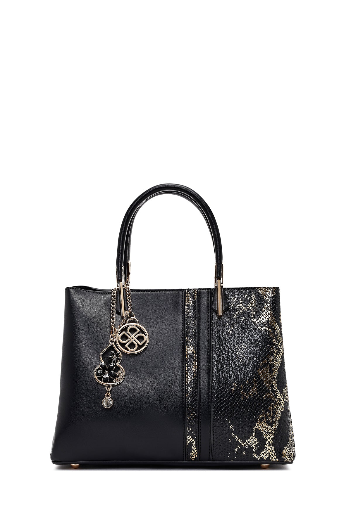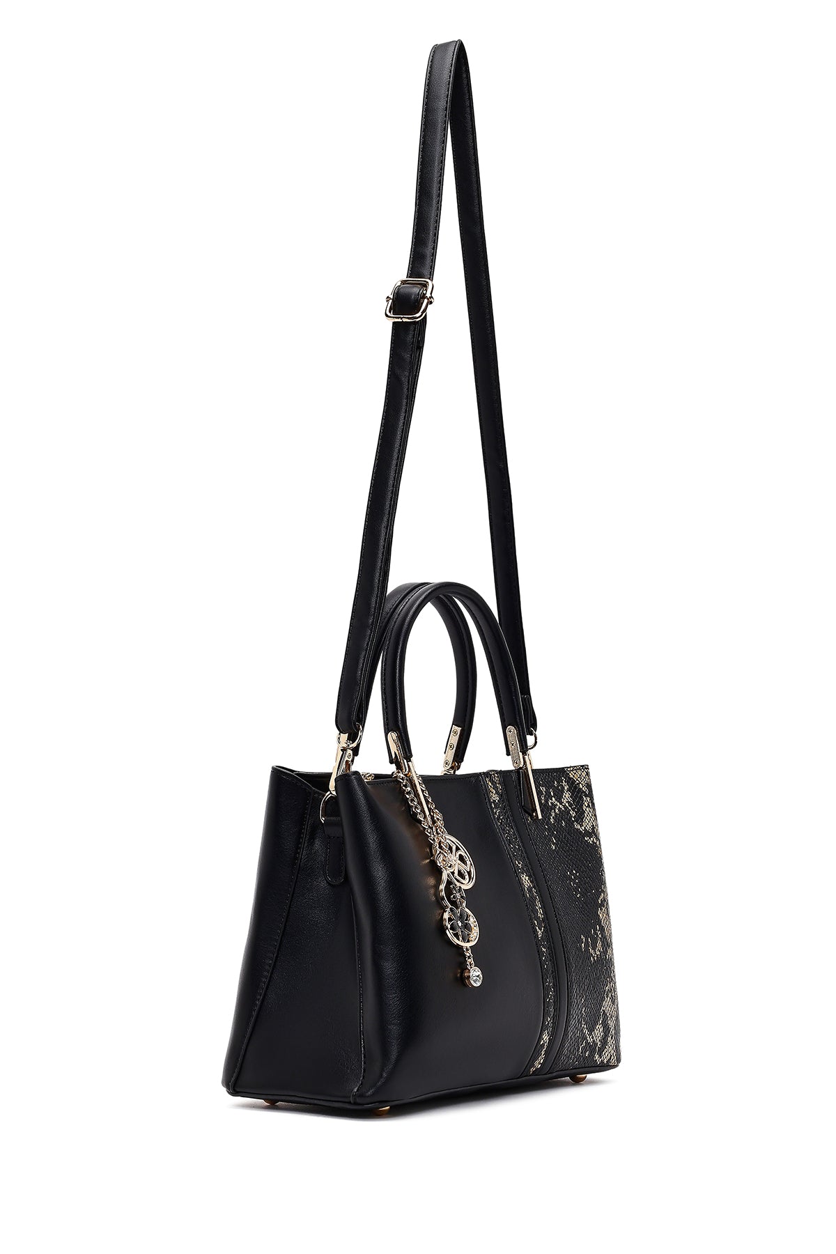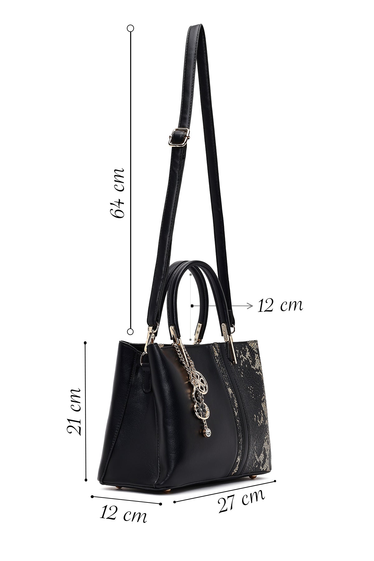 Kadın Siyah Baskılı Uzun Askılı Kol Çantası