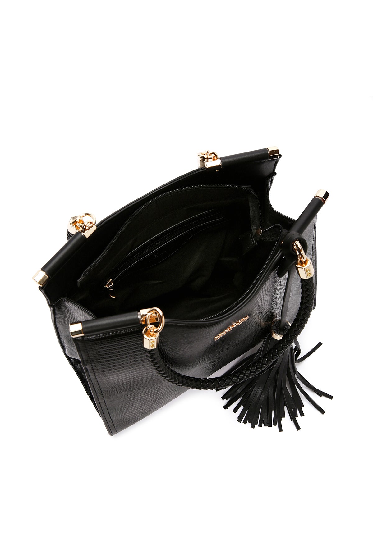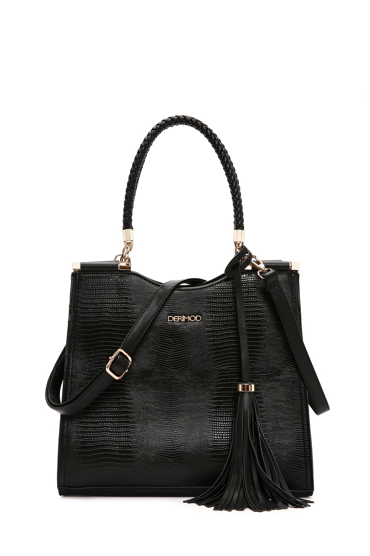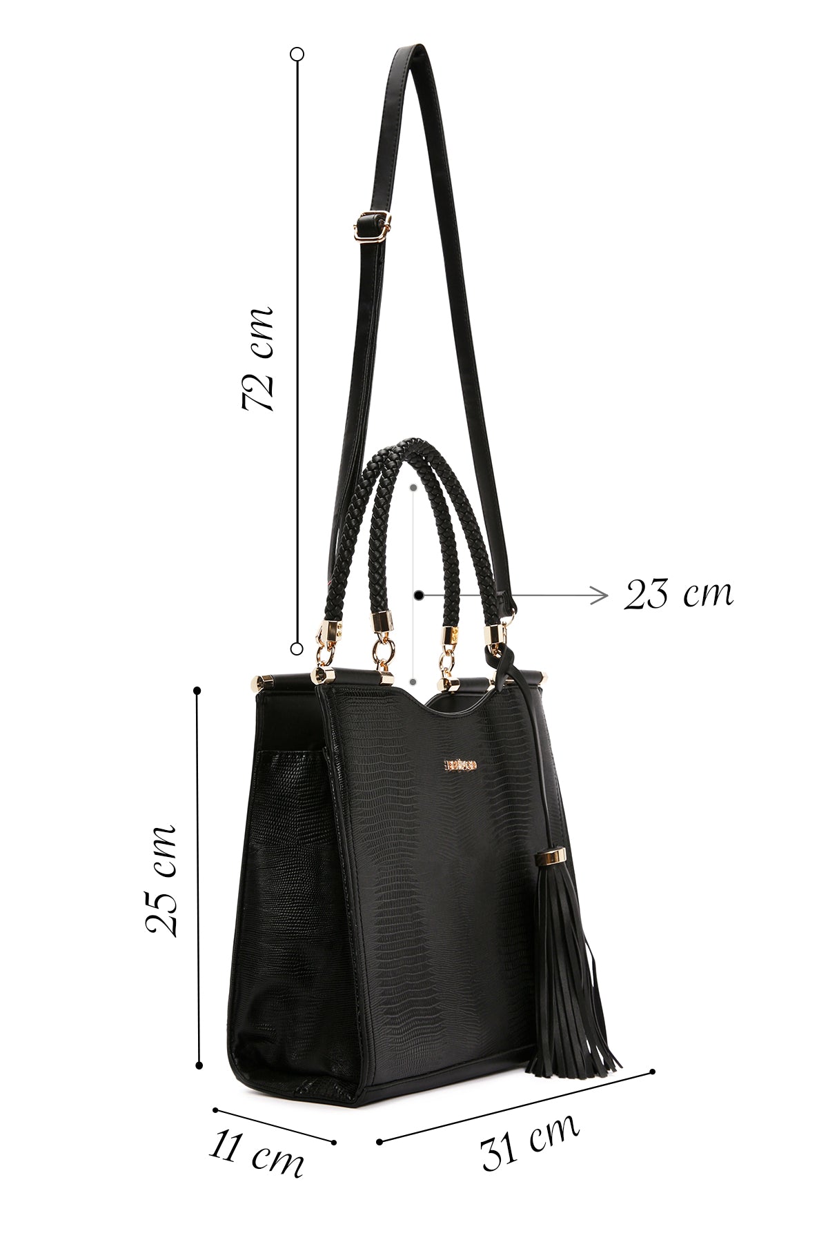 Kadın Siyah Baskılı Uzun Askılı Omuz Çantası