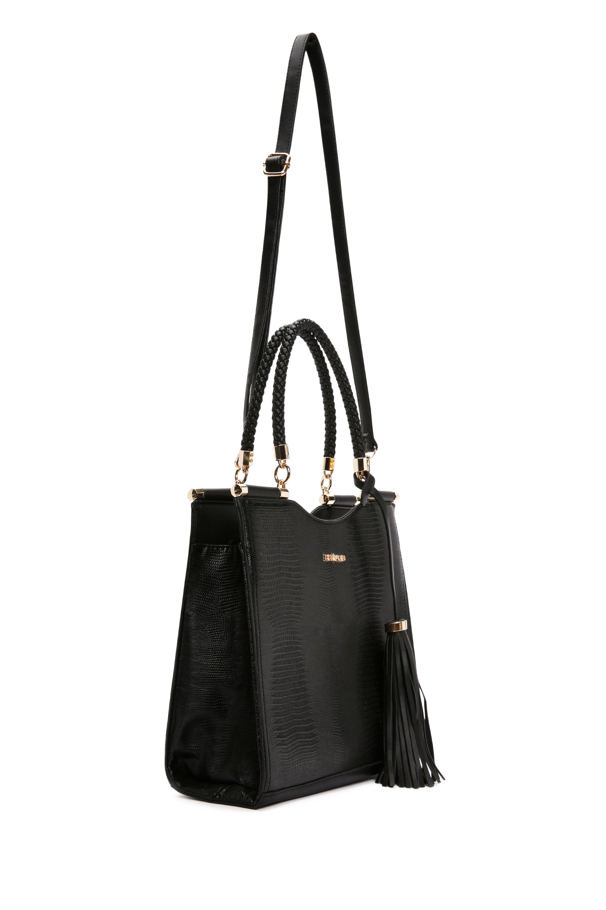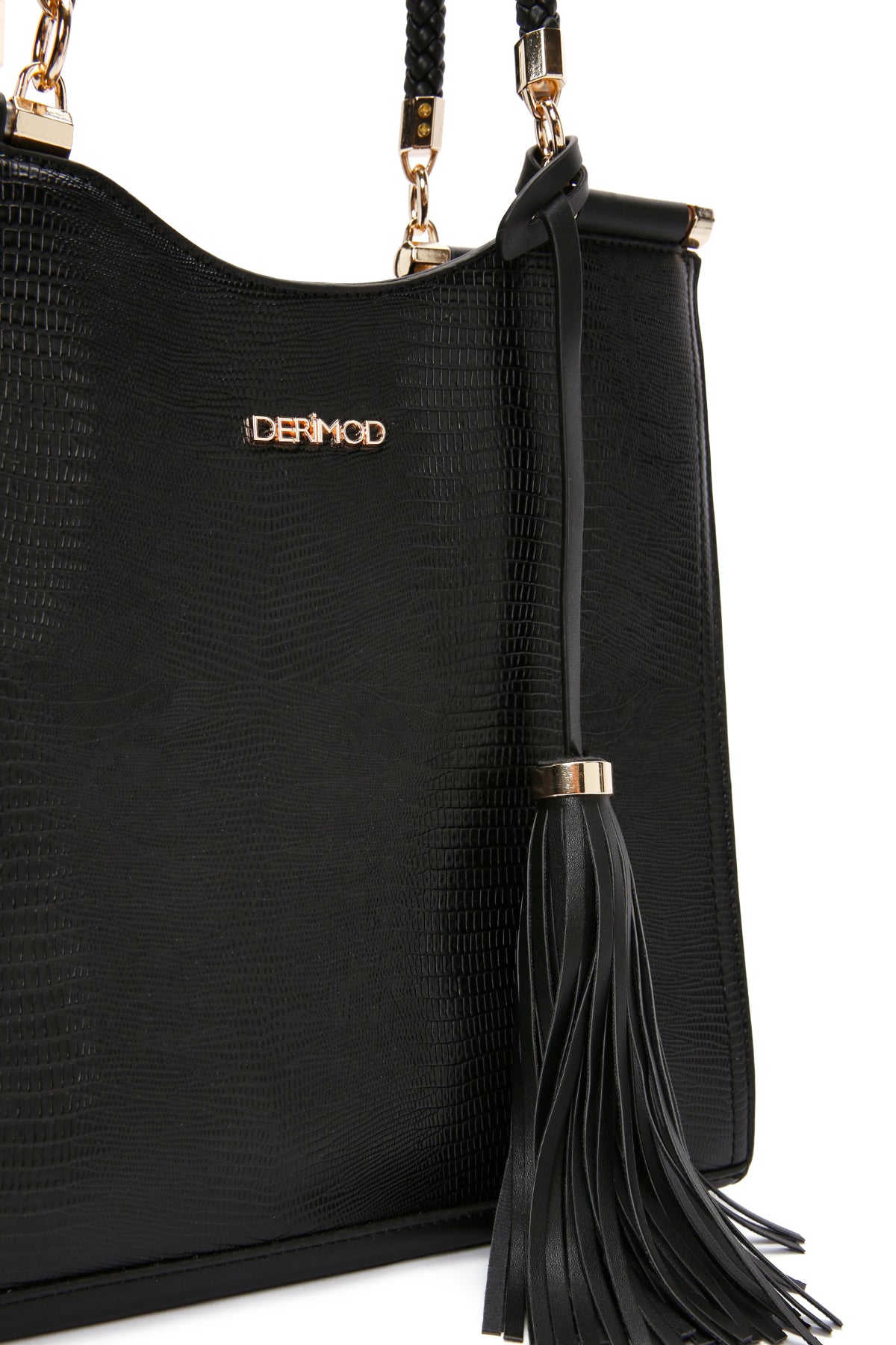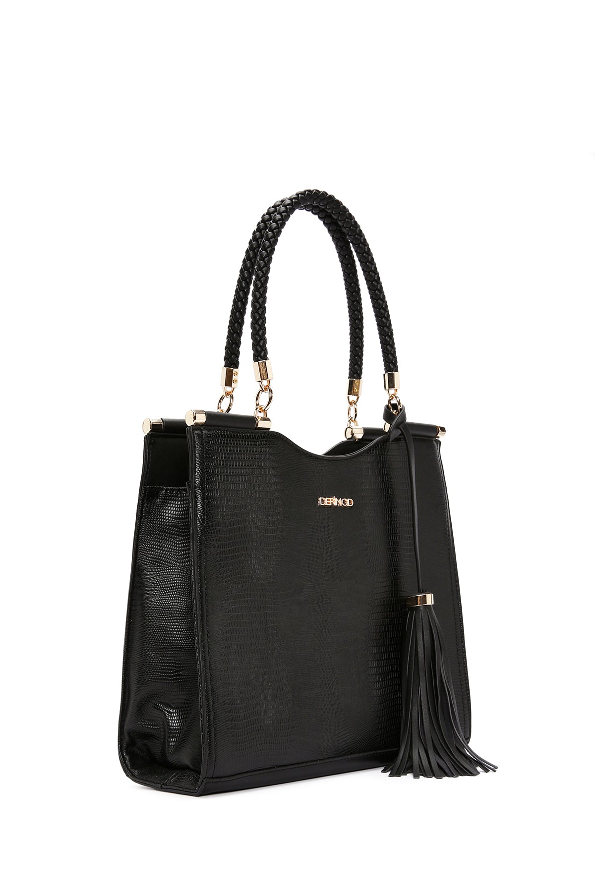 Kadın Siyah Baskılı Uzun Askılı Omuz Çantası