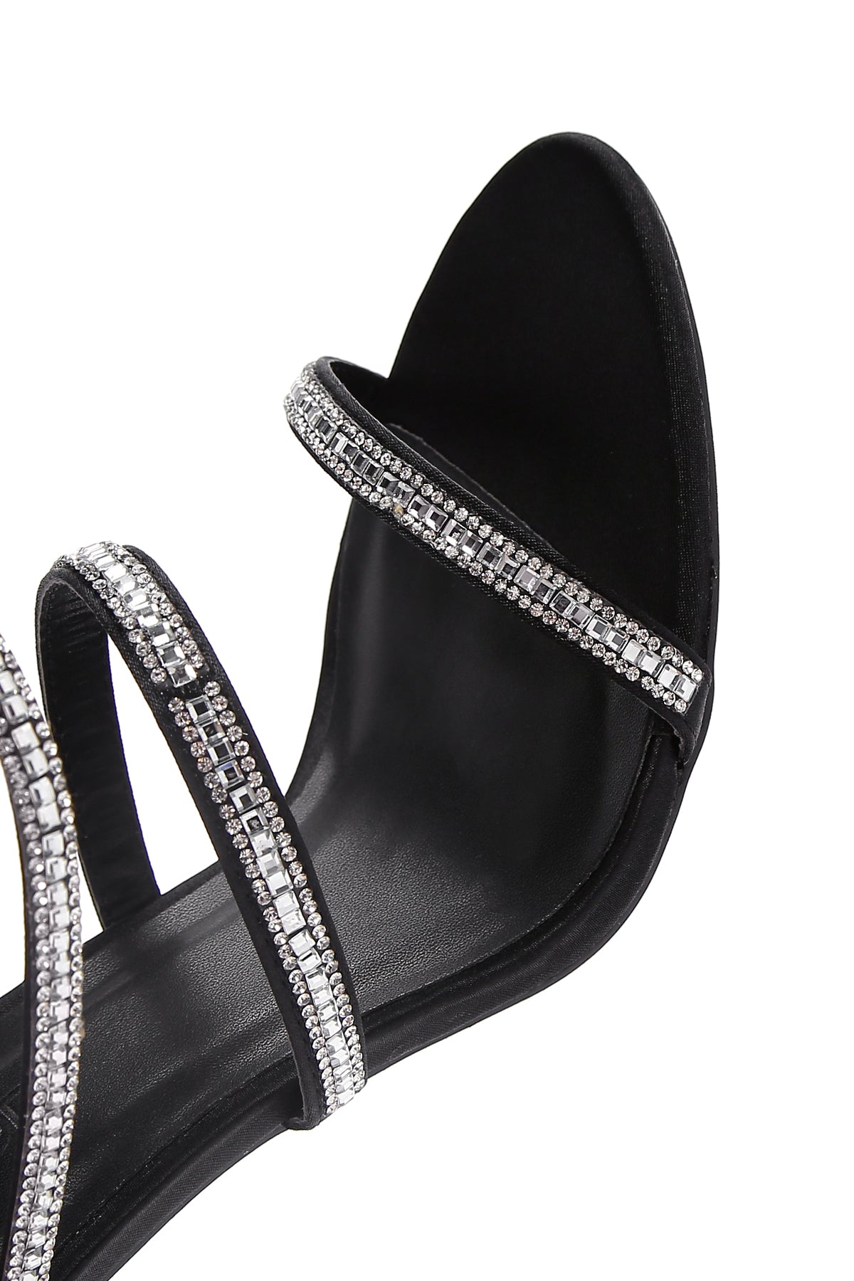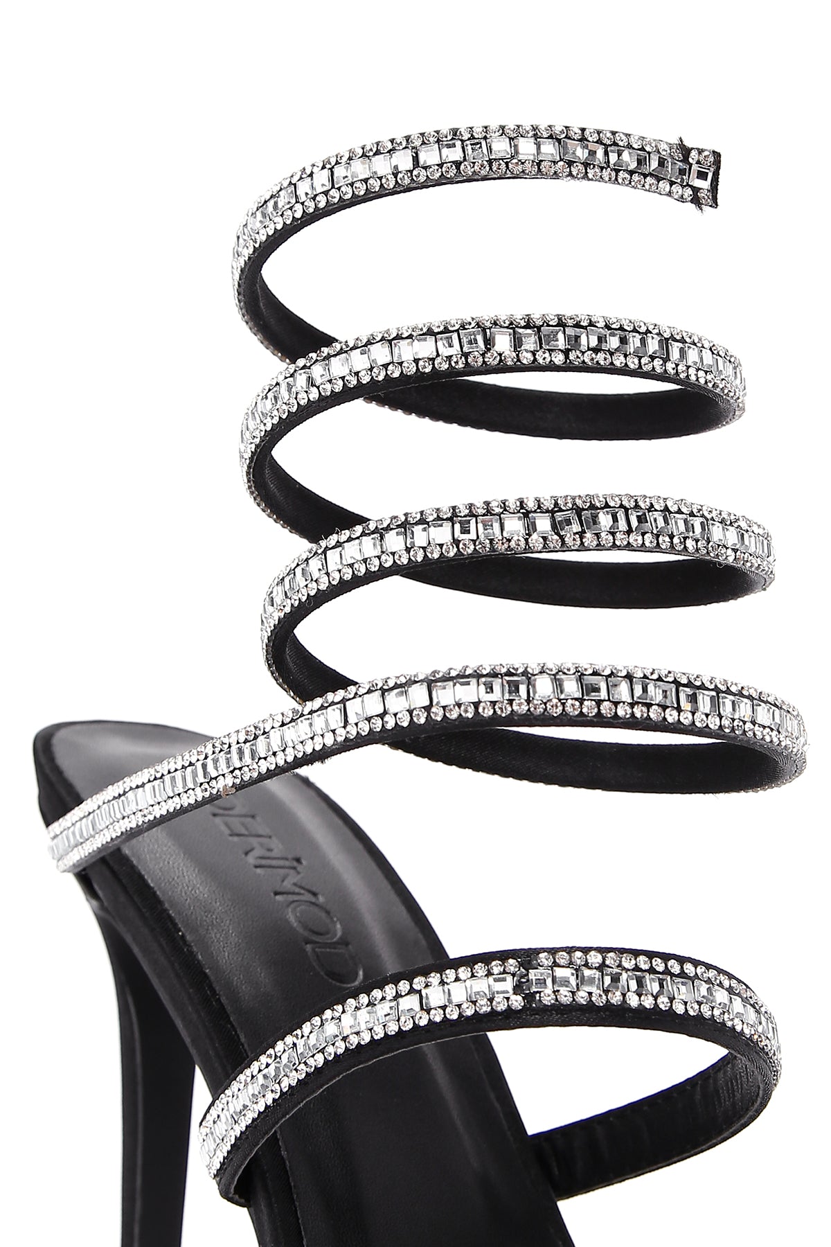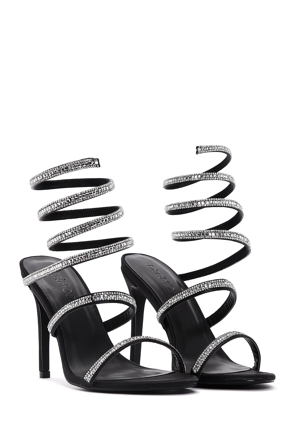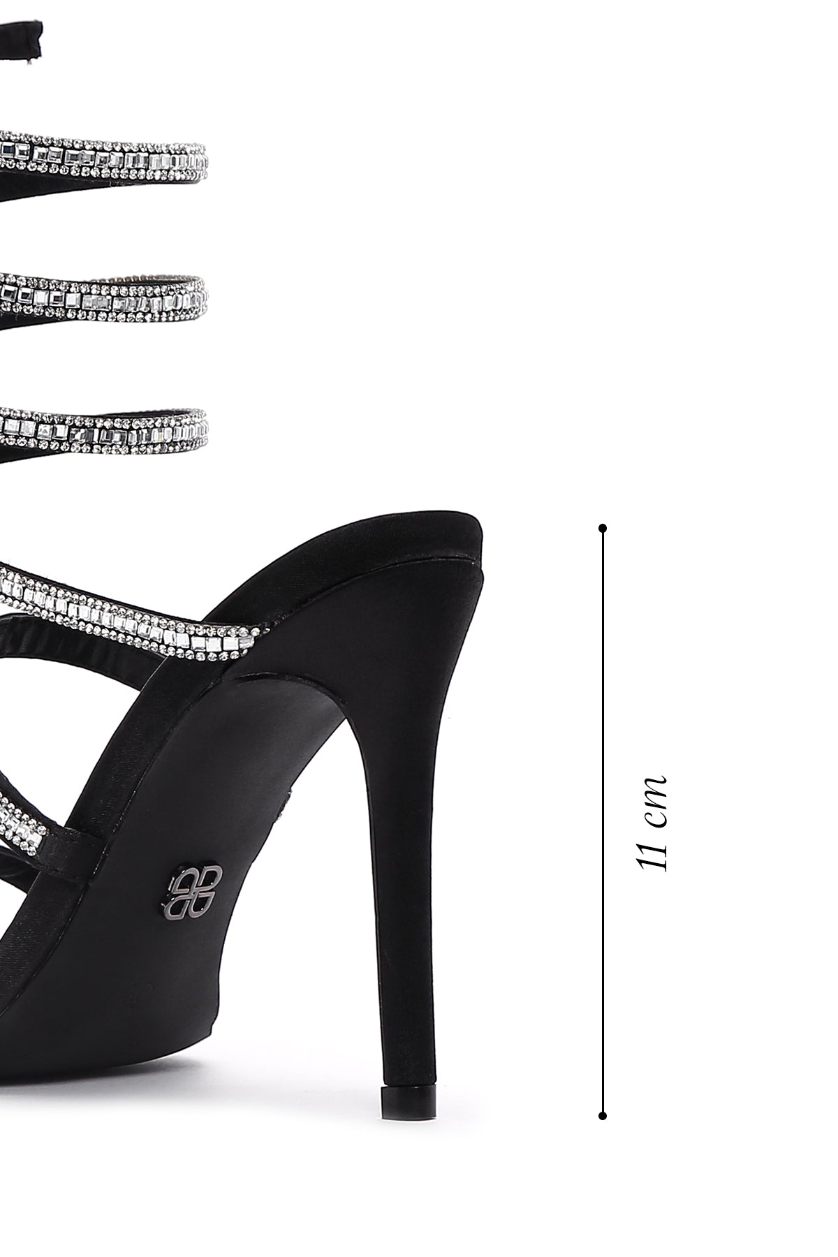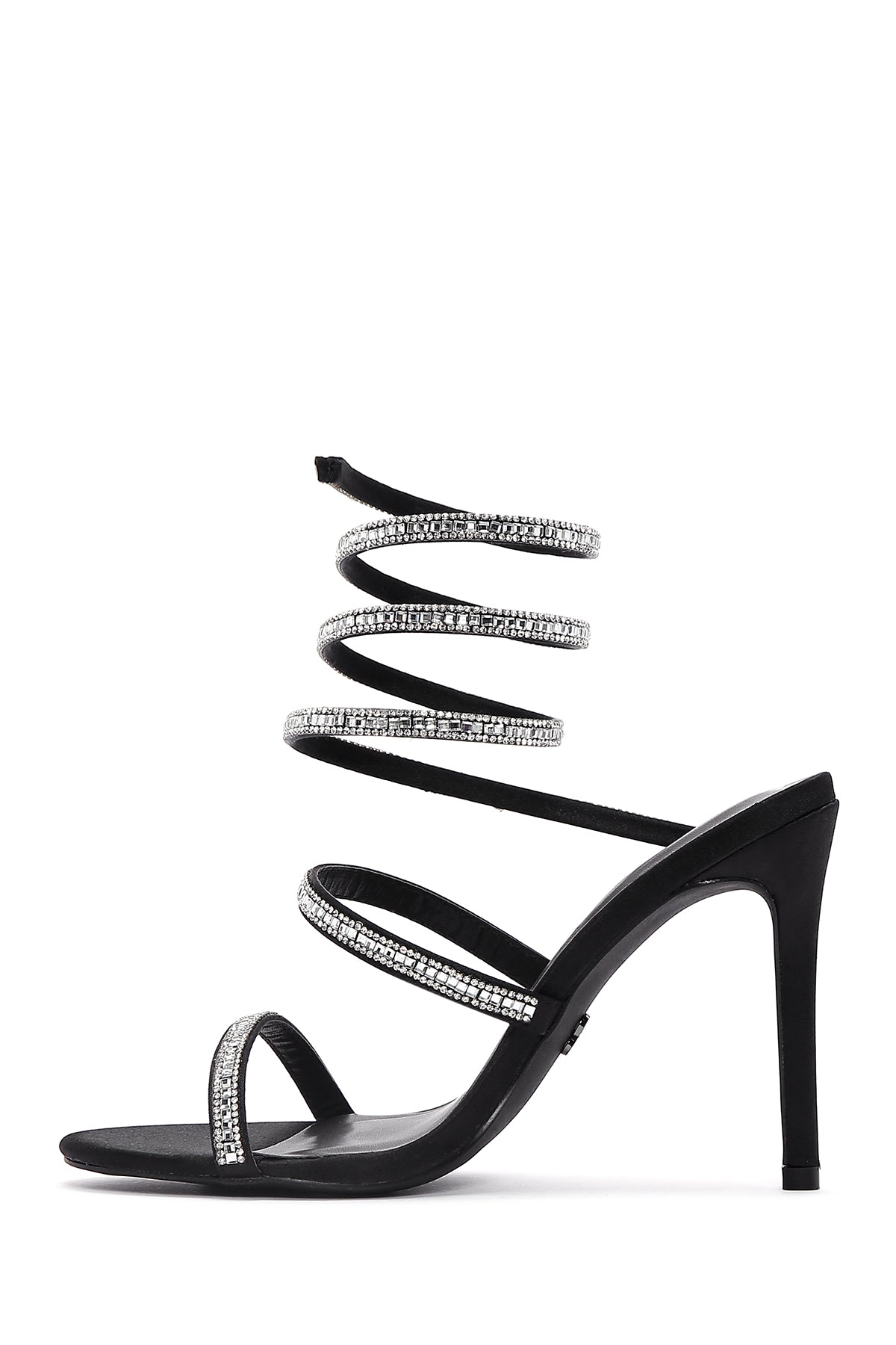 Kadın Siyah Bilekten Bağlamalı İnce Topuklu Taşlı Sandalet