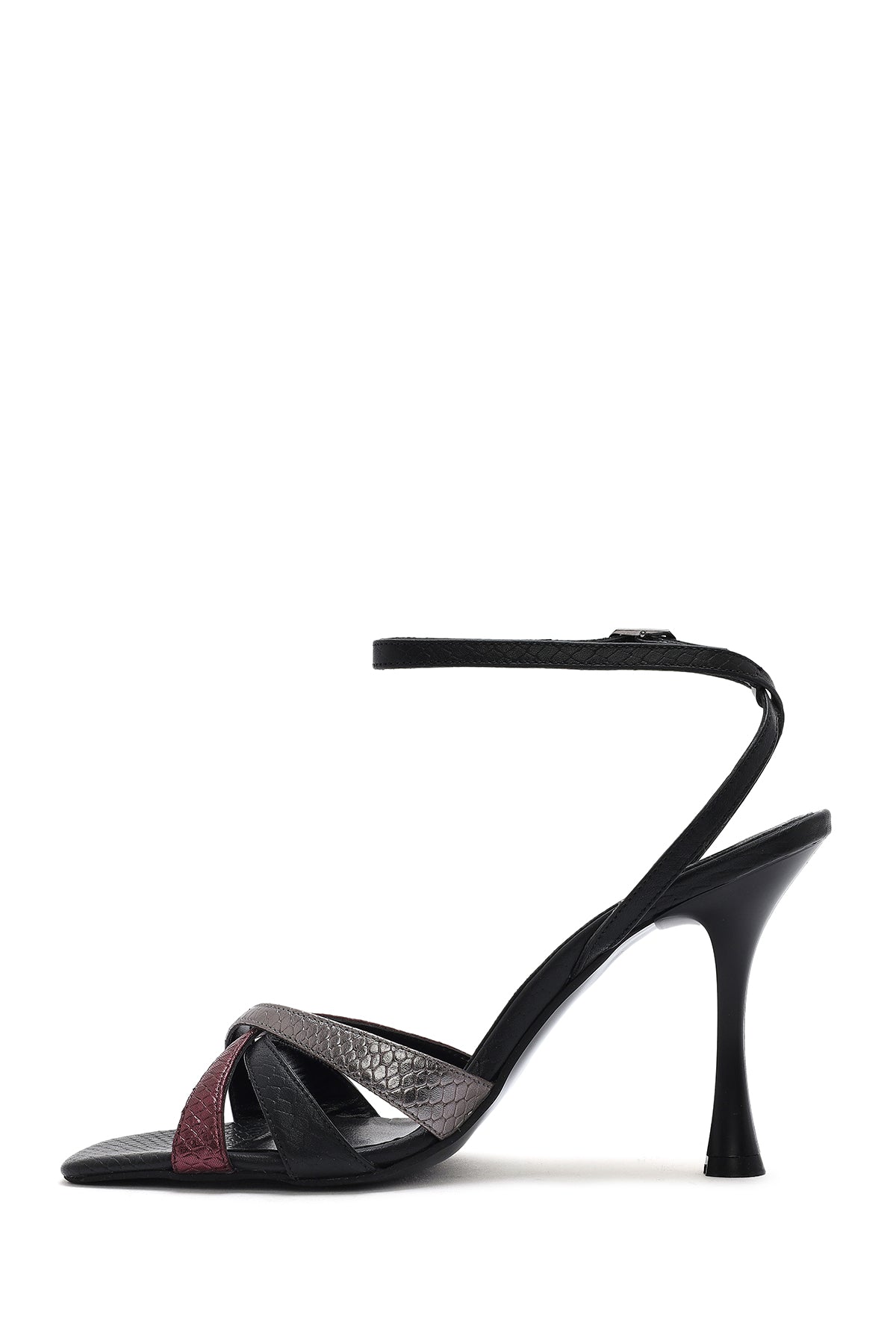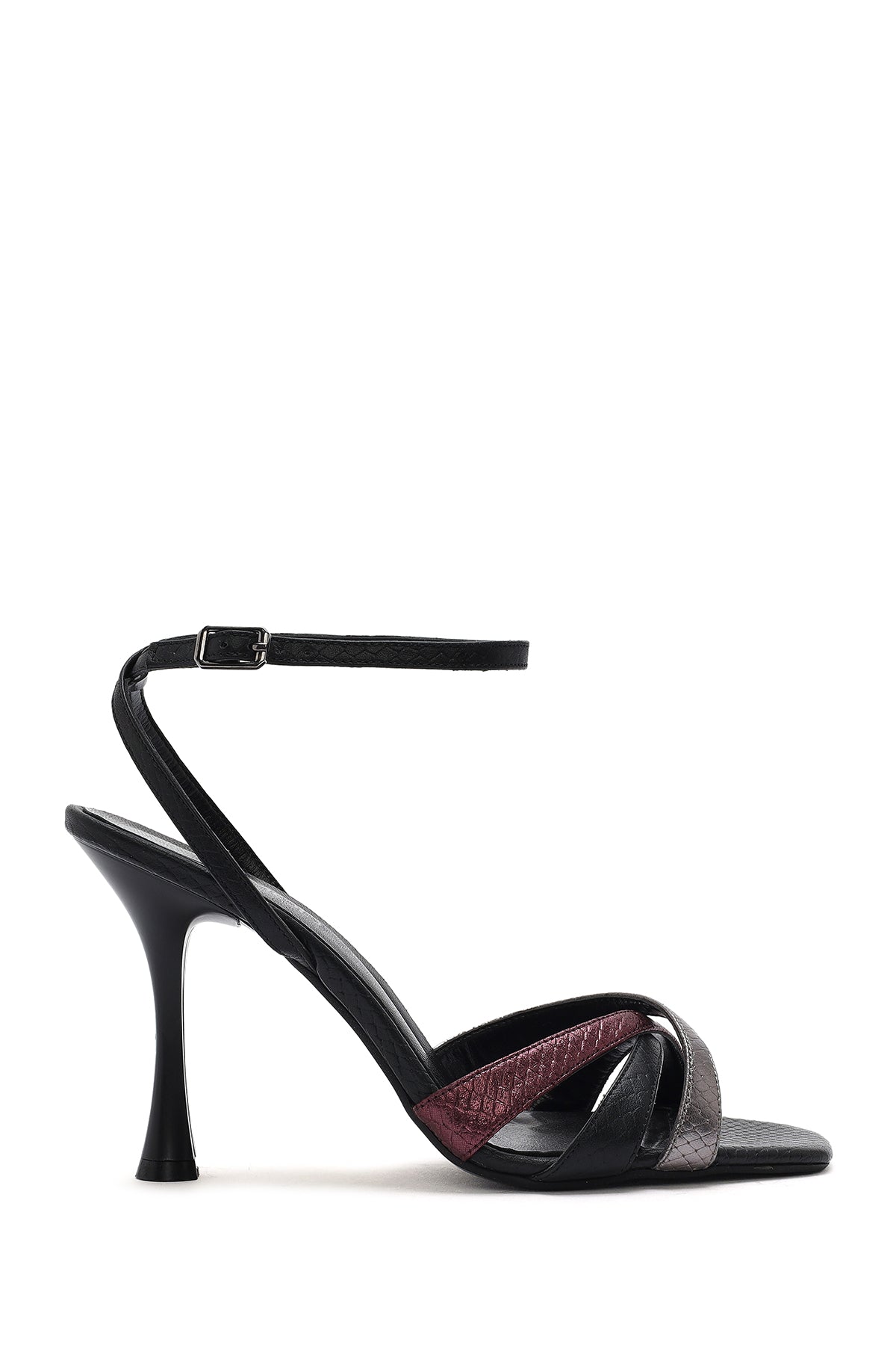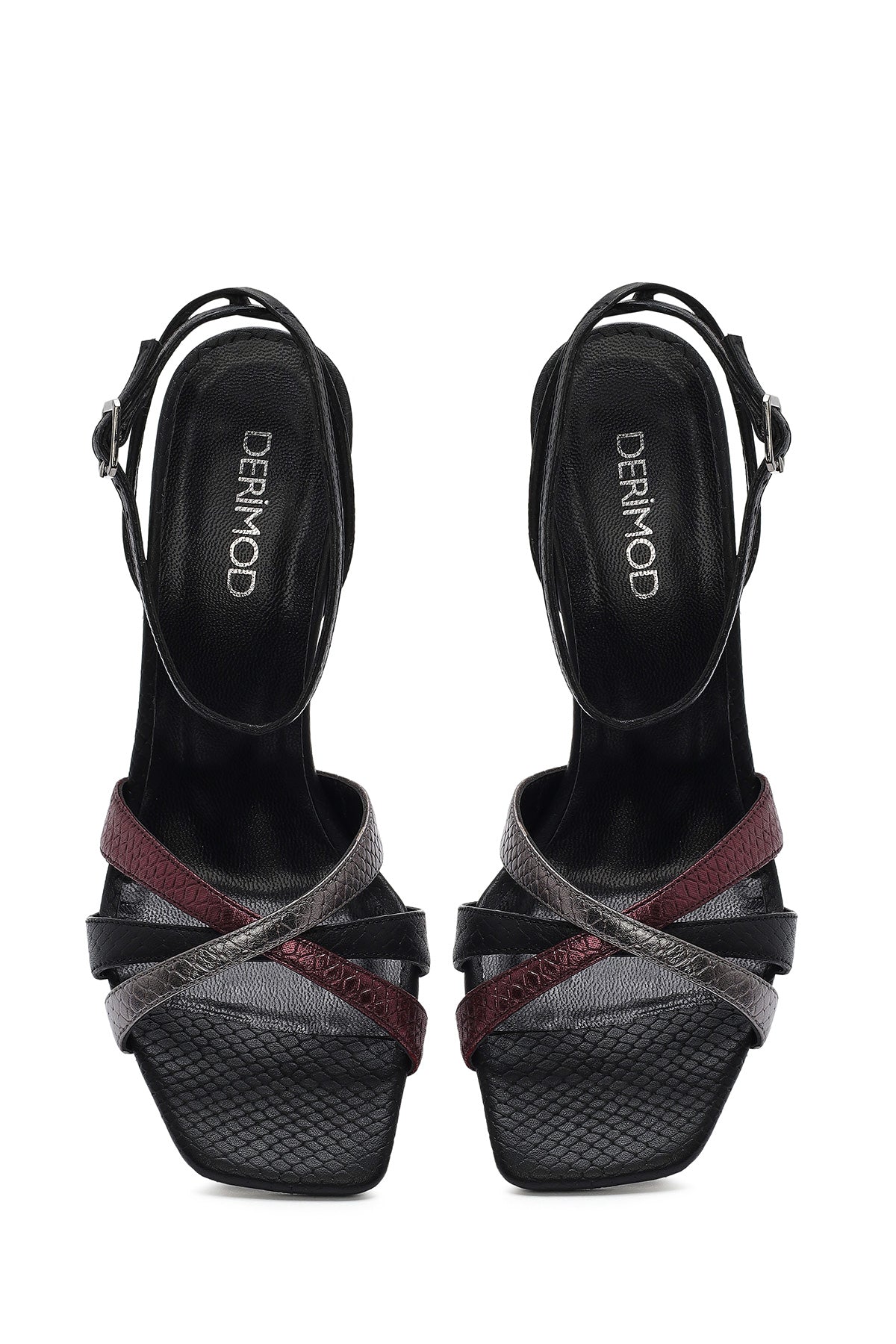 Derimod’un Zarifliği ve Şıklığı bir arada sunan Kadın Siyah Bilekten Bağlamalı İnce Yüksek Topuklu Desenli Deri Sandalet ile tarzınızı konuşturun. Ürünün kodu: 25SFD1613MY SAM