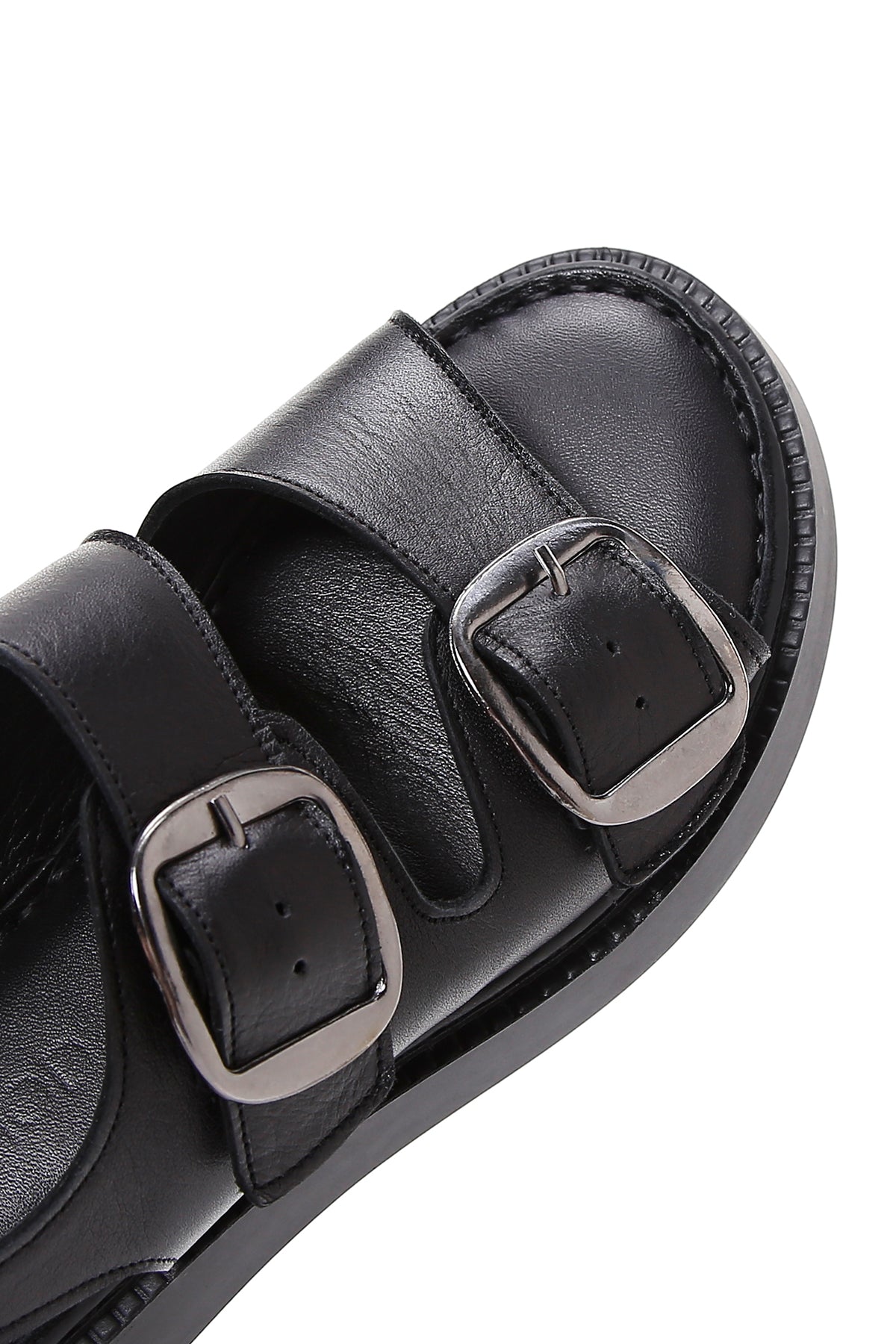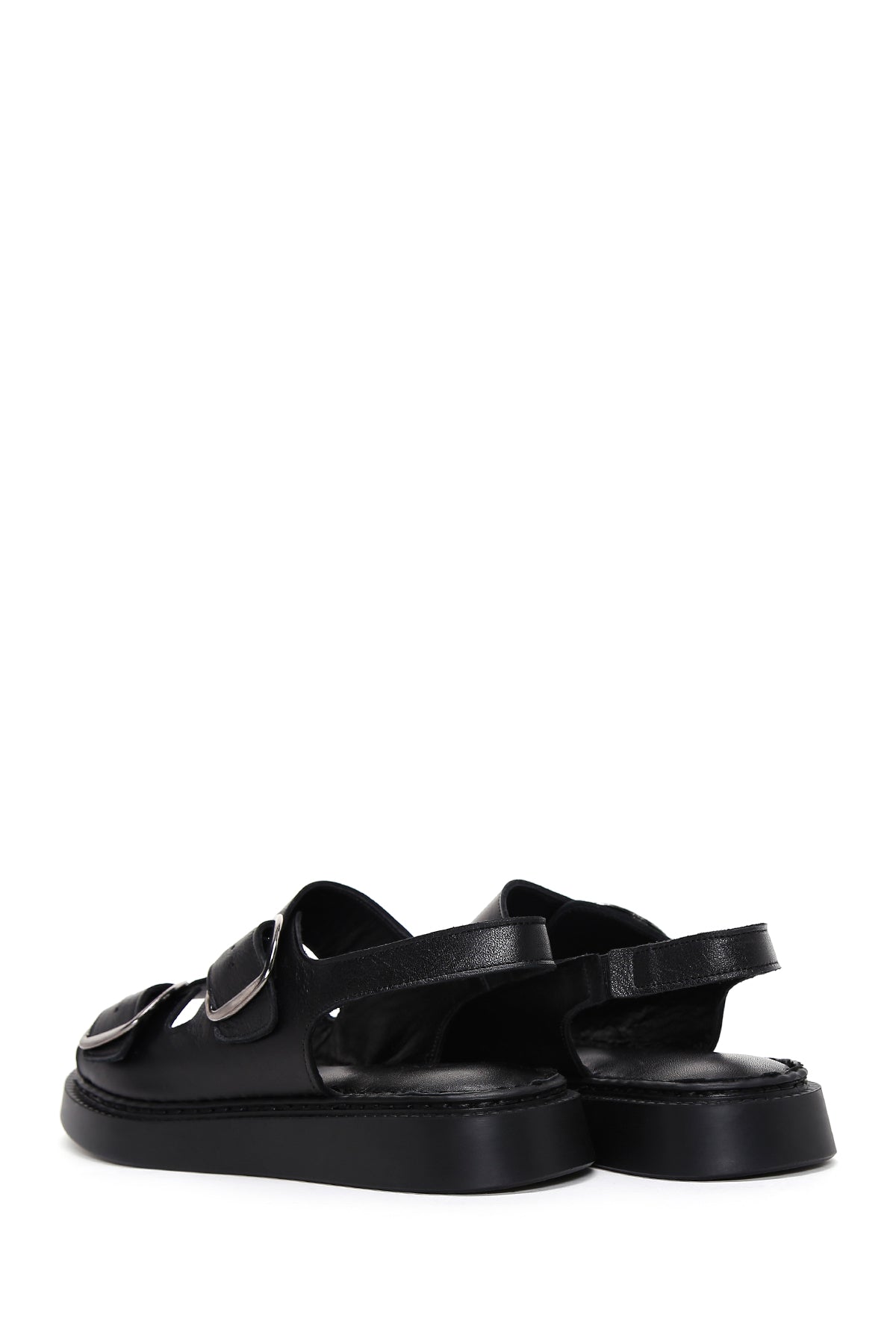 Kadın Siyah Bilekten Bantlı Çift Tokalı Deri Comfort Sandalet