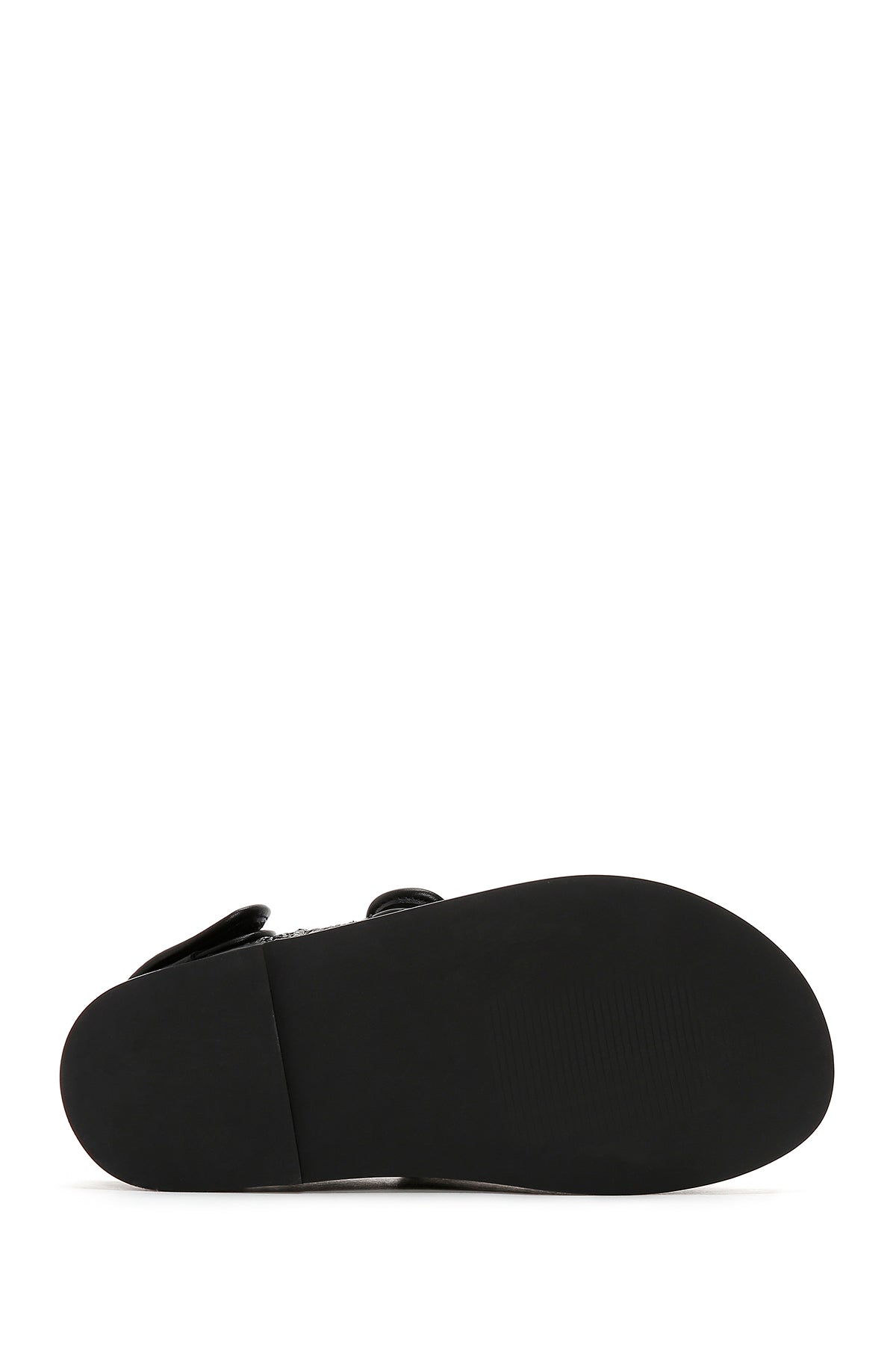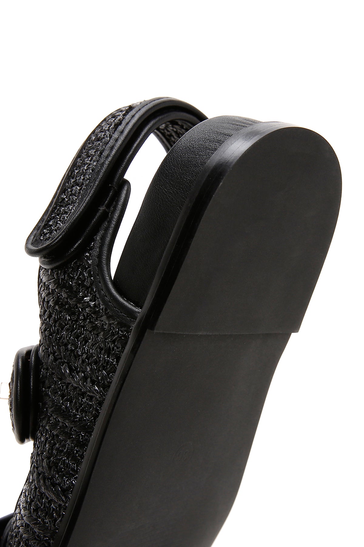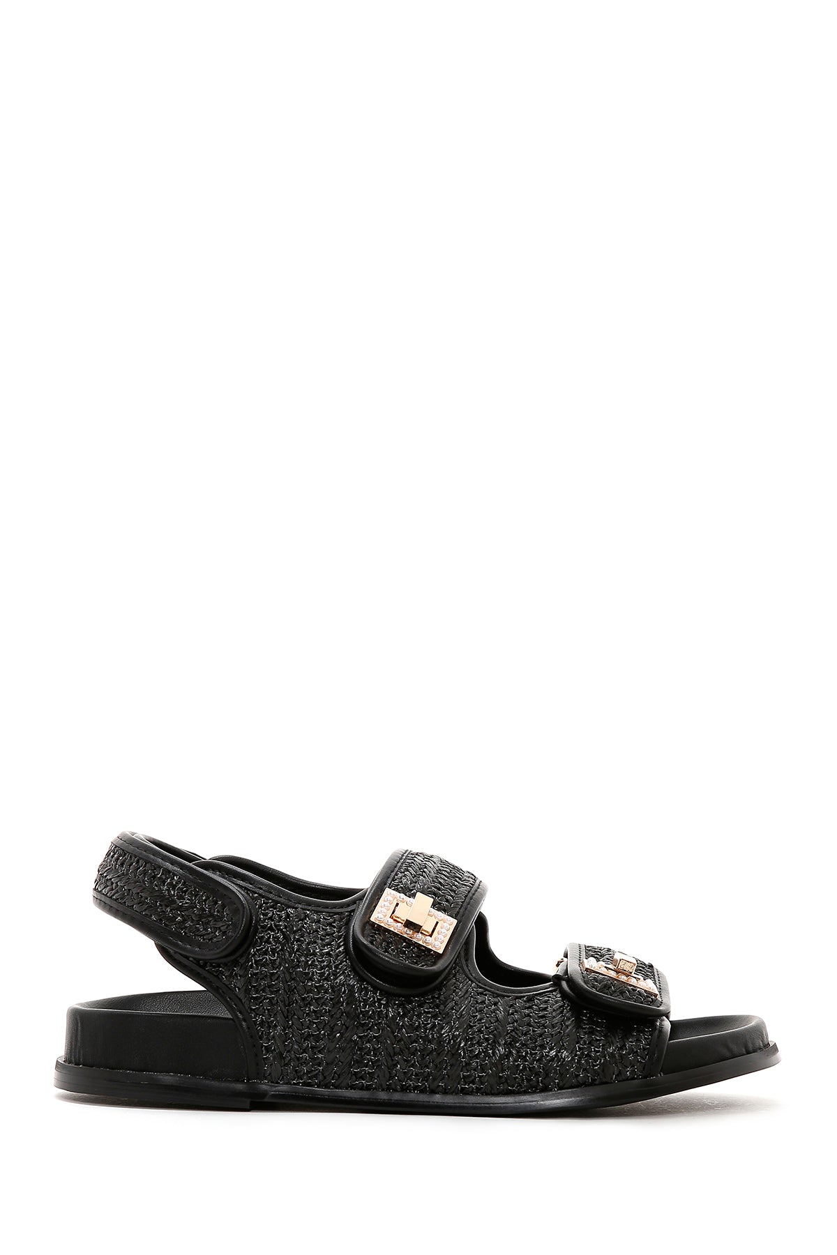 Kadın Siyah Bilekten Bantlı Çift Tokalı Hasır Sandalet