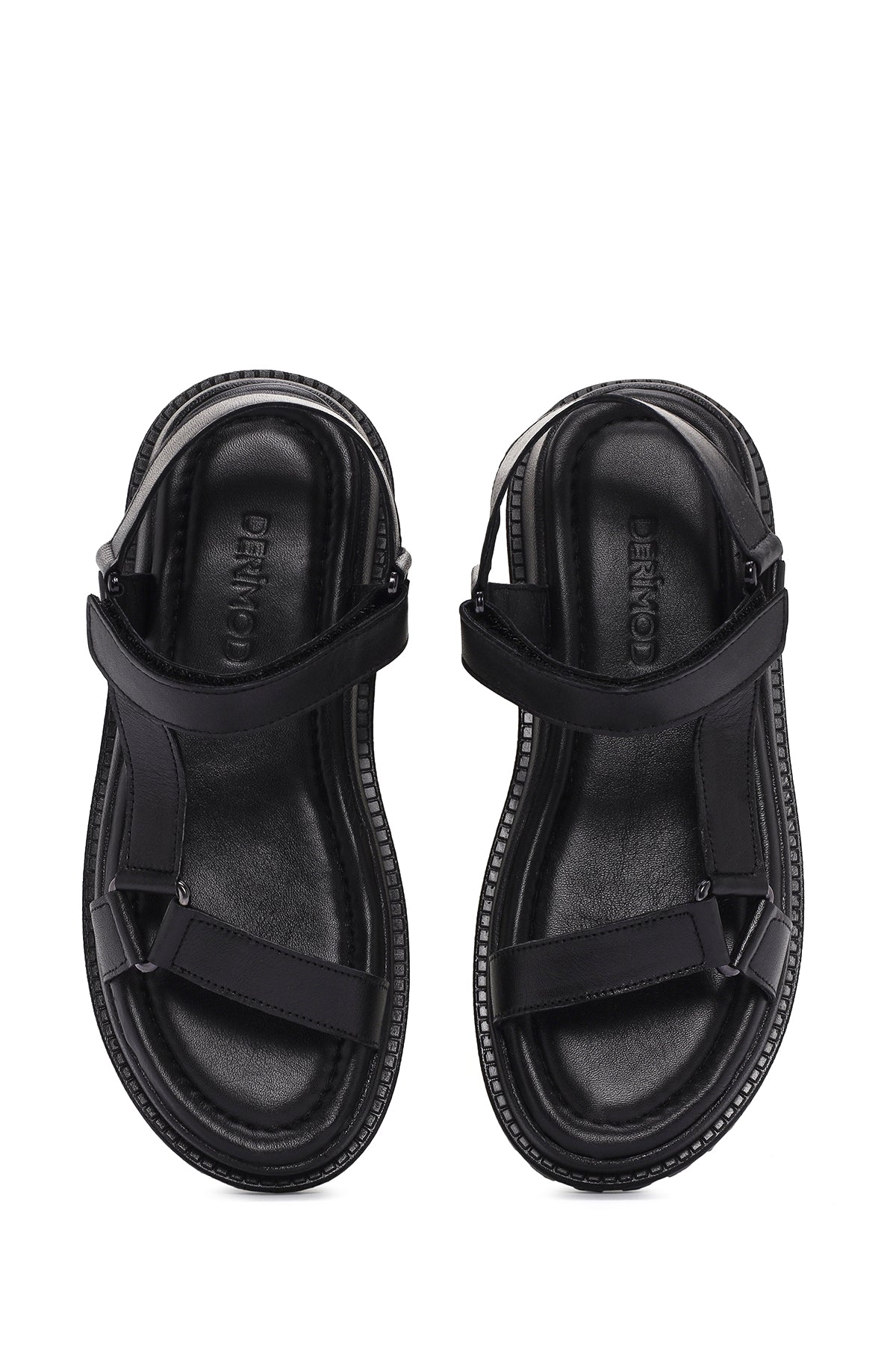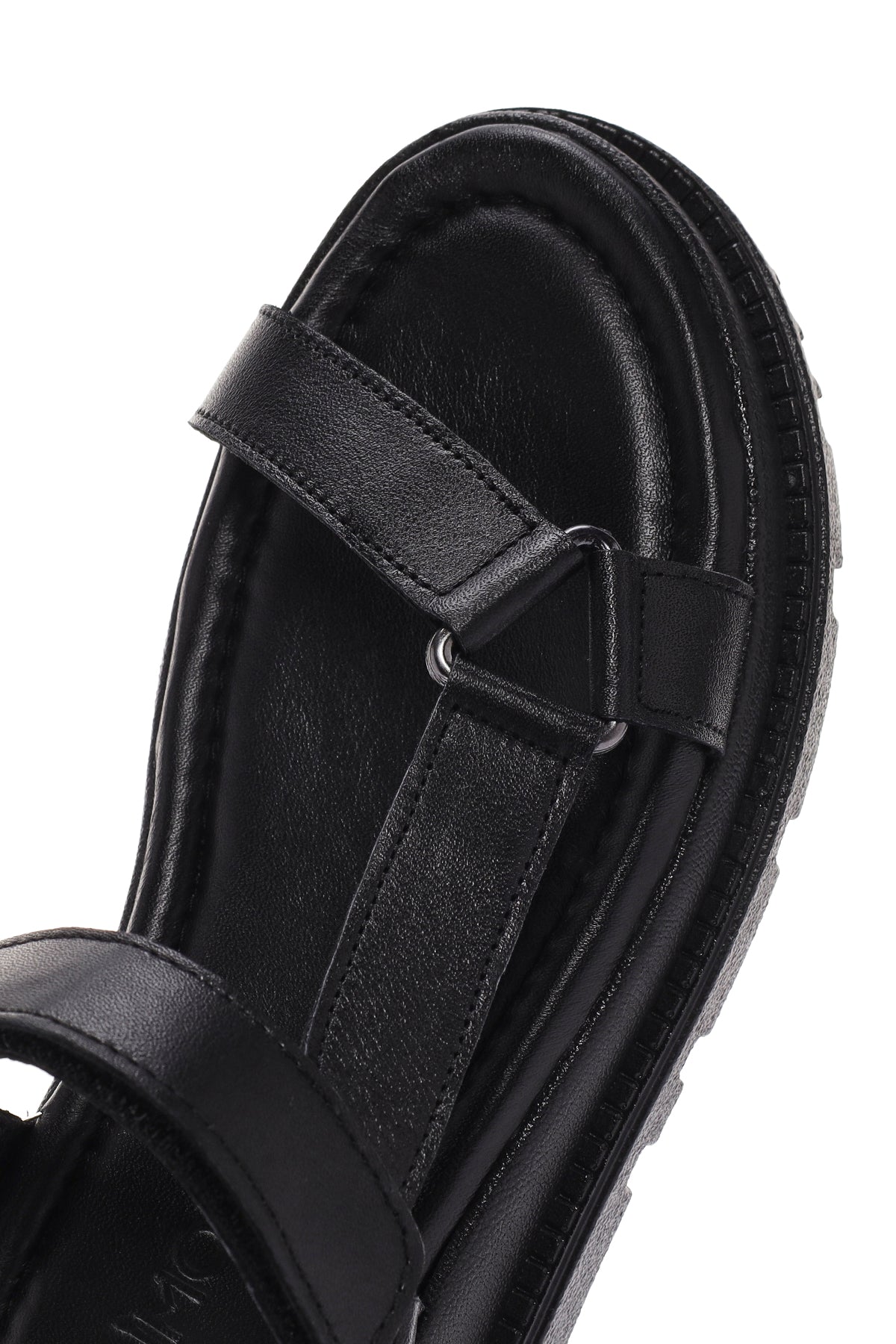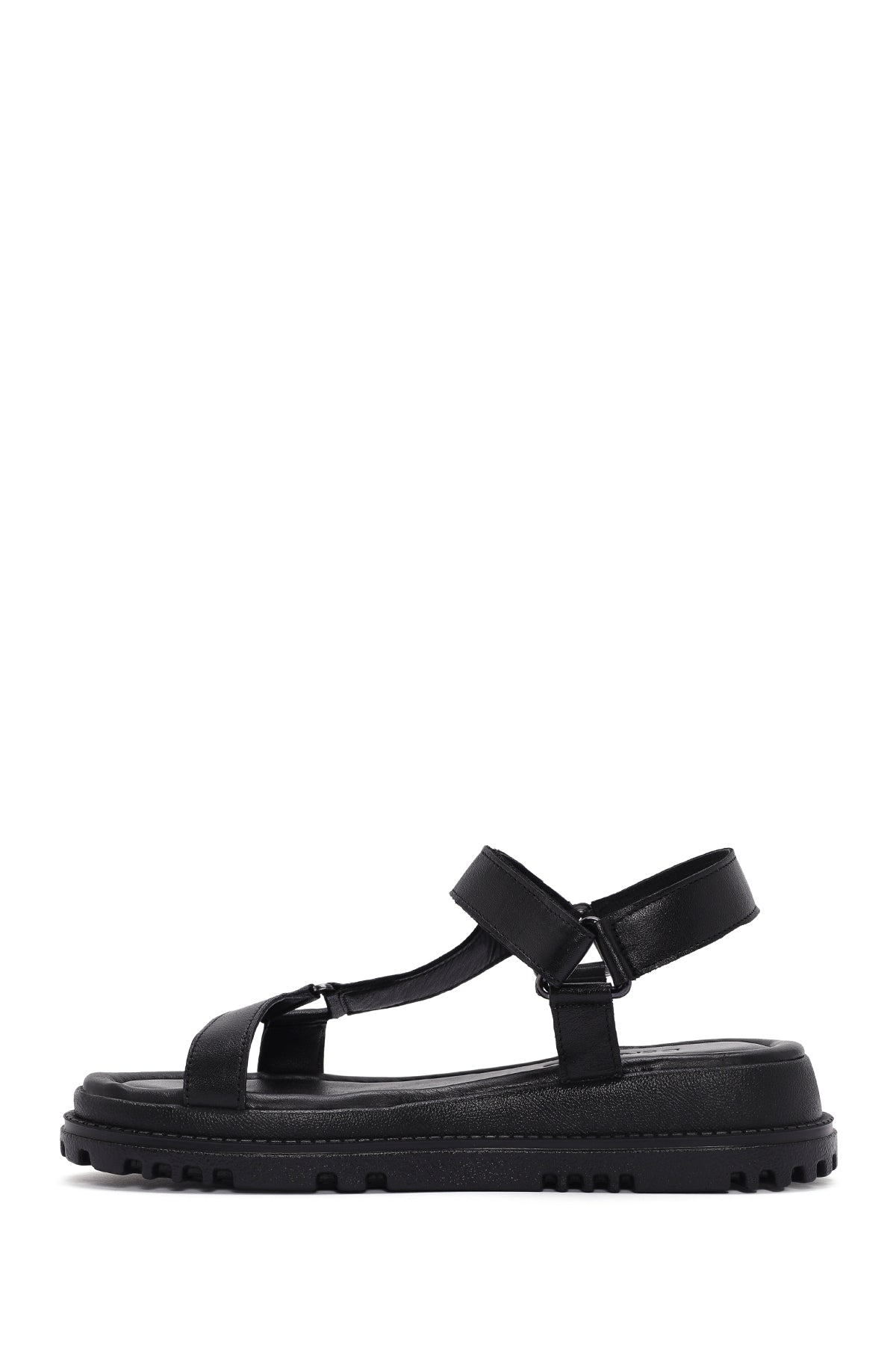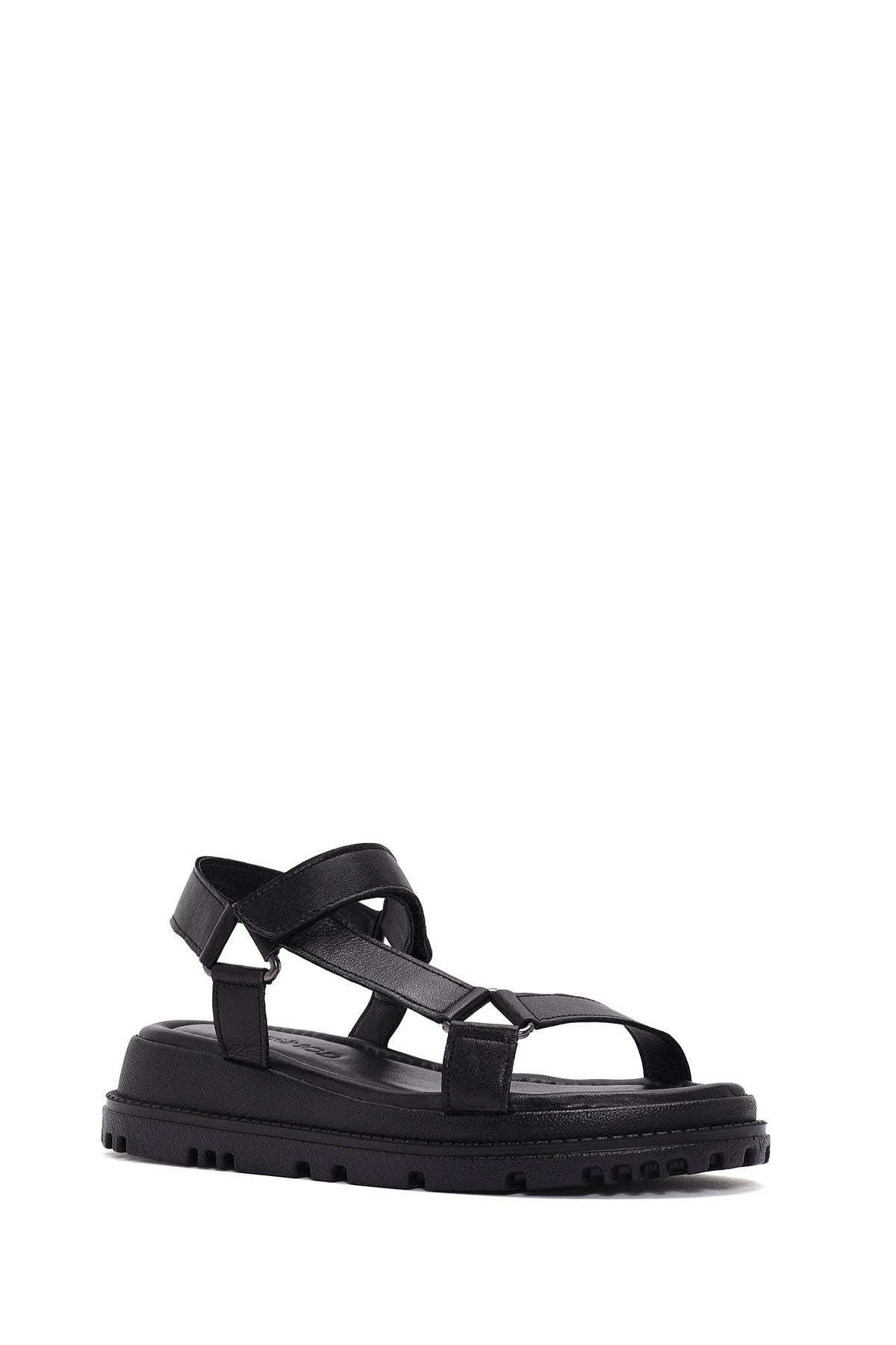 Kadın Siyah Bilekten Bantlı Deri Comfort Sandalet