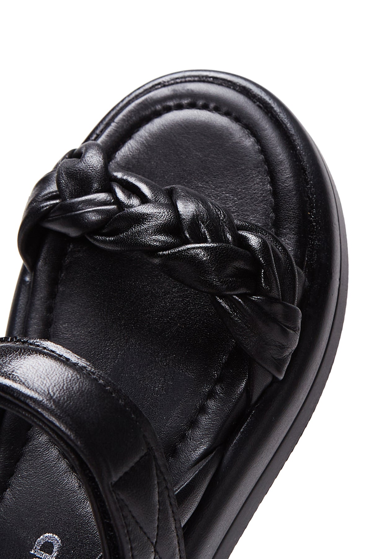 Kadın Siyah Bilekten Bantlı Deri Comfort Sandalet