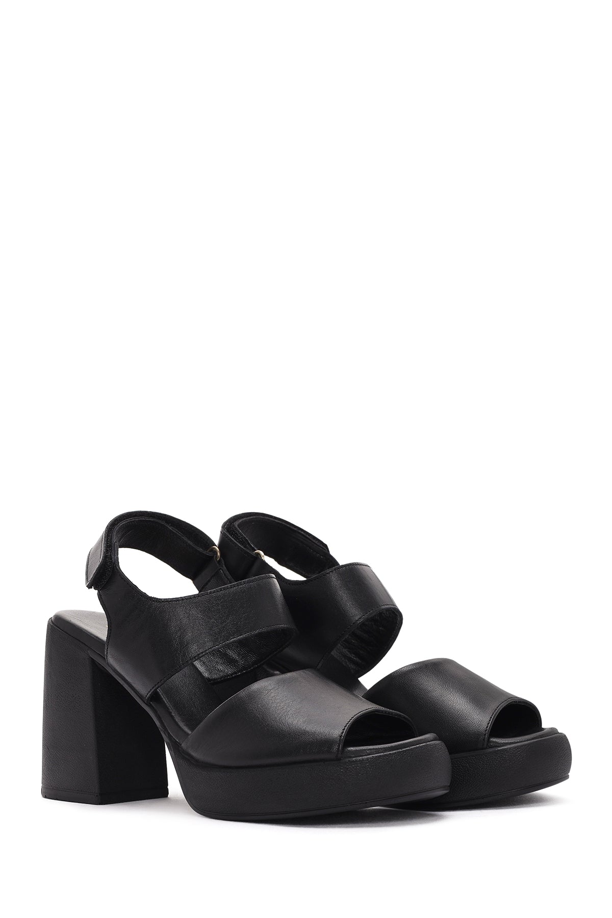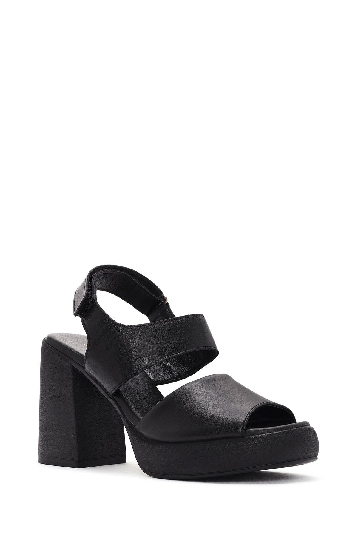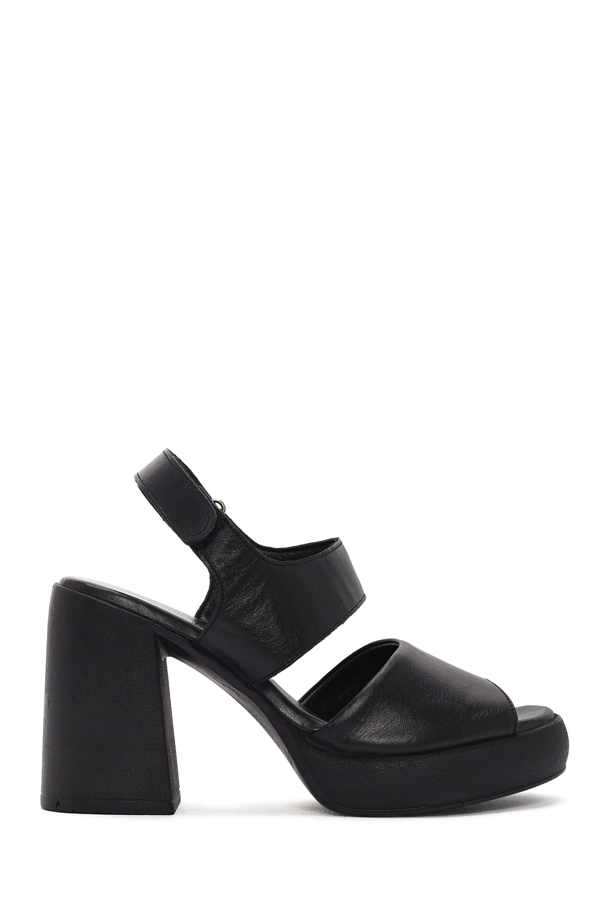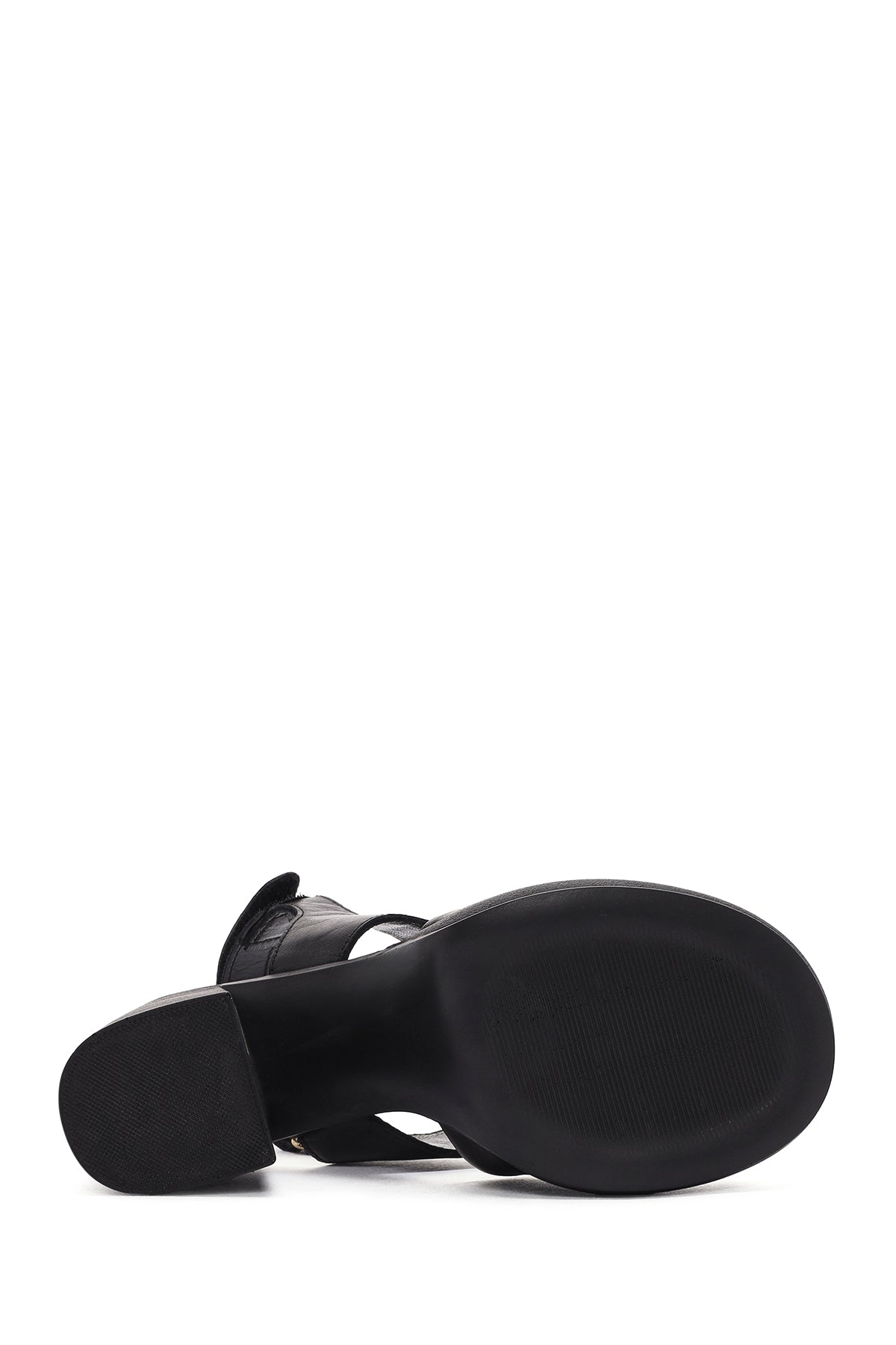 Kadın Siyah Bilekten Bantlı Kalın Topuklu Deri Sandalet