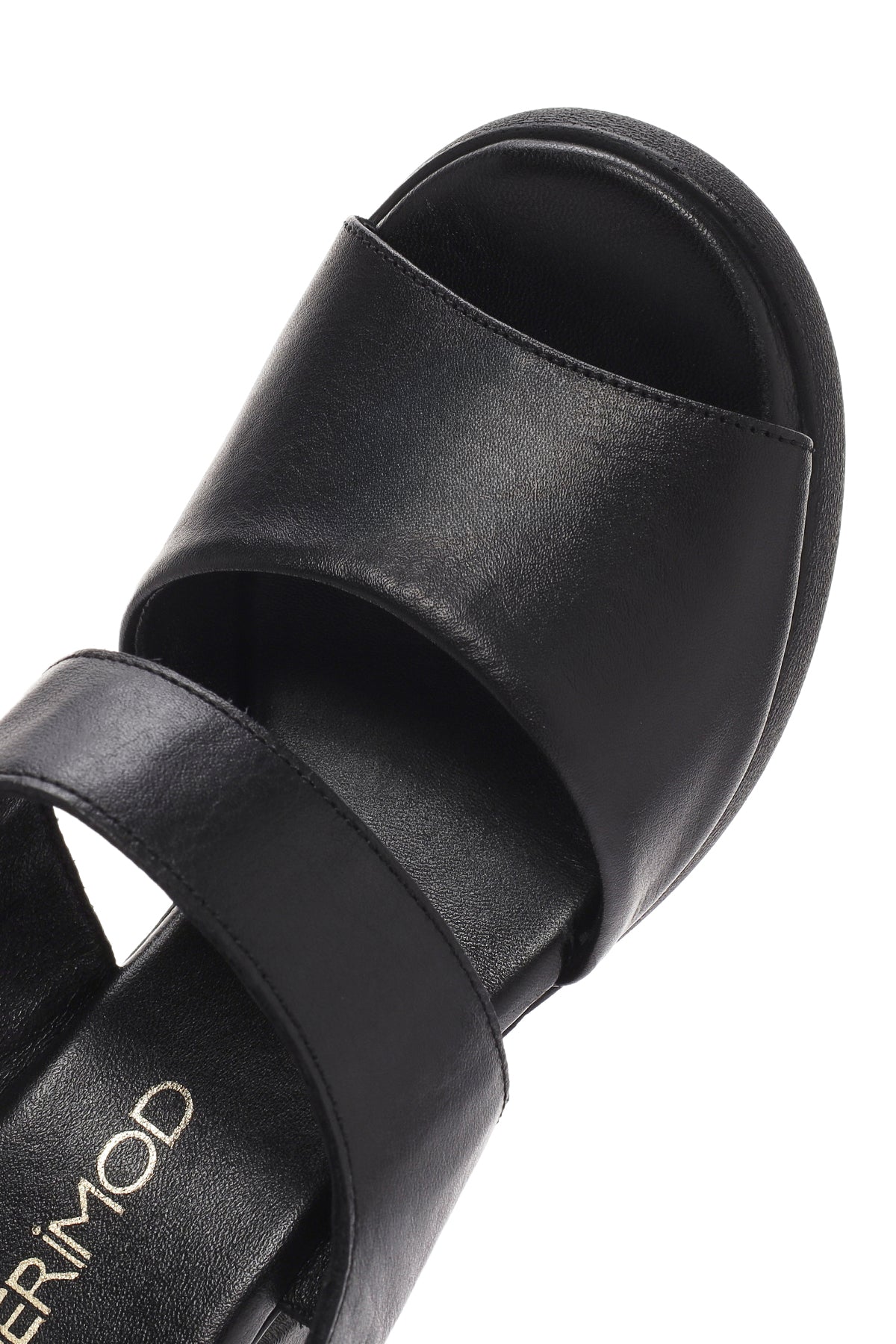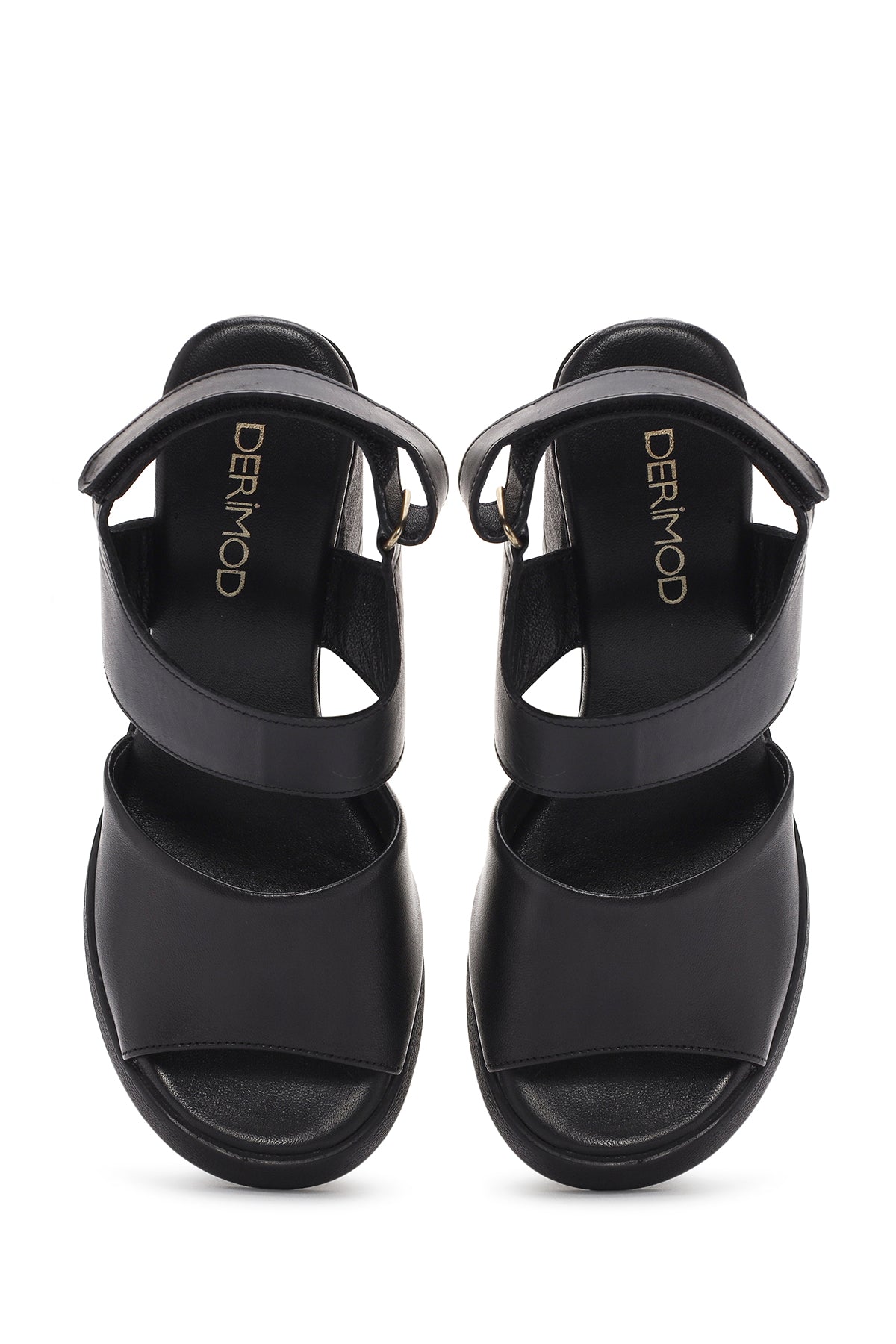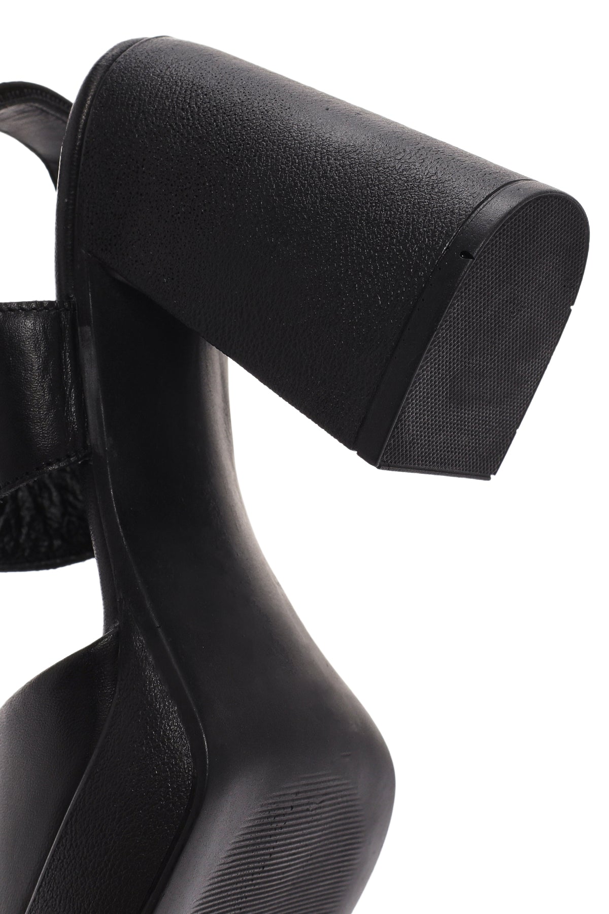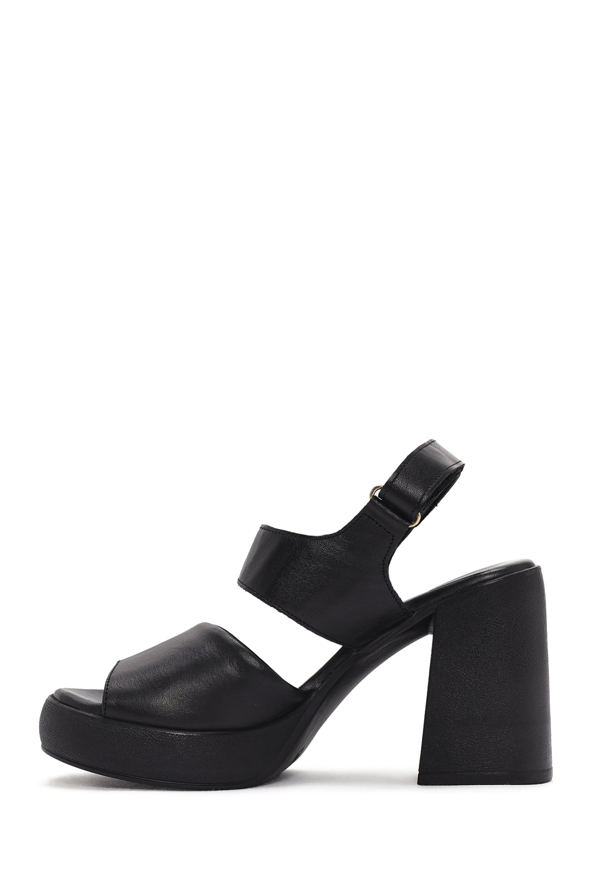 Kadın Siyah Bilekten Bantlı Kalın Topuklu Deri Sandalet
