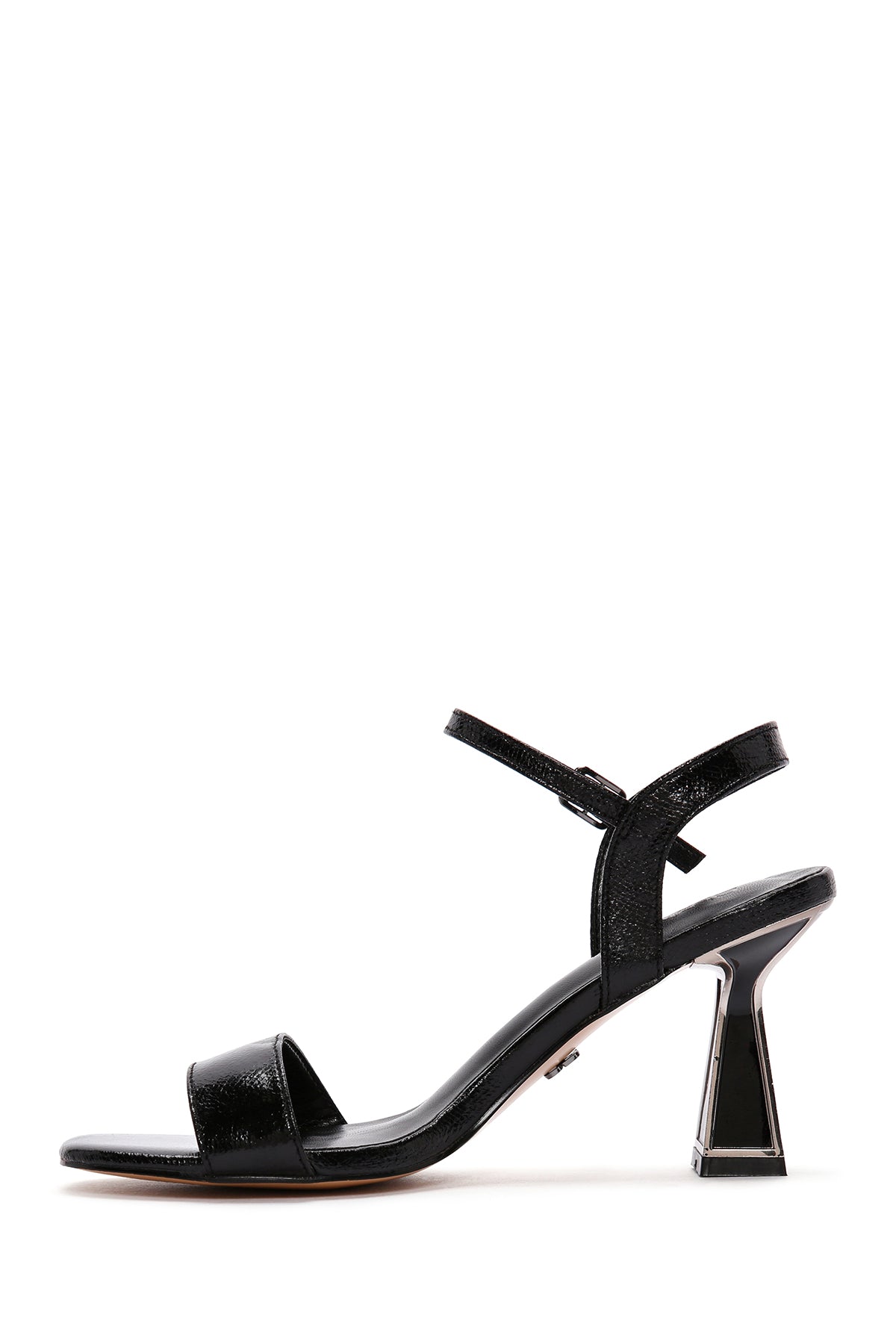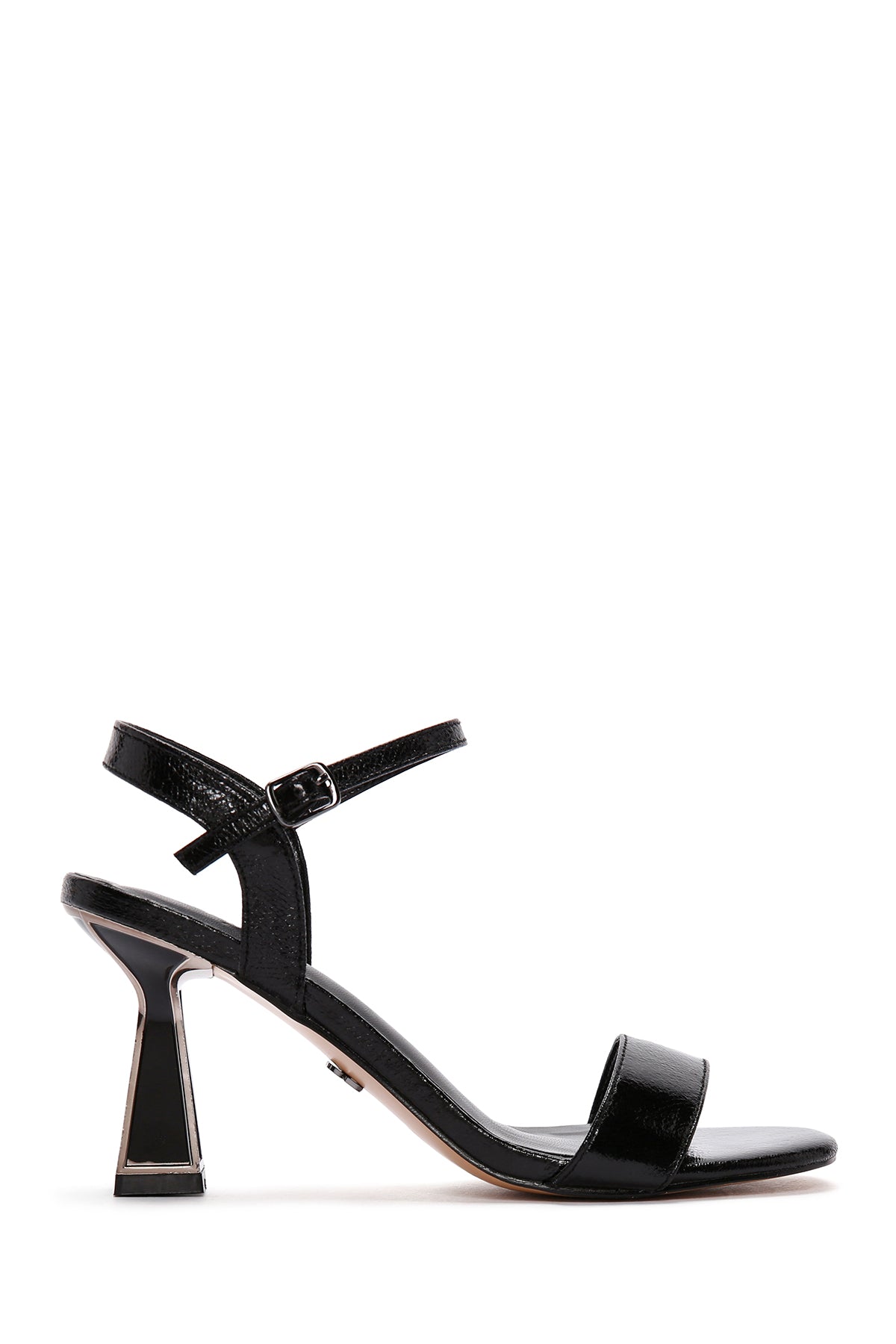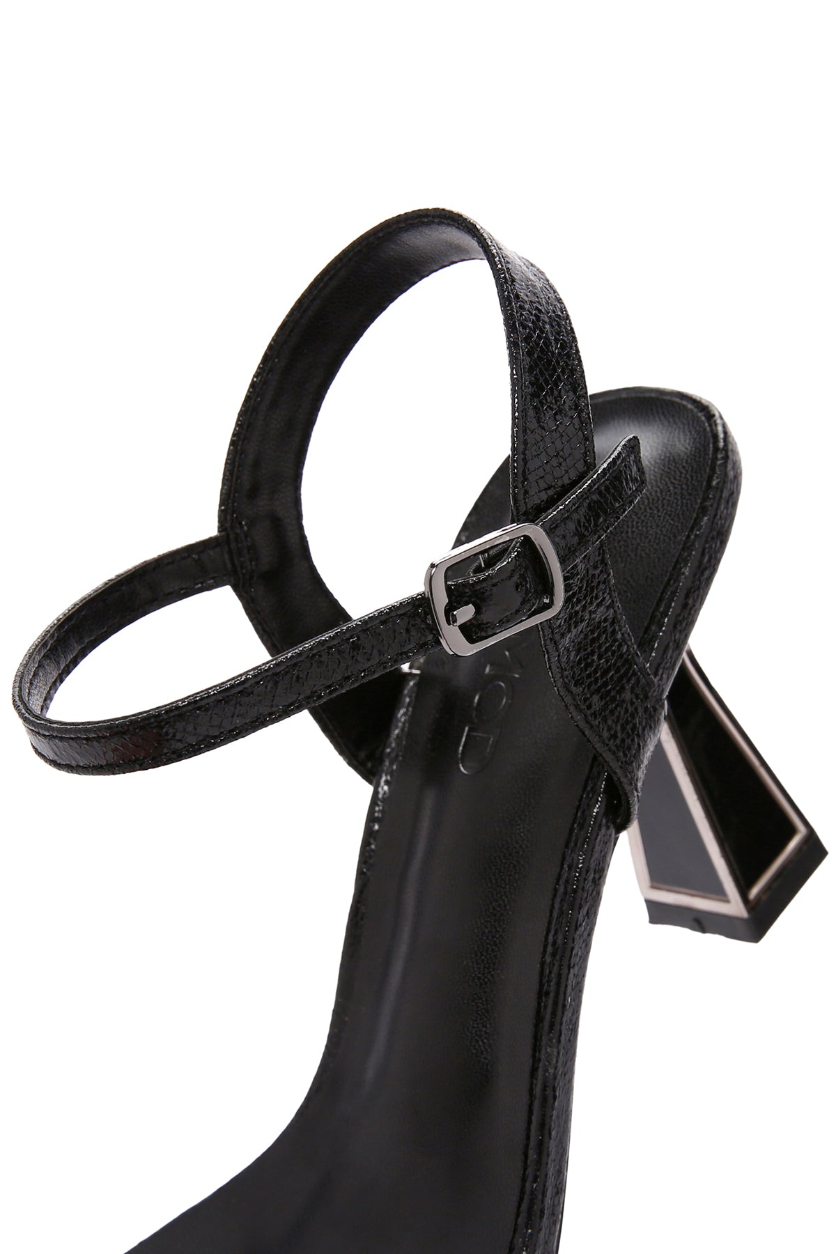 Kadın Siyah Bilekten Bantlı Metalik İnce Topuklu Sandalet