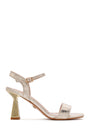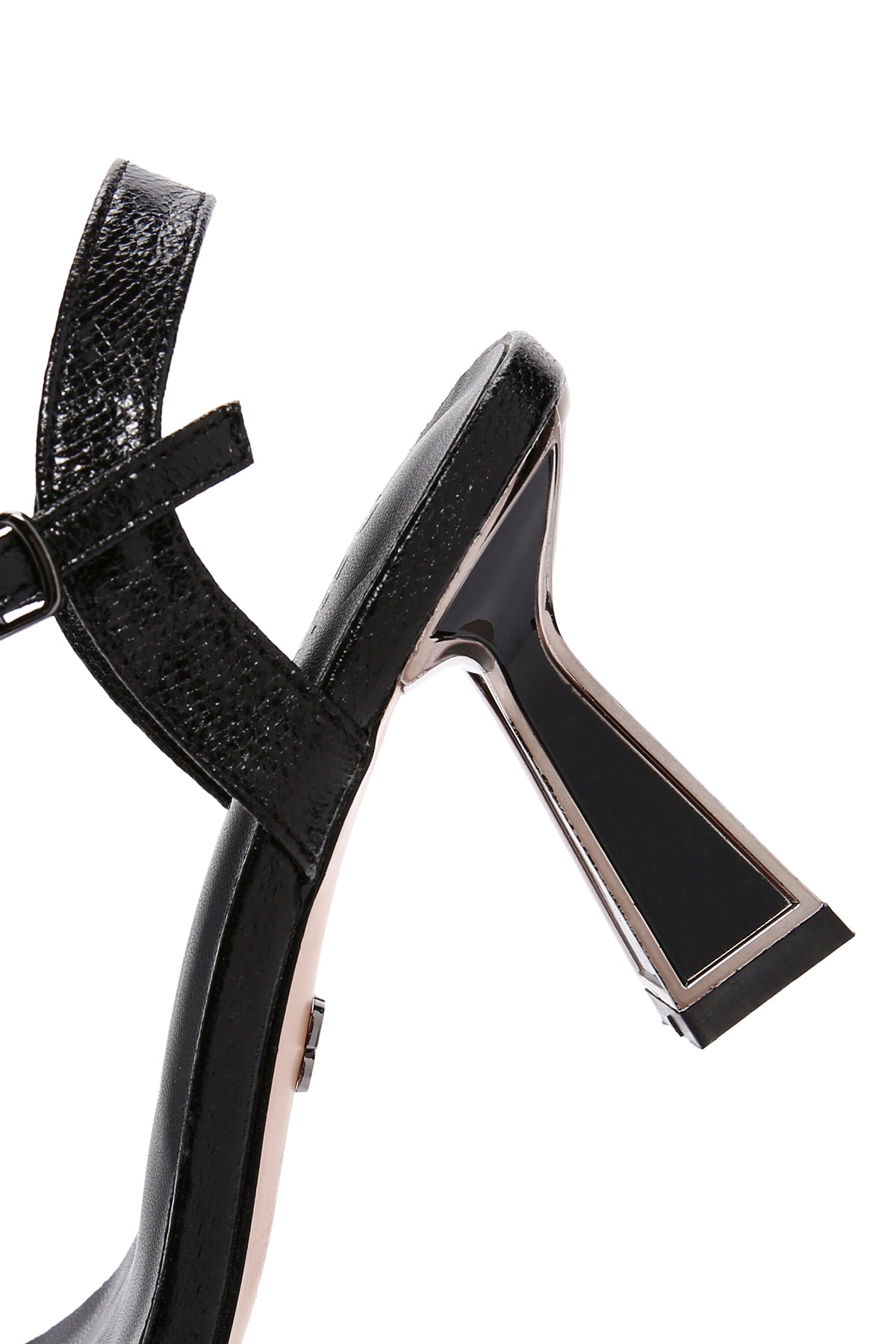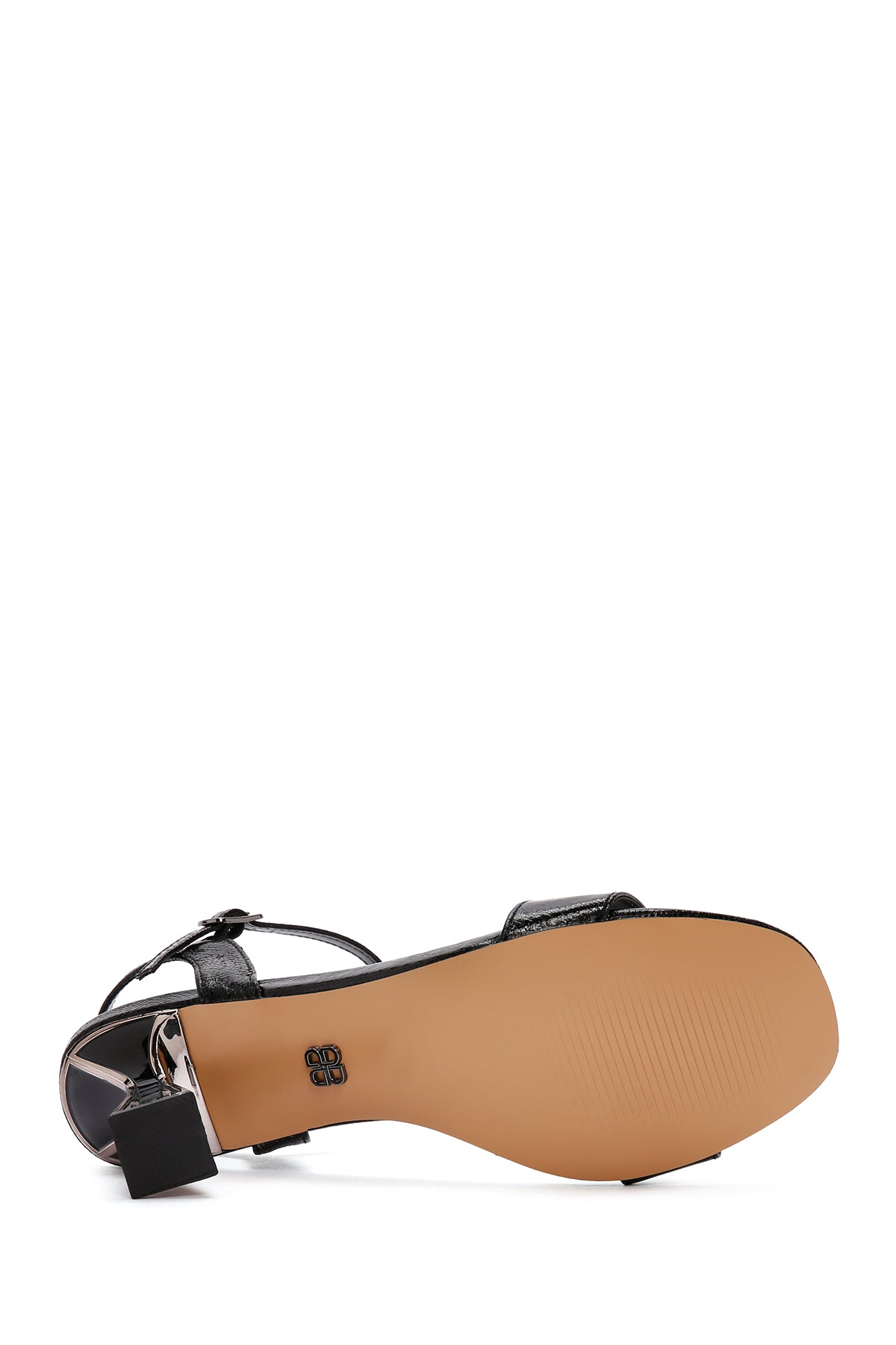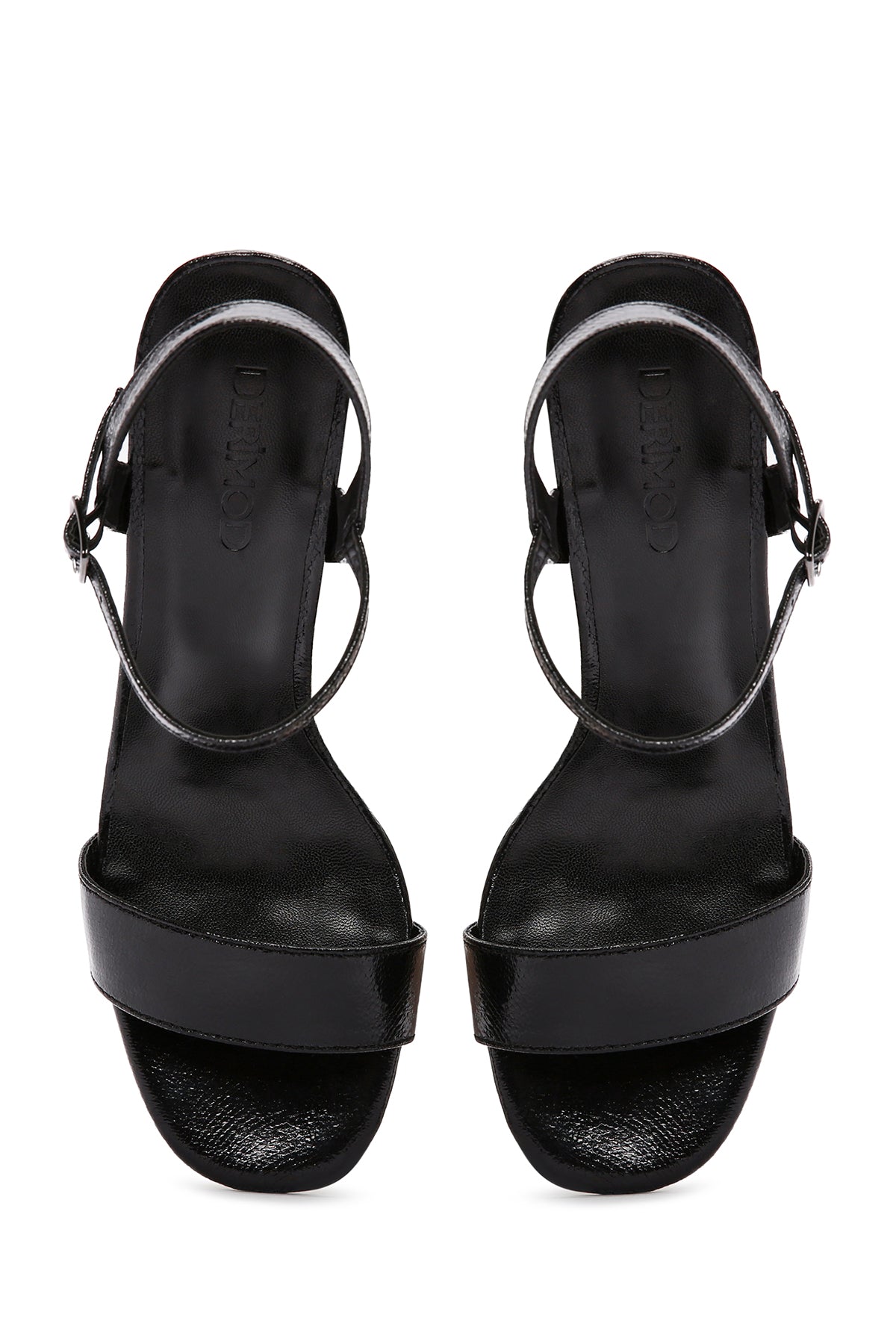 Kadın Siyah Bilekten Bantlı Metalik İnce Topuklu Sandalet
