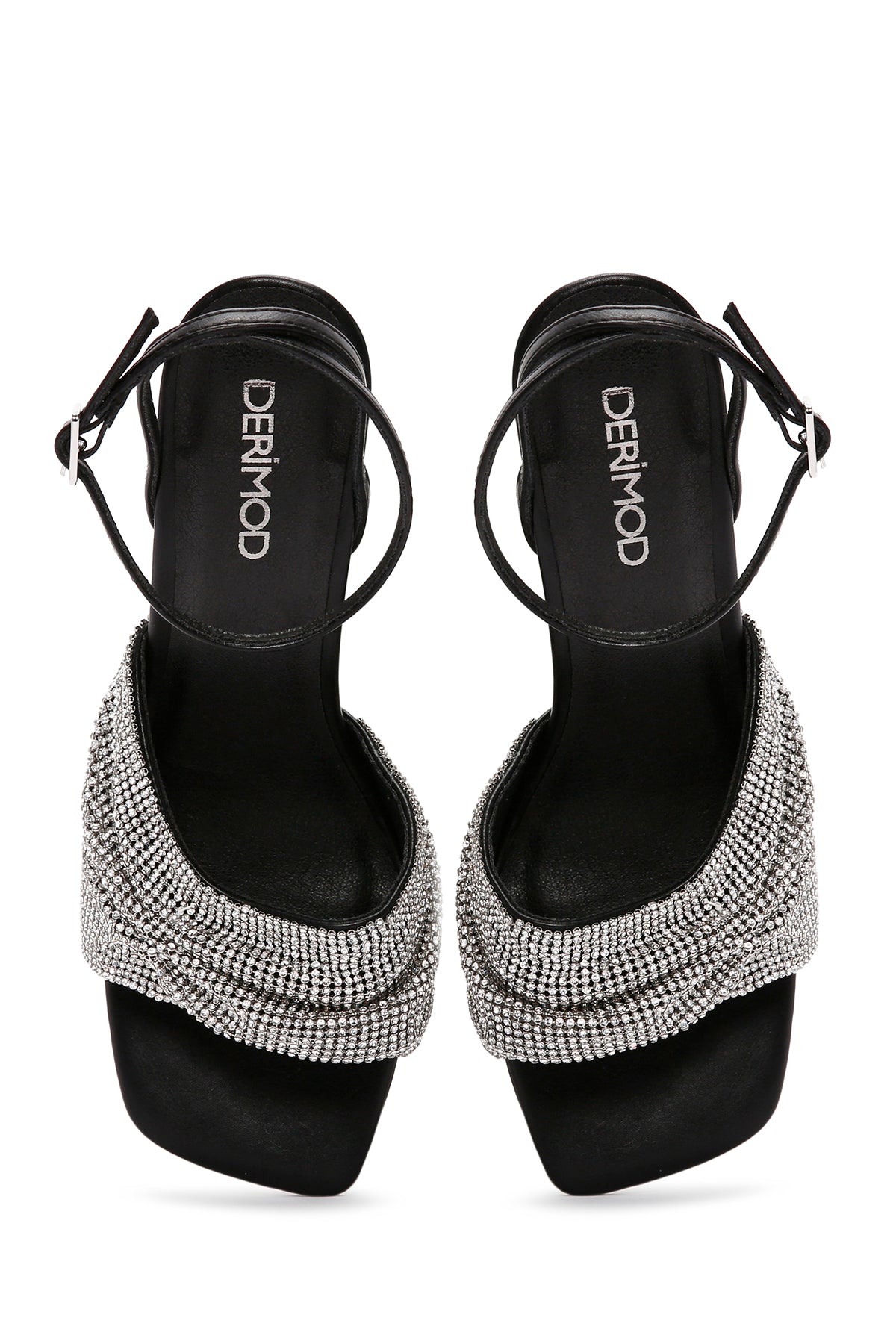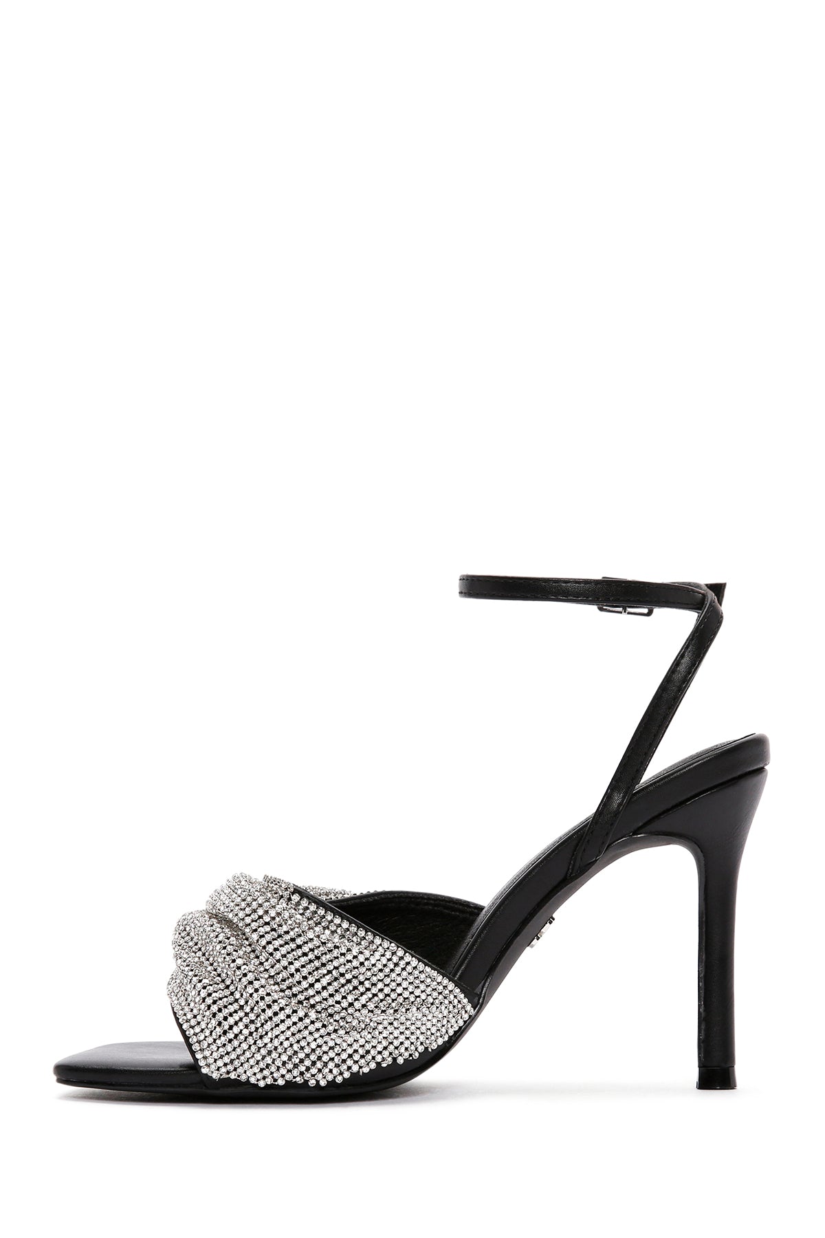 Kadın Siyah Bilekten Bantlı Taşlı İnce Topuklu Sandalet