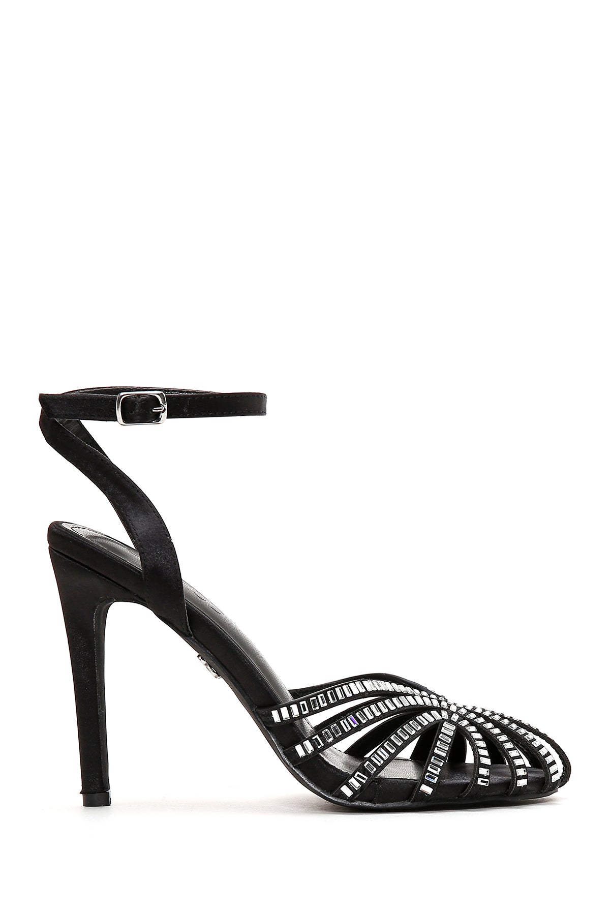 Kadın Siyah Bilekten Bantlı Taşlı İnce Topuklu Sandalet