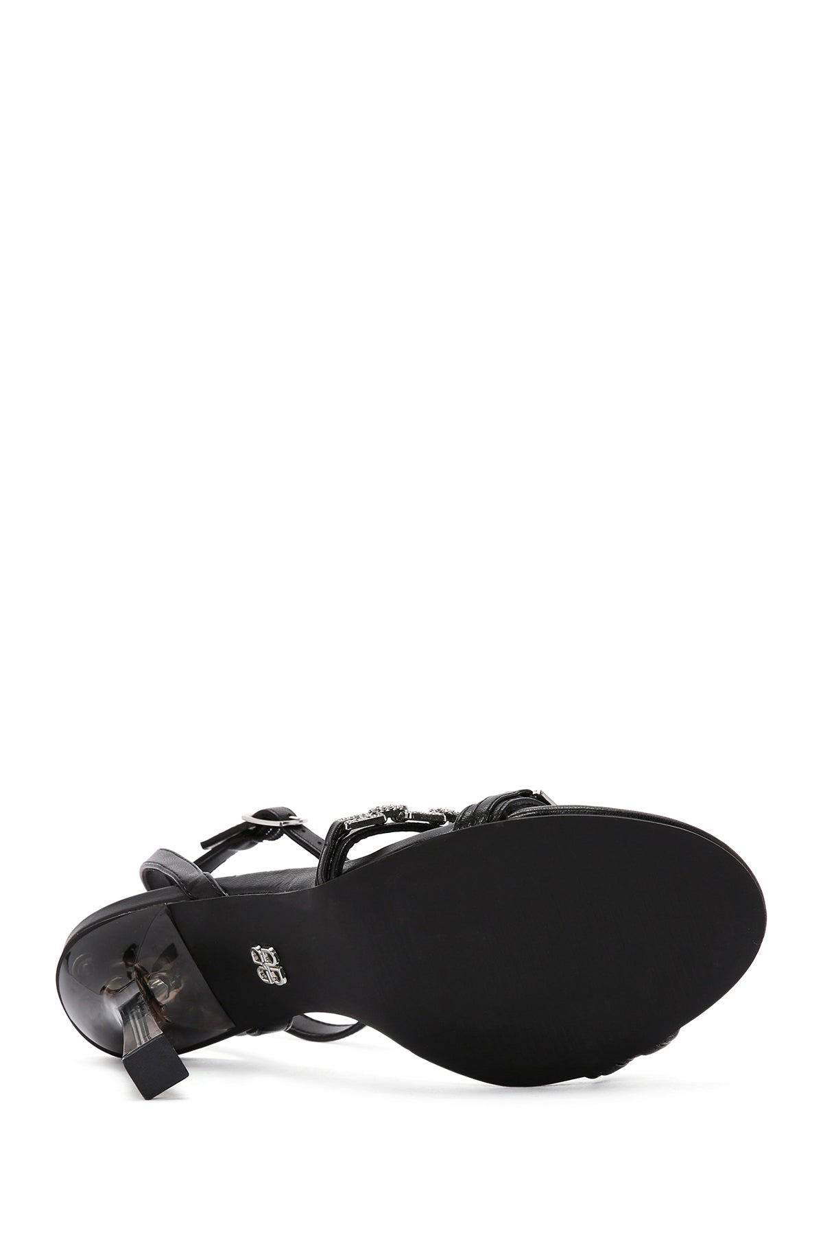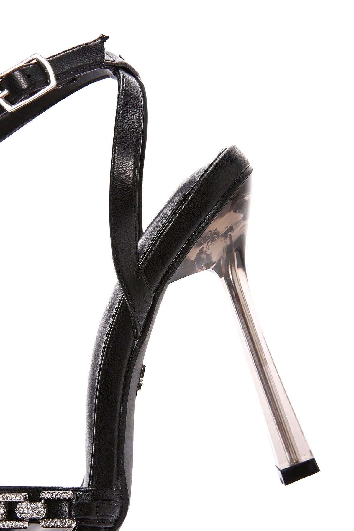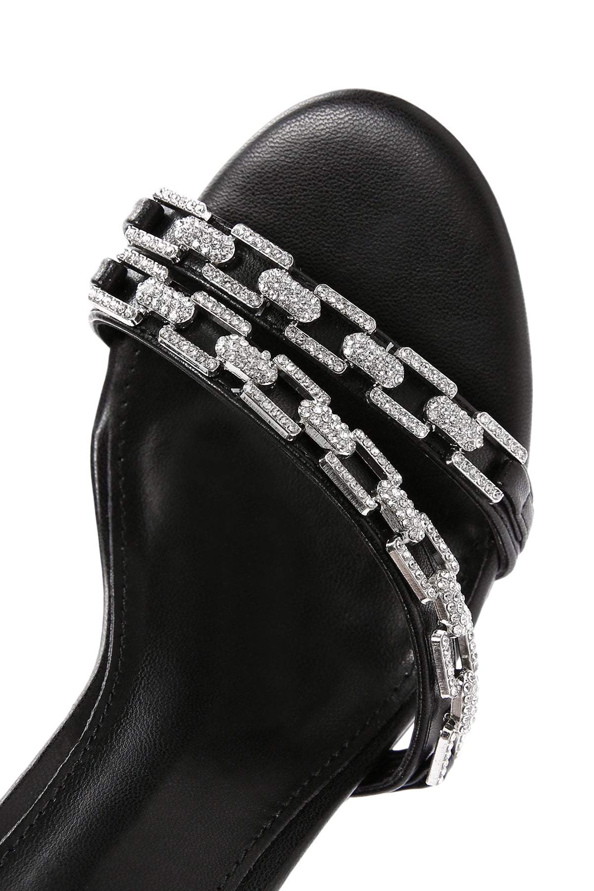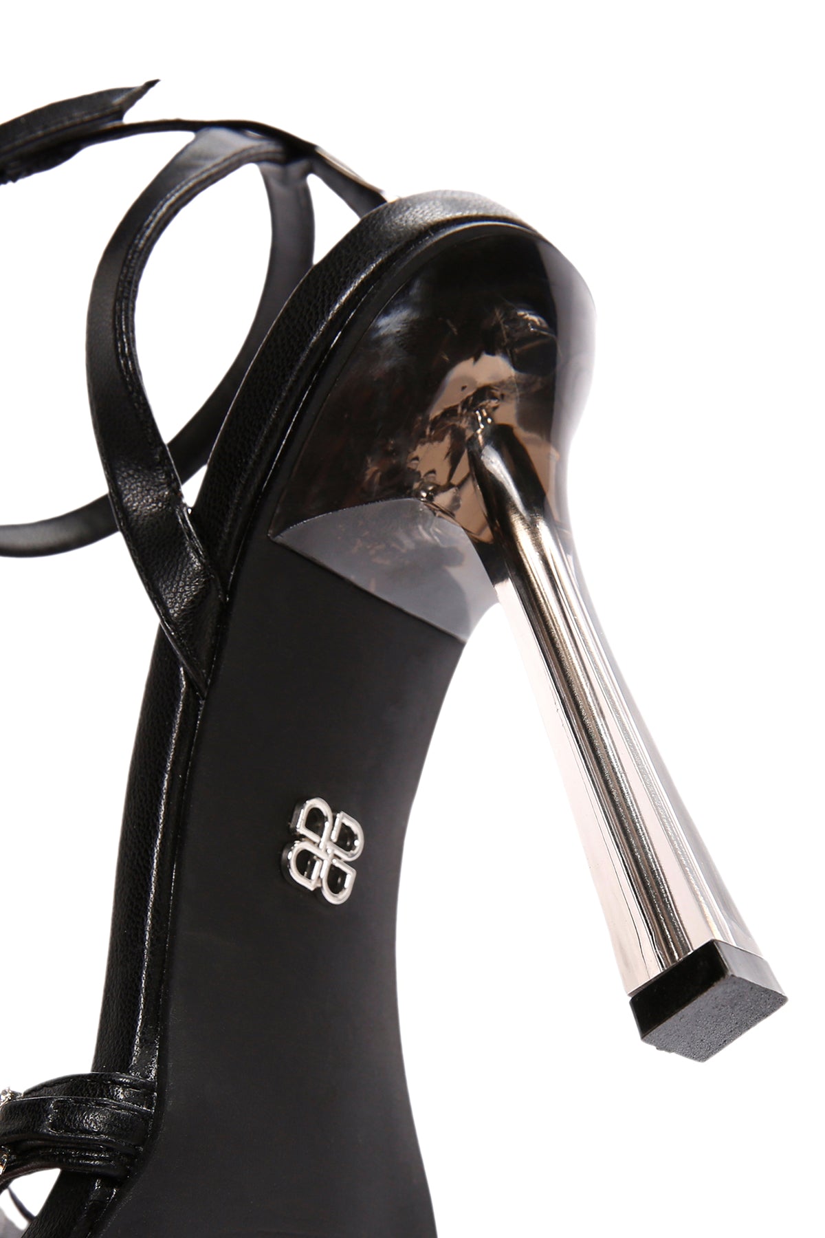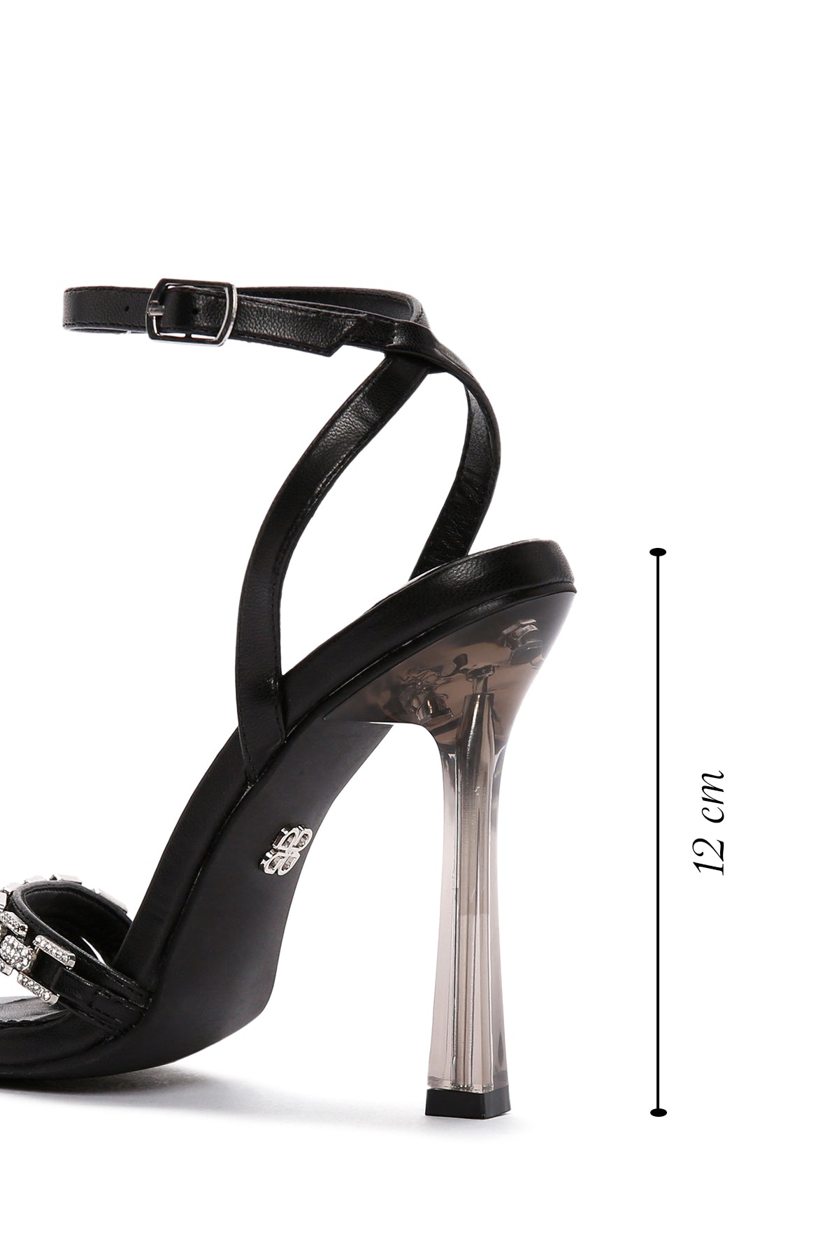 Kadın Siyah Bilekten Bantlı Taşlı İnce Topuklu Sandalet