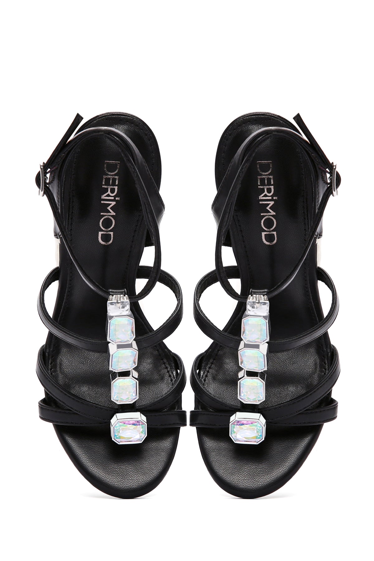 Kadın Siyah Bilekten Bantlı Taşlı İnce Yüksek Topuklu Sandalet