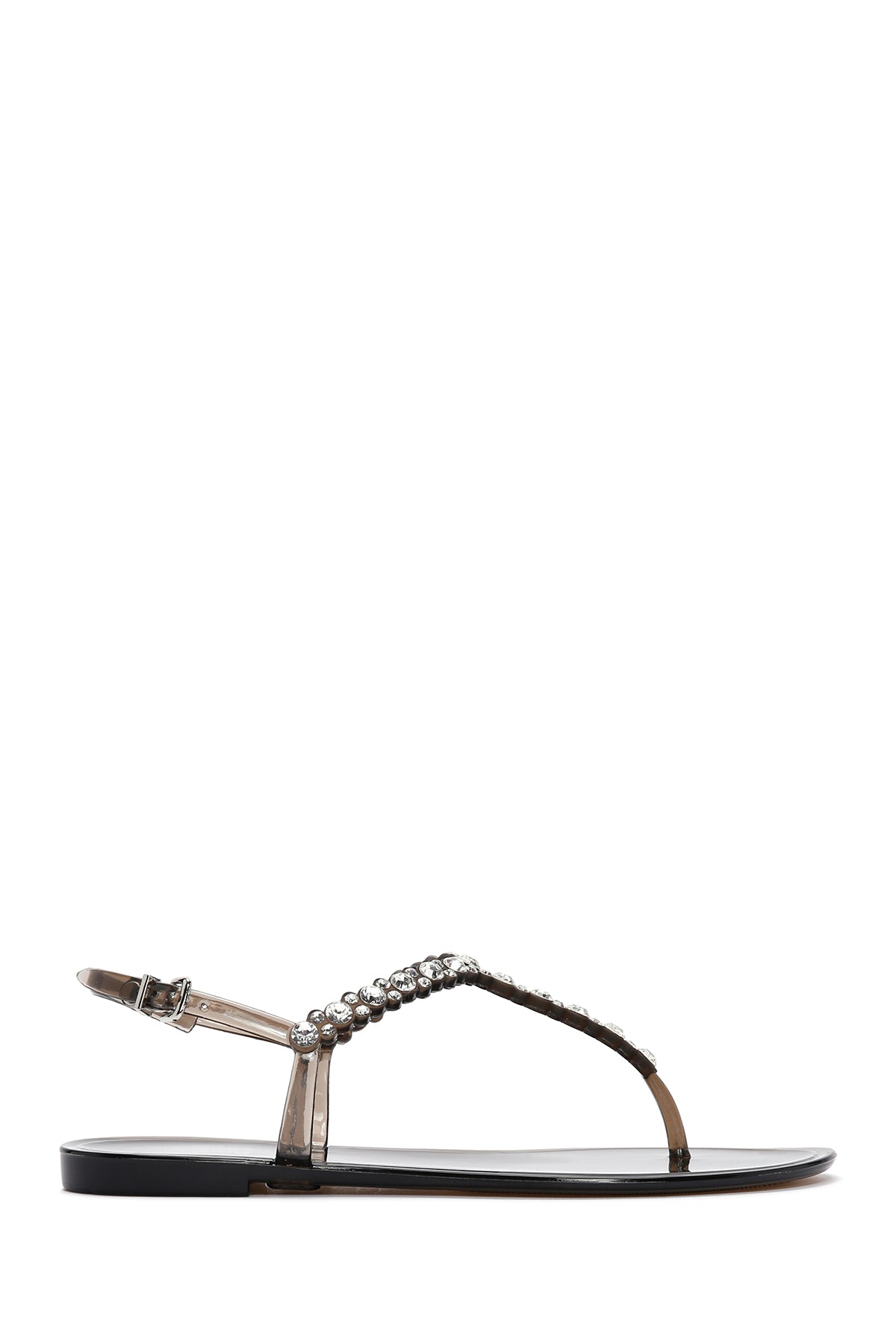 Kadın Siyah Bilekten Bantlı Taşlı Parmak Arası Sandalet