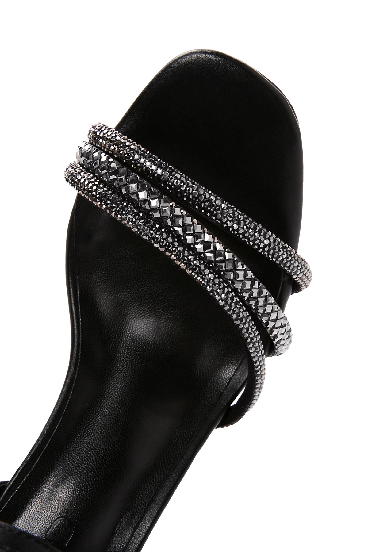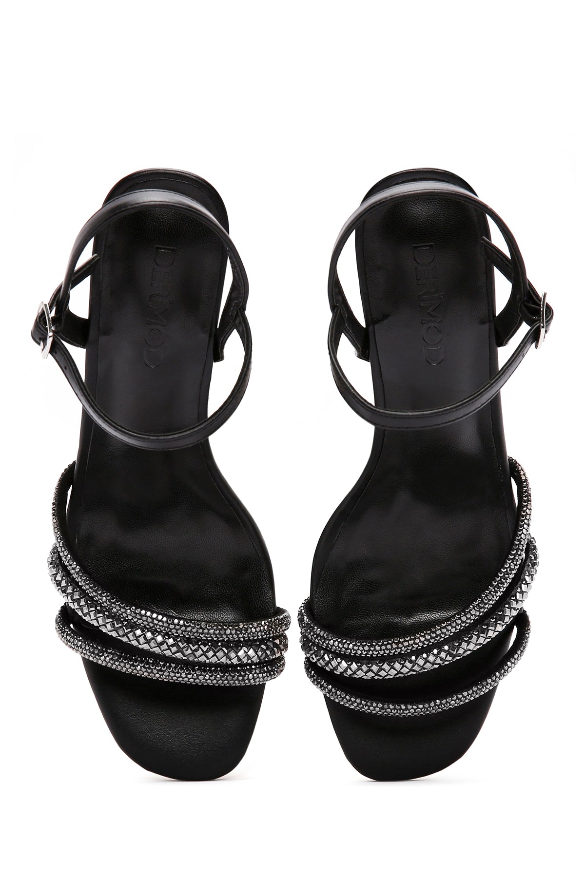 Kadın Siyah Bilekten Bantlı Taşlı Topuklu Sandalet