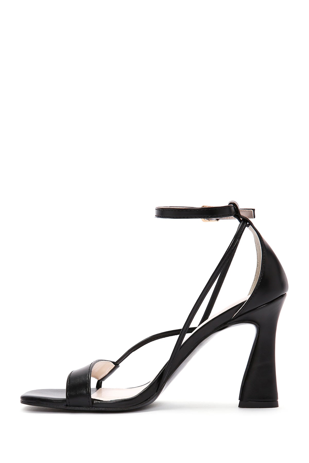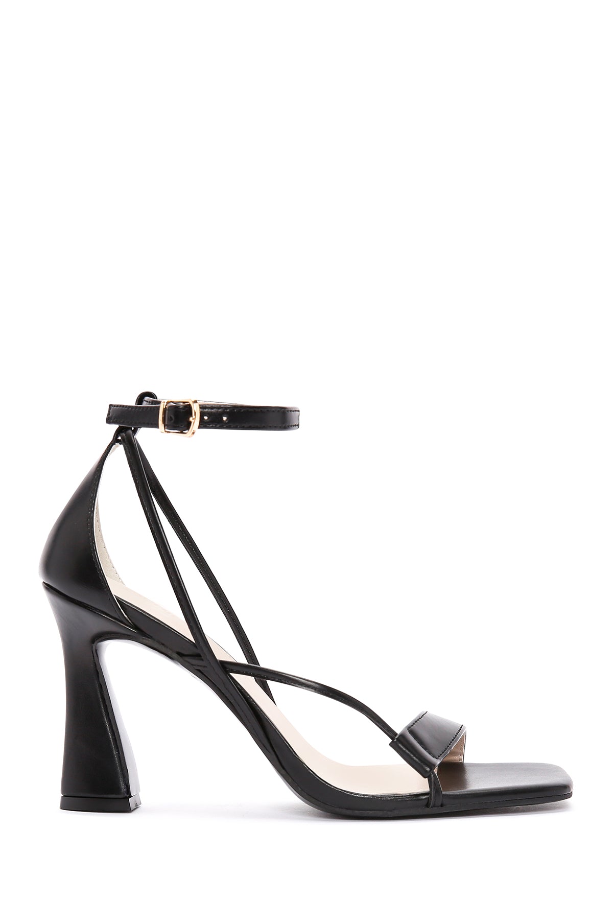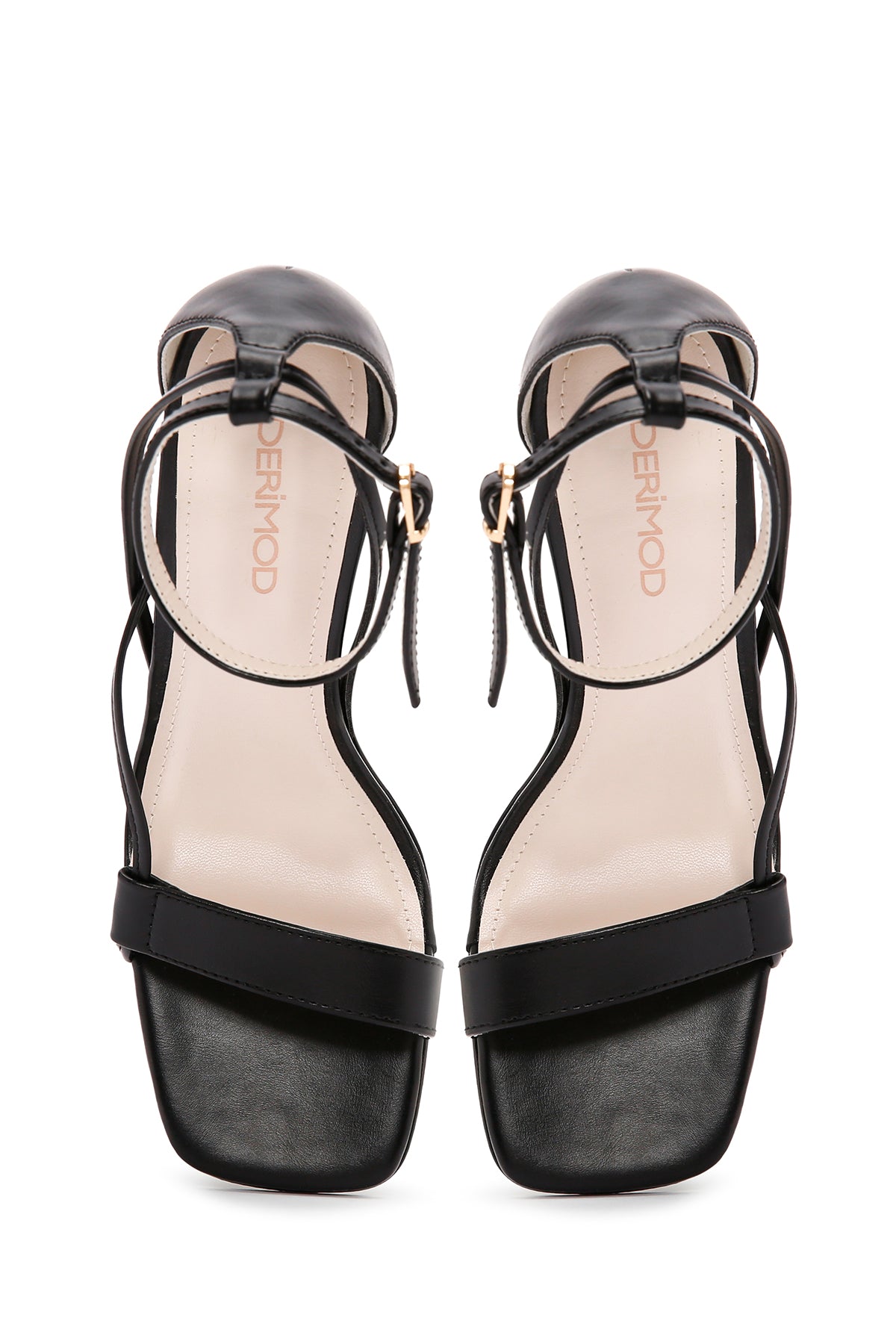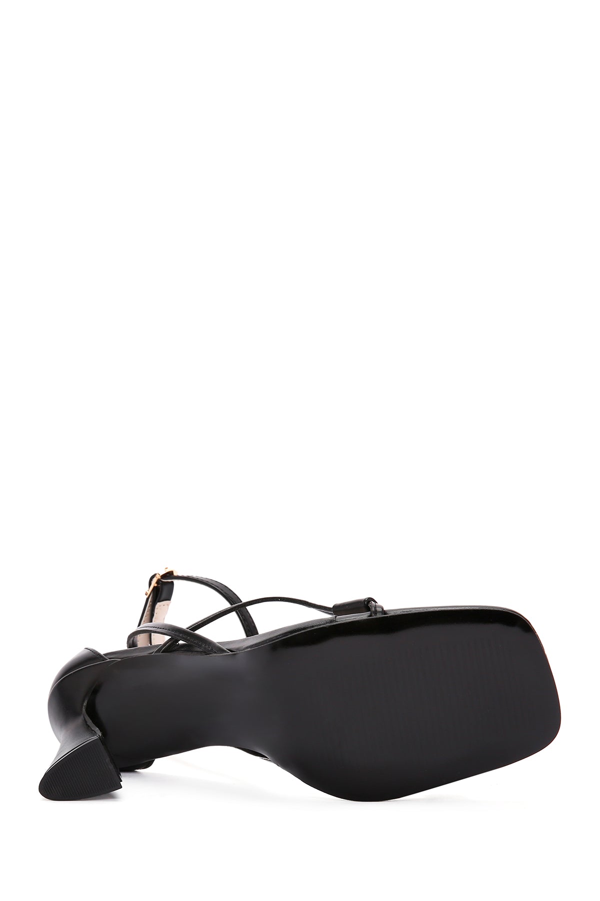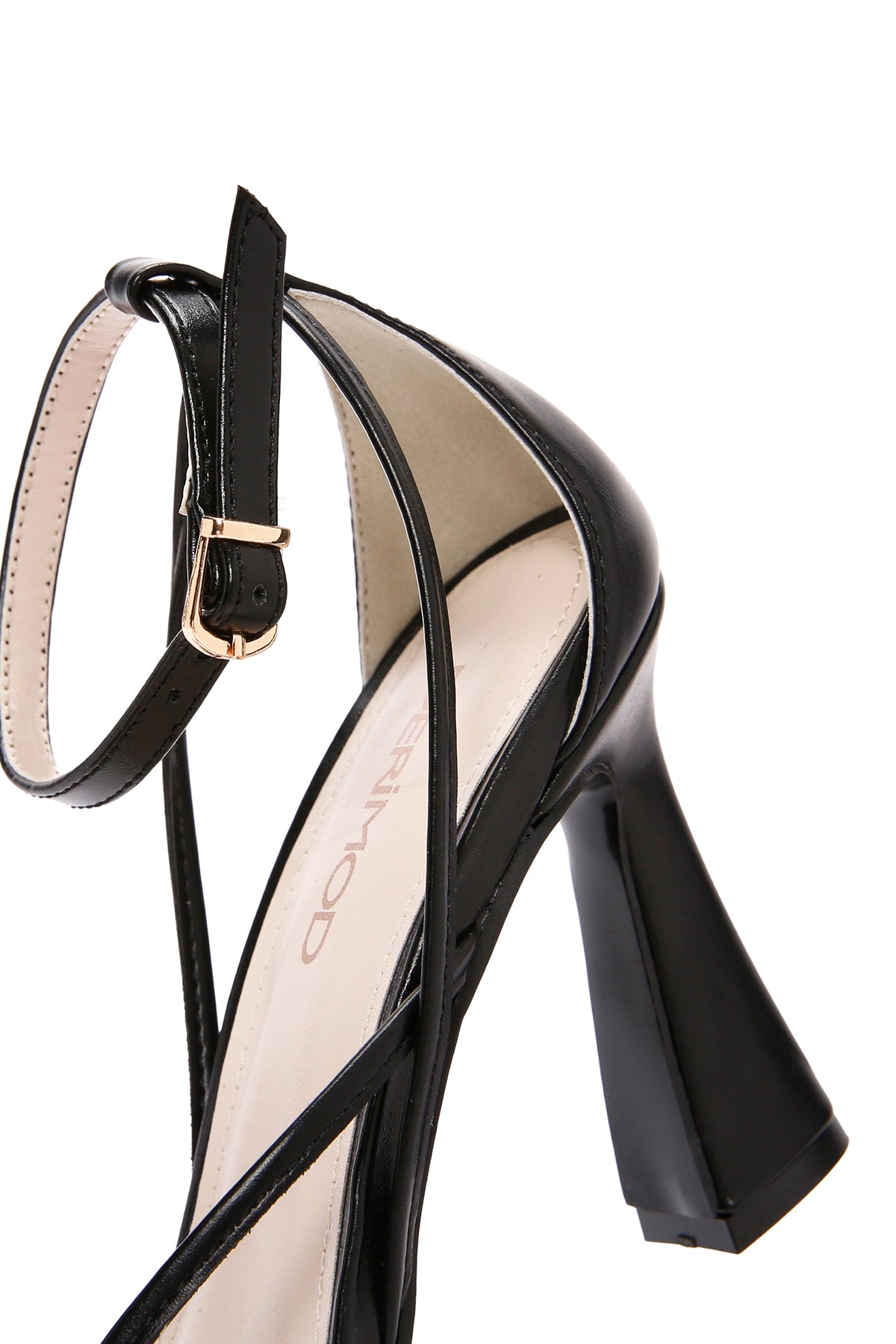 Kadın Siyah Bilekten Bantlı Topuklu Deri Ayakkabı