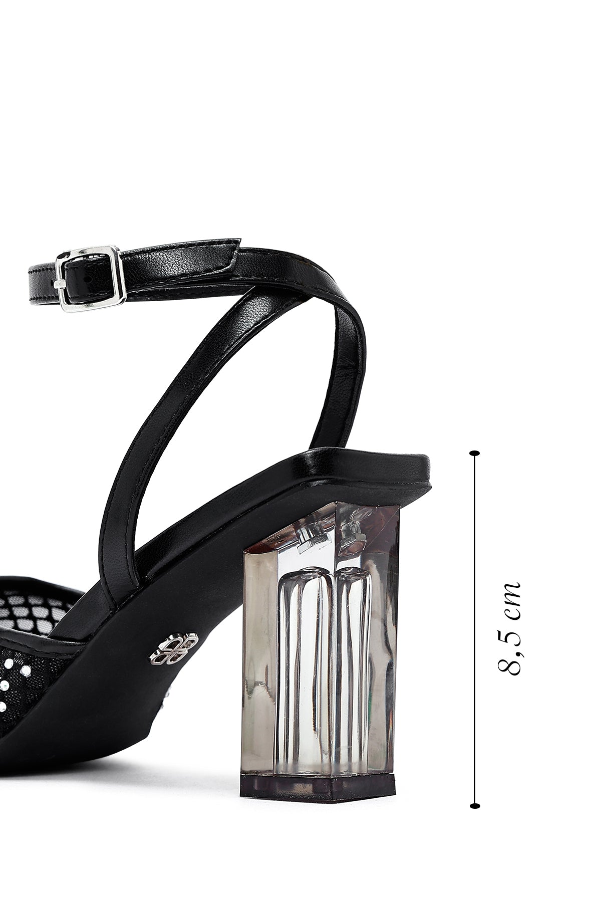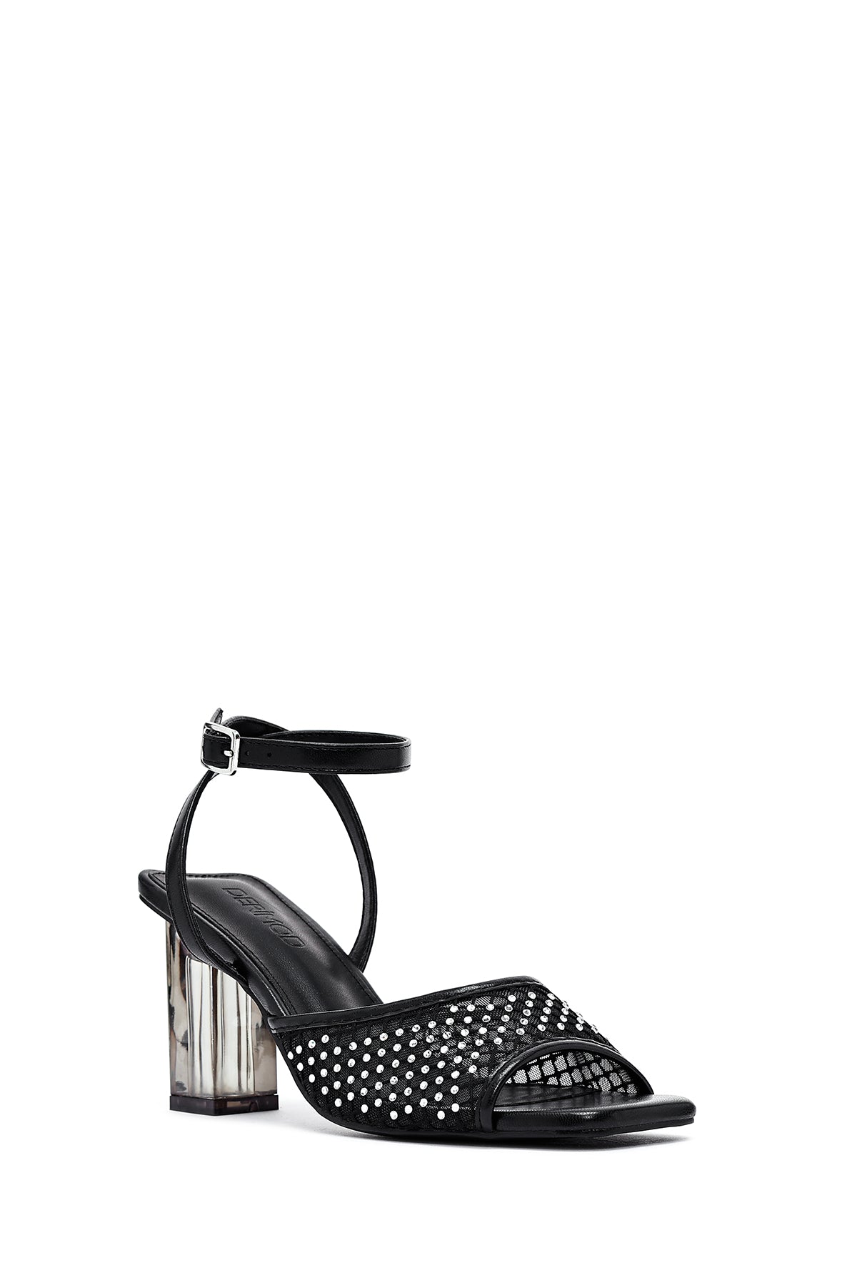 Derimod’un Zarifliği ve Şıklığı bir arada sunan Kadın Siyah Bilekten Tokalı Taşlı Şeffaf Kalın Topuklu Sandalet ile tarzınızı konuşturun. Ürünün kodu: 25SFE481714 11