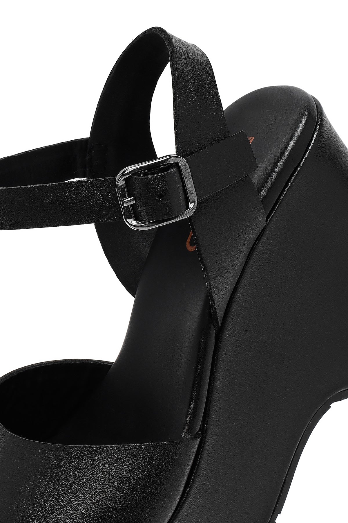 Derimod’un Zarifliği ve Şıklığı bir arada sunan Kadın Siyah Bilekten Tokalı Yüksek Dolgu Topuklu Deri Sandalet ile tarzınızı konuşturun. Ürünün kodu: 25SFD141118 11