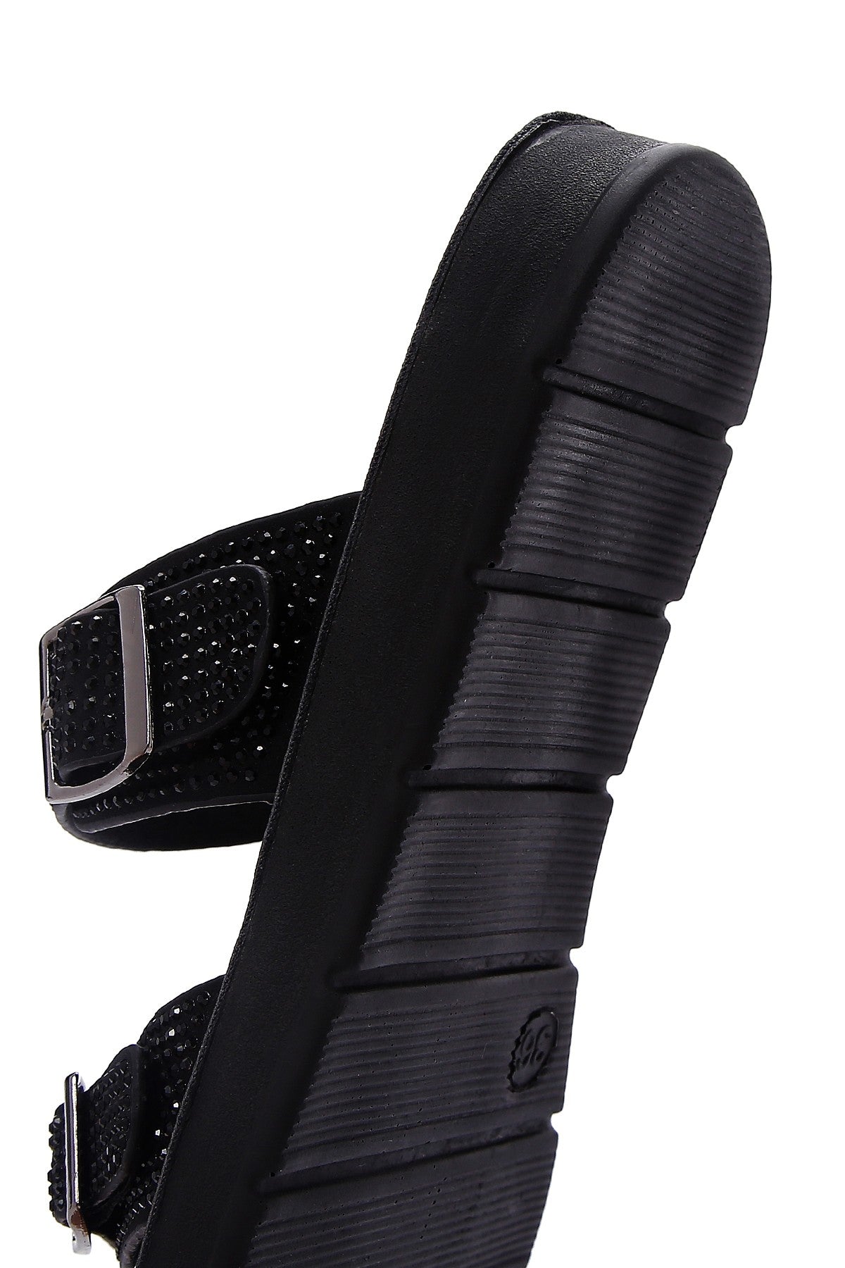 Derimod’un Zarif ve Şıklığı bir arada sunan Kadın Siyah Çift Tokalı Taşlı Düz Terlik ile tarzınızı konuşturun. Ürünün kodu: 23SFE466114 11