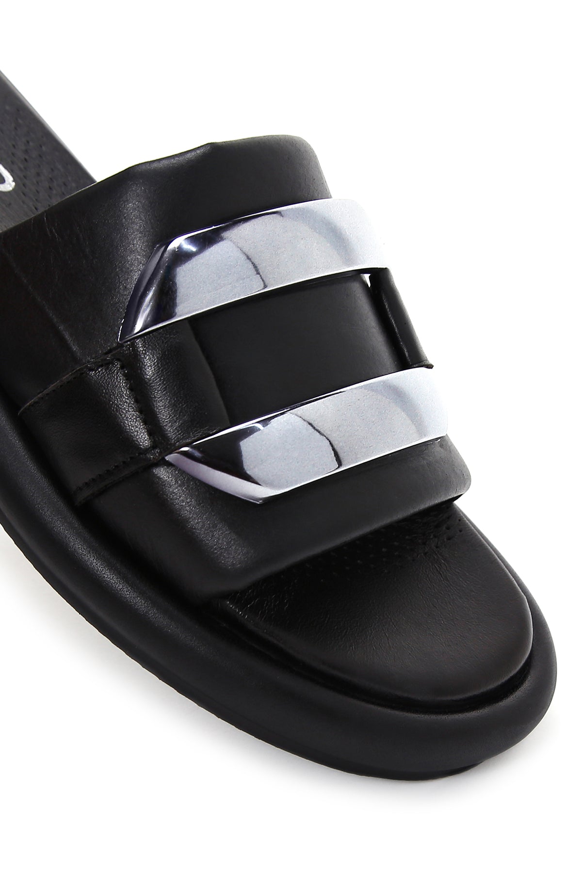 Kadın Siyah Deri Comfort Terlik
