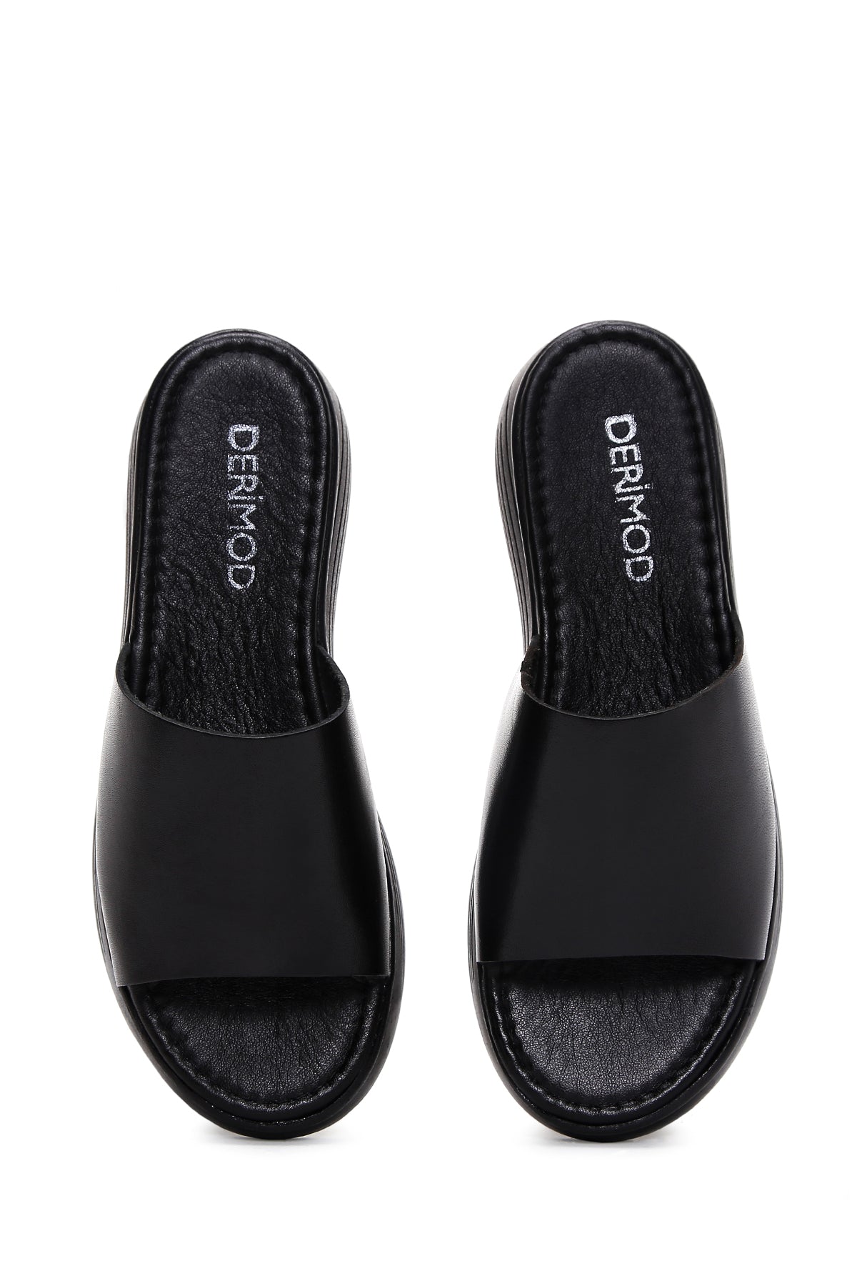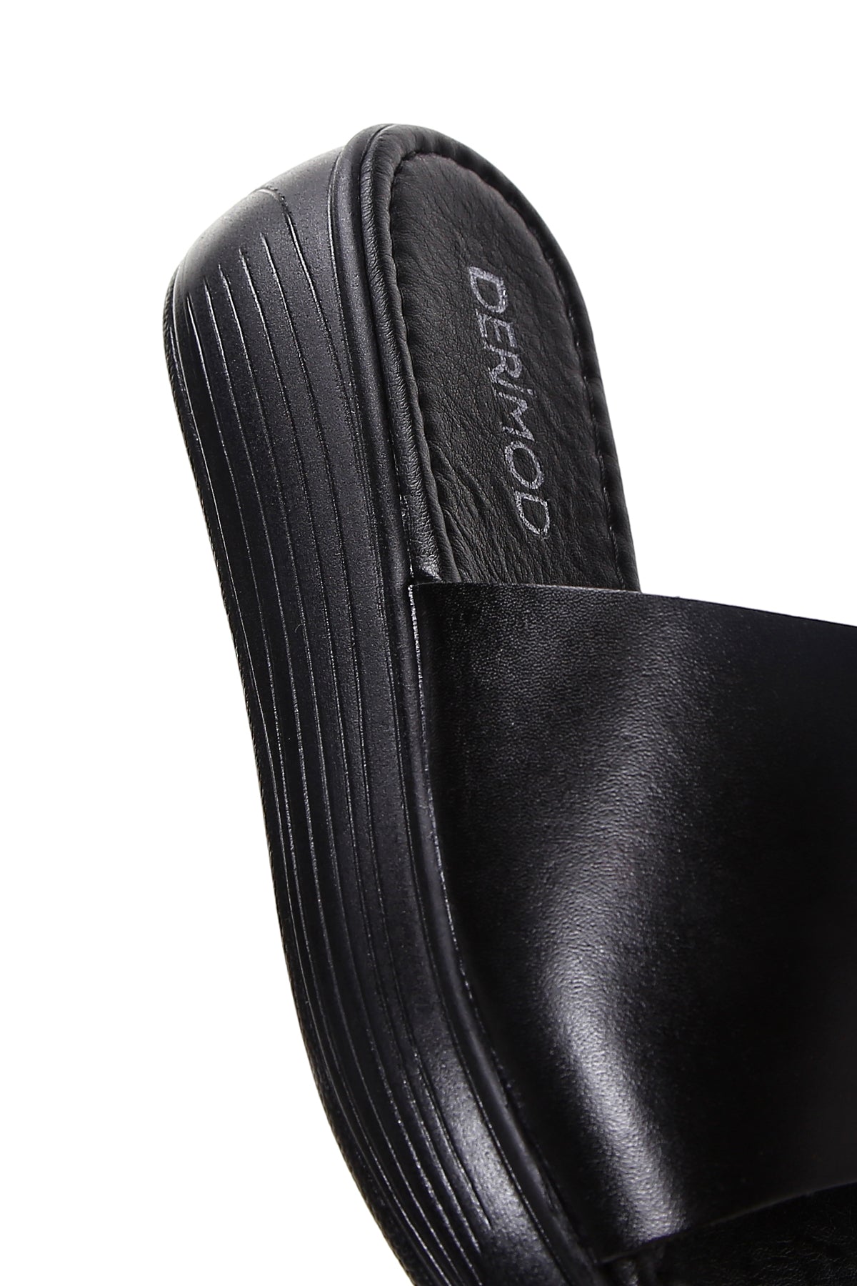 Derimod’un Zarif ve Şıklığı bir arada sunan Kadın Siyah Deri Kalın Tabanlı Terlik ile tarzınızı konuşturun. Ürünün kodu: 23SFD330118 11