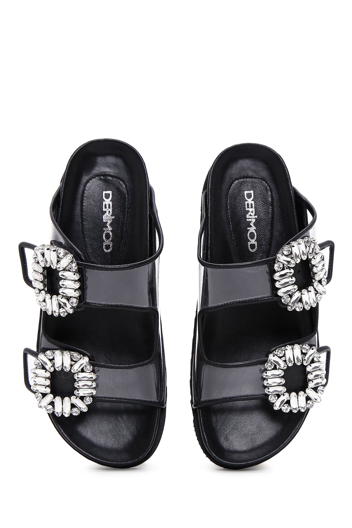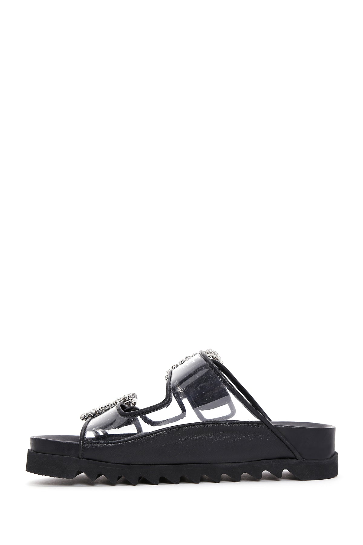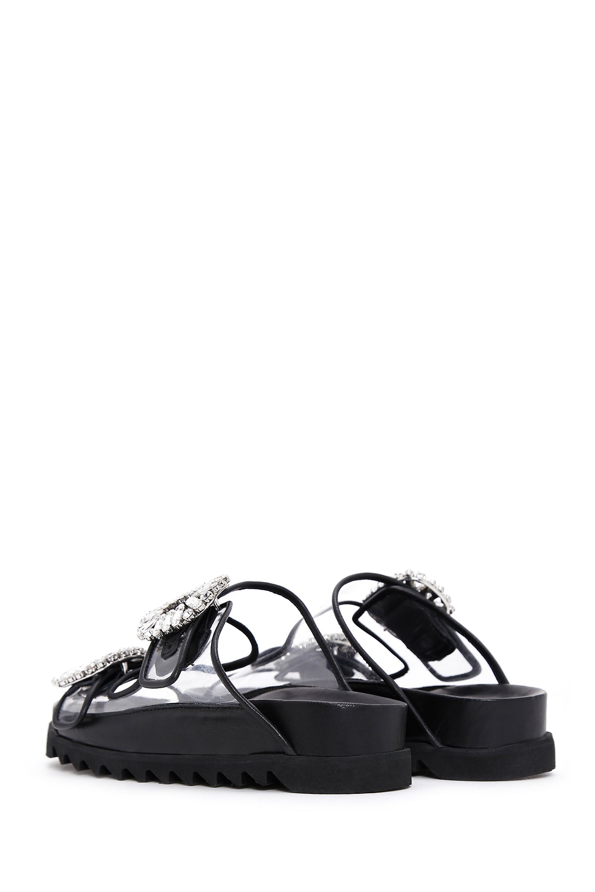 Derimod’un Zarif ve Şıklığı bir arada sunan Kadın Siyah Deri Taşlı Şeffaf Terlik ile tarzınızı konuşturun. Ürünün kodu: 23SFD120414 11