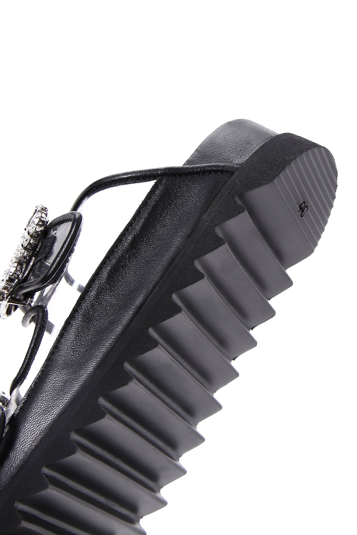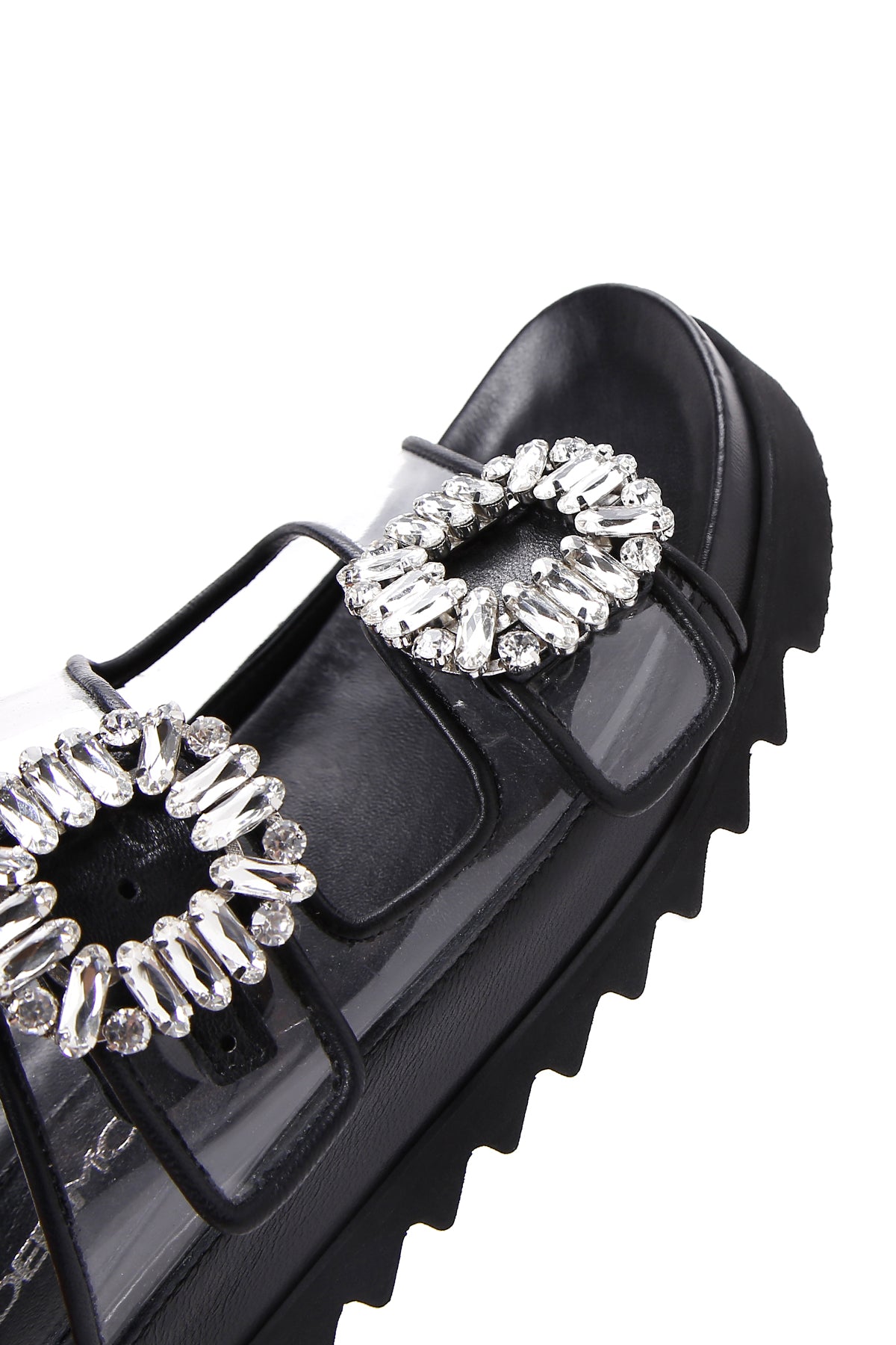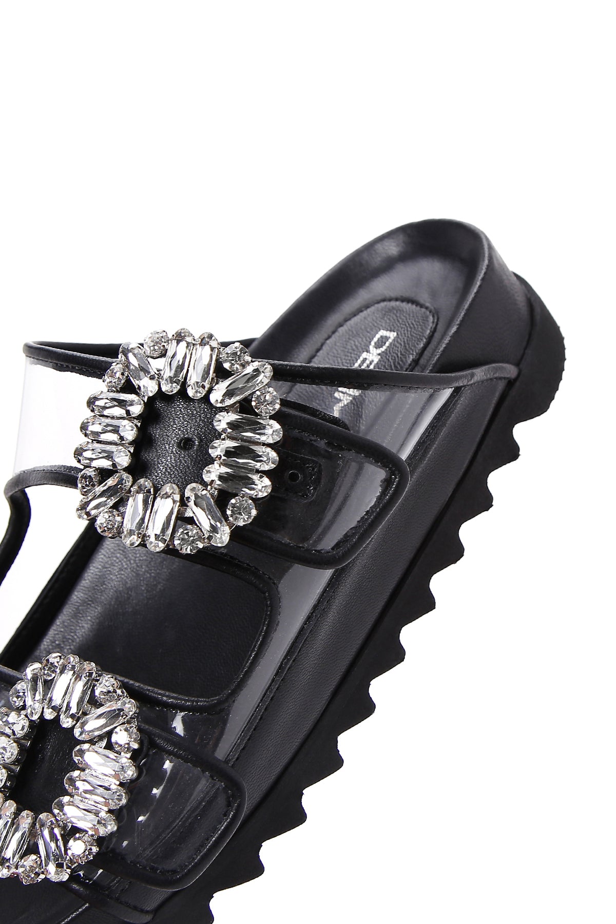 Derimod’un Zarif ve Şıklığı bir arada sunan Kadın Siyah Deri Taşlı Şeffaf Terlik ile tarzınızı konuşturun. Ürünün kodu: 23SFD120414 11