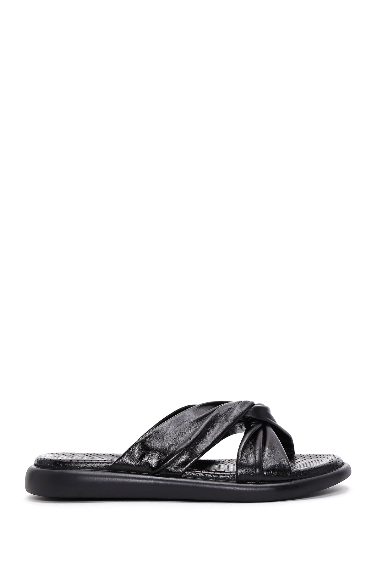 Derimod’un Zarif ve Şıklığı bir arada sunan Kadın Siyah Deri Terlik ile tarzınızı konuşturun. Ürünün kodu: 24SFD360018 11