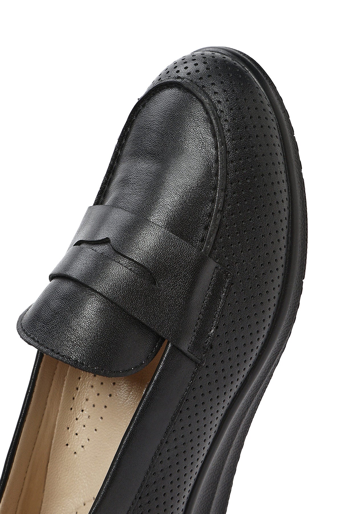 Kadın Siyah Dolgu Topuklu Deri Comfort Loafer