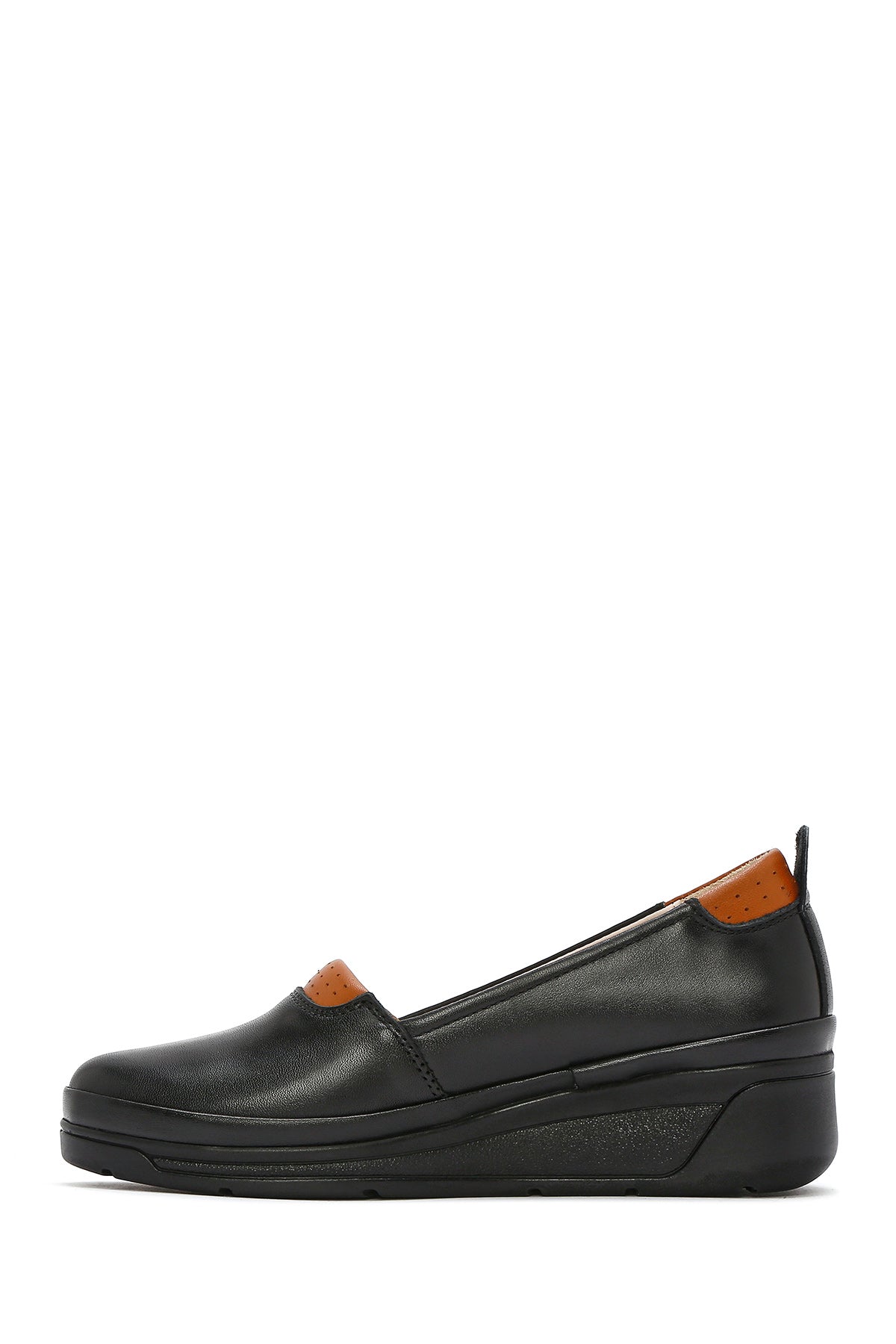 Kadın Siyah Dolgu Topuklu Deri Konfor Loafer