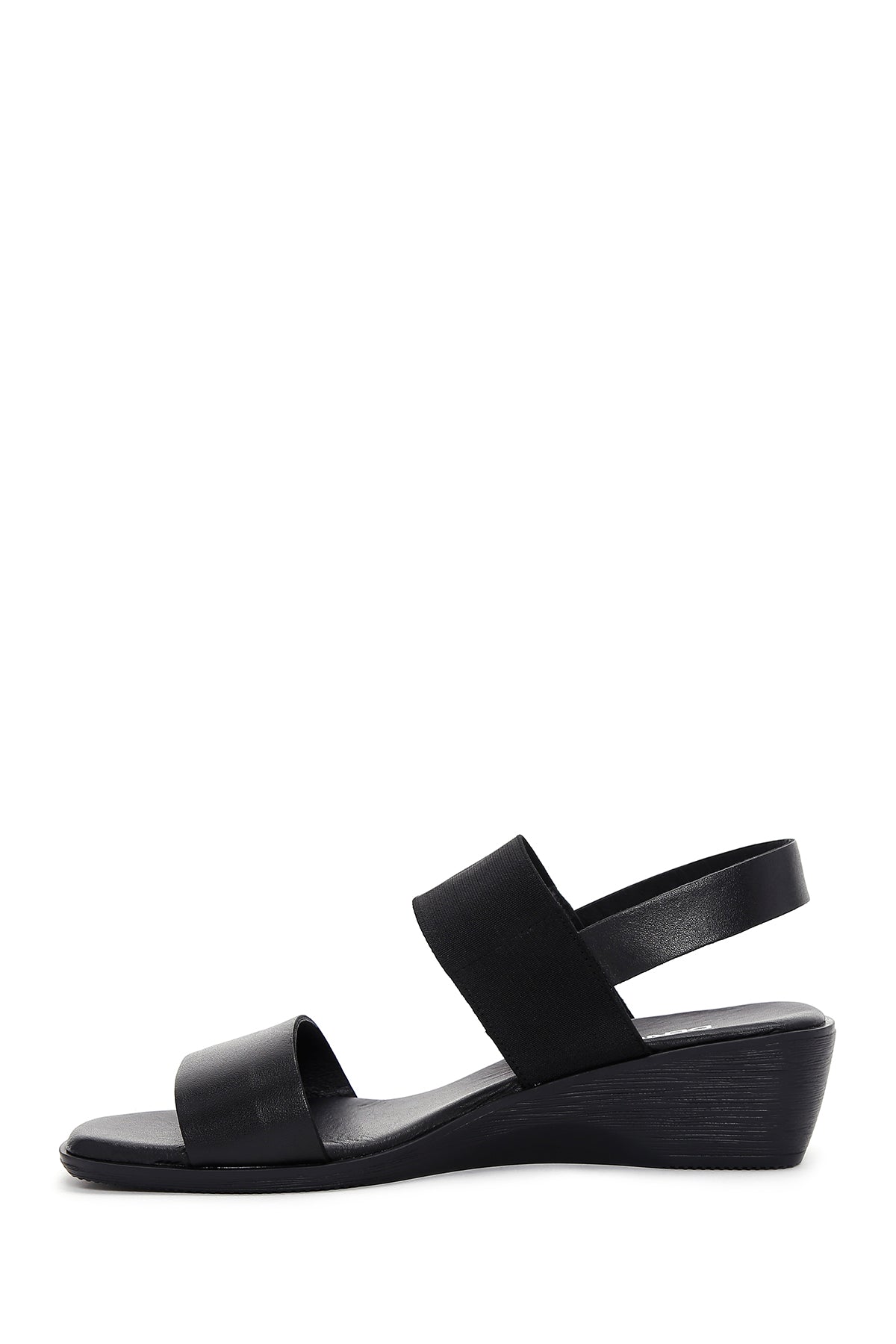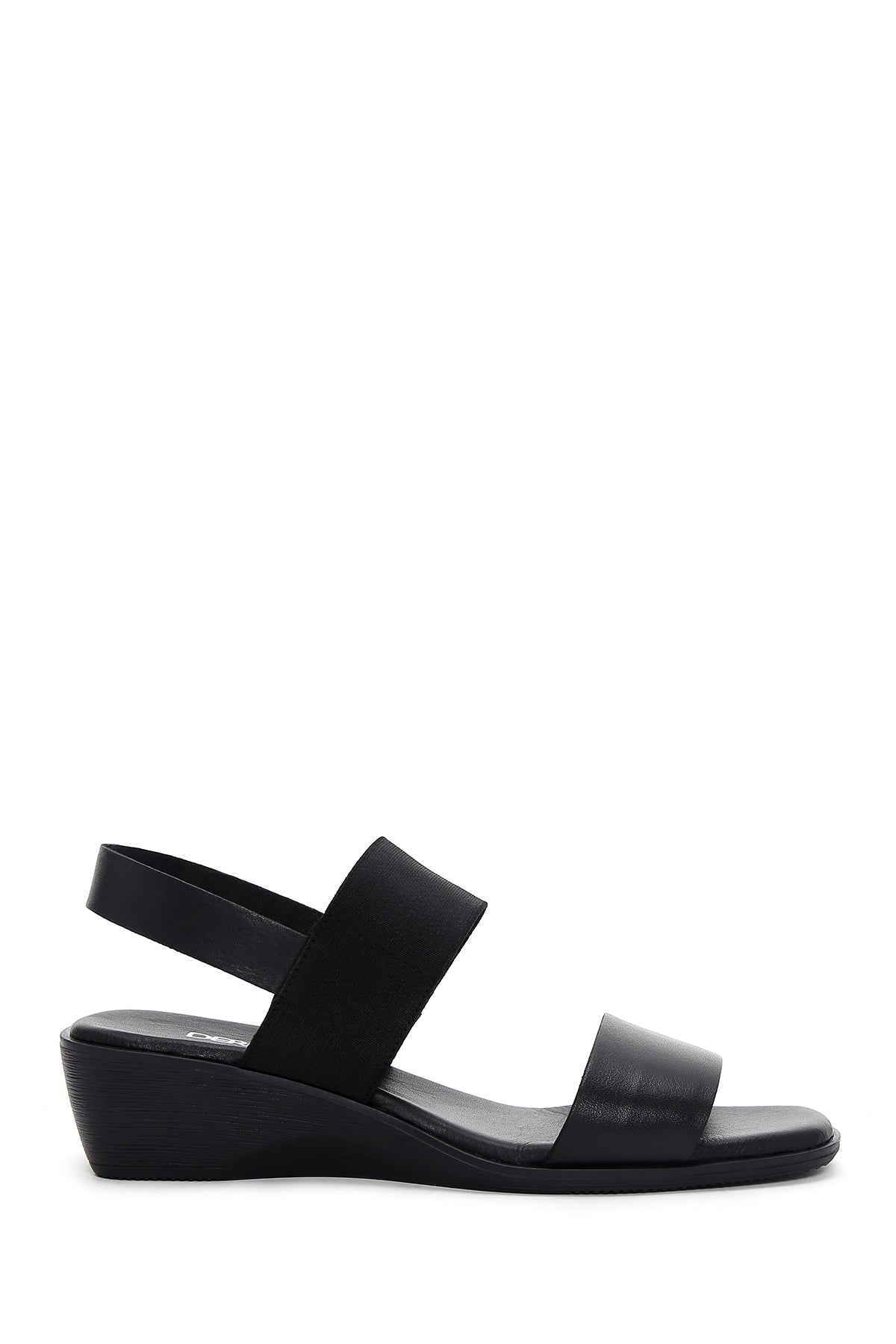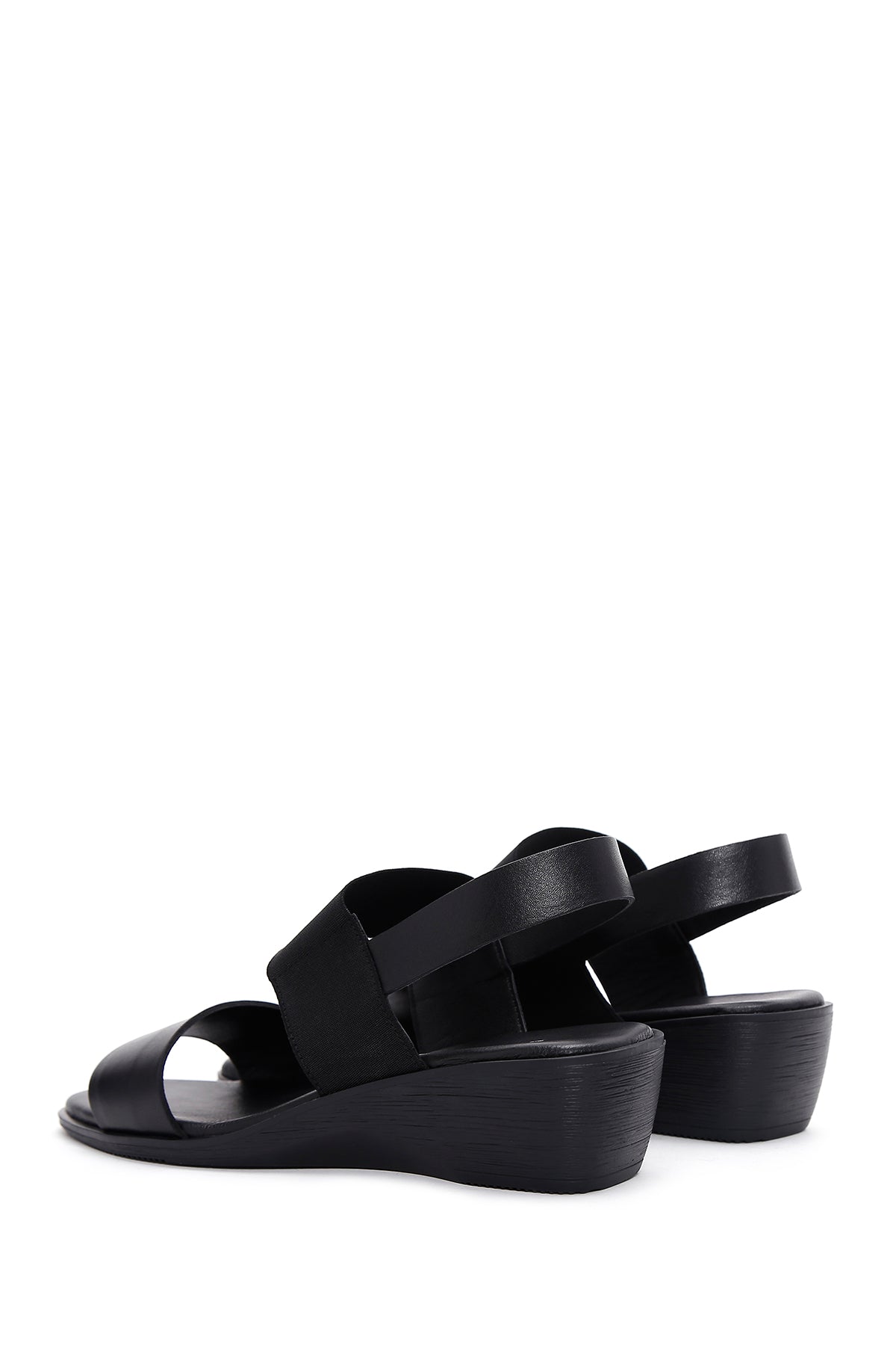 Kadın Siyah Dolgu Topuklu Deri Sandalet