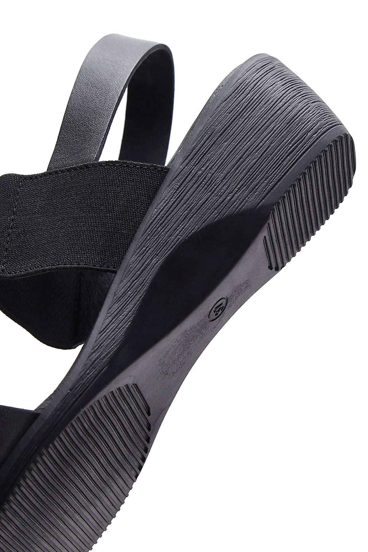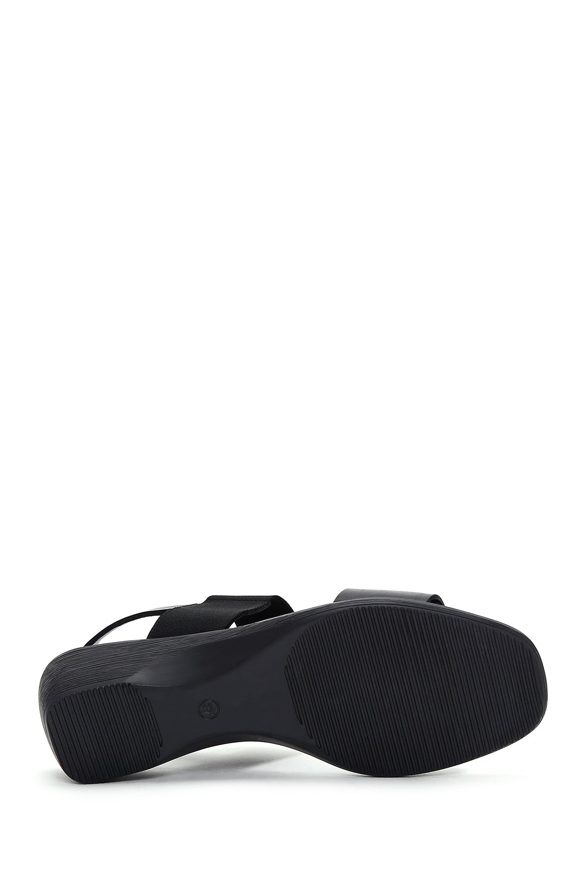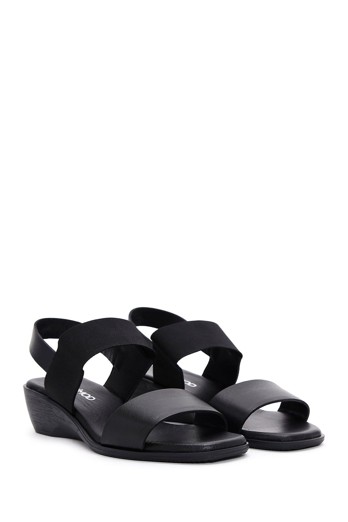 Kadın Siyah Dolgu Topuklu Deri Sandalet