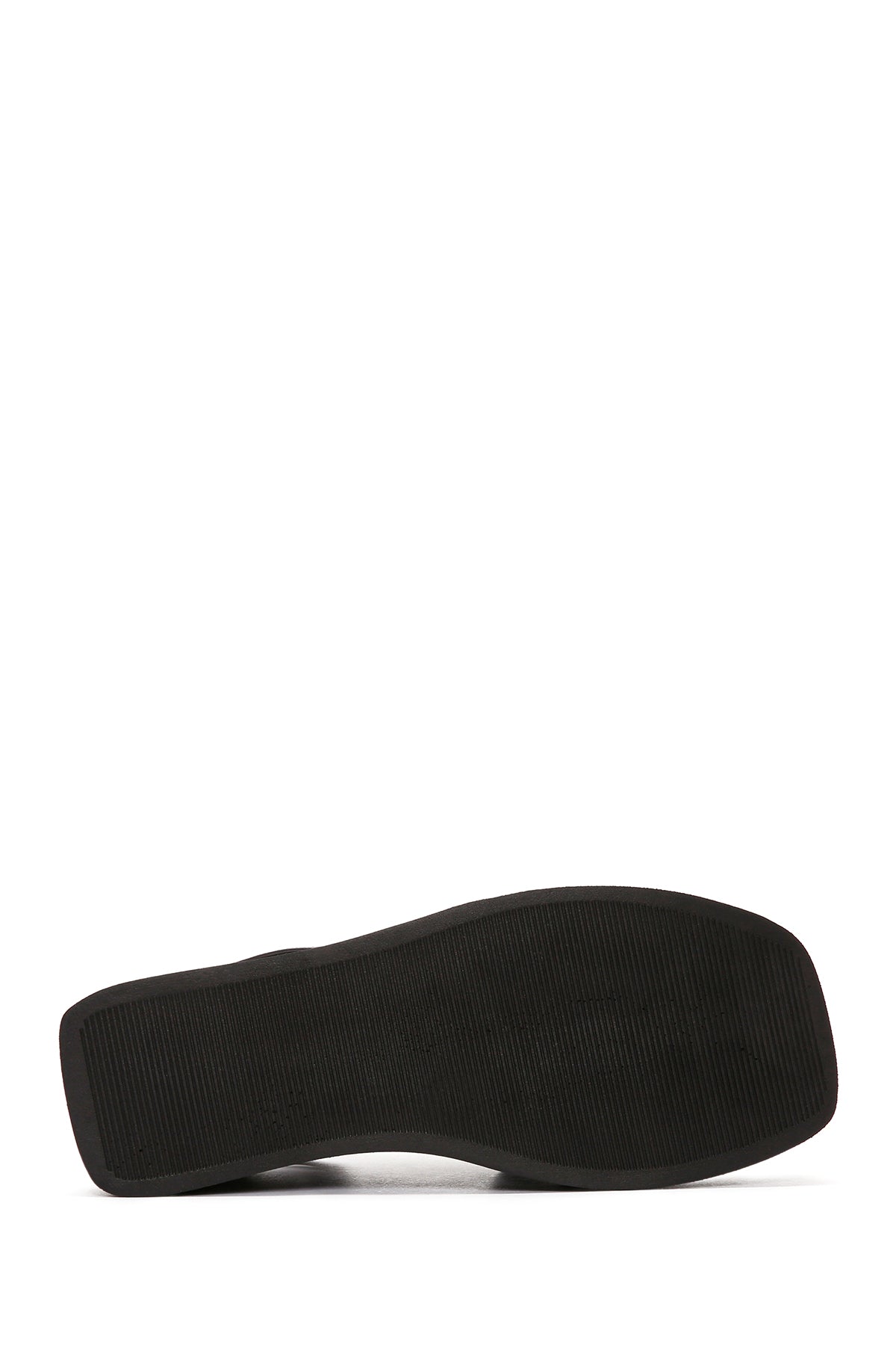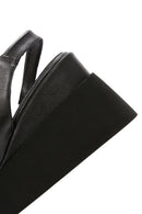 Kadın Siyah Dolgu Topuklu Deri Sandalet