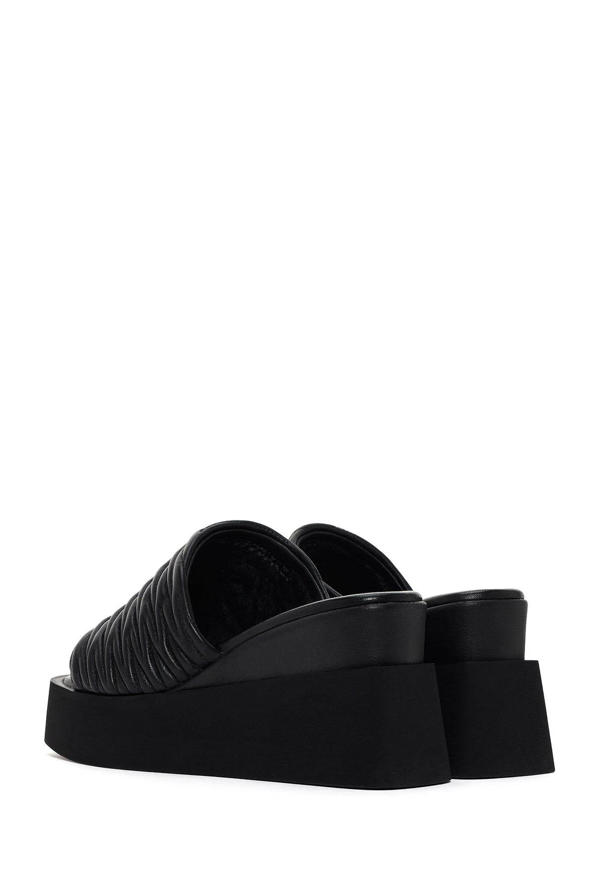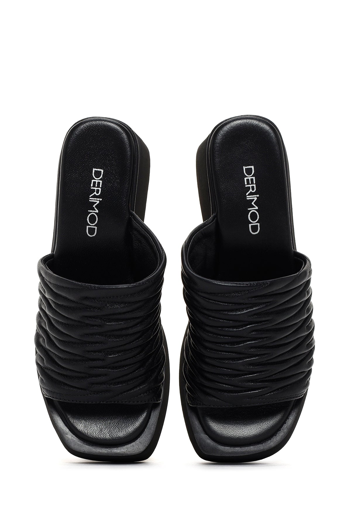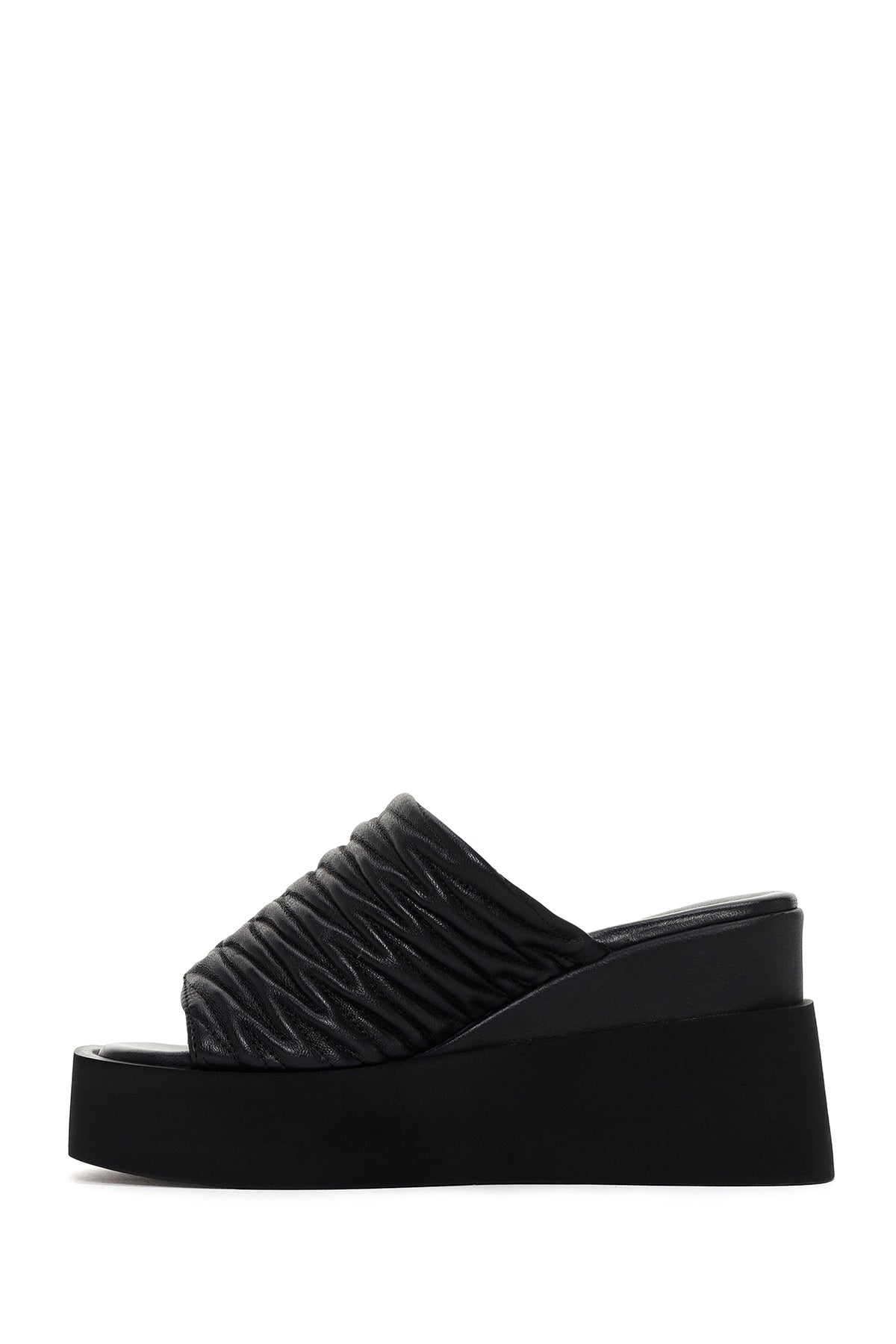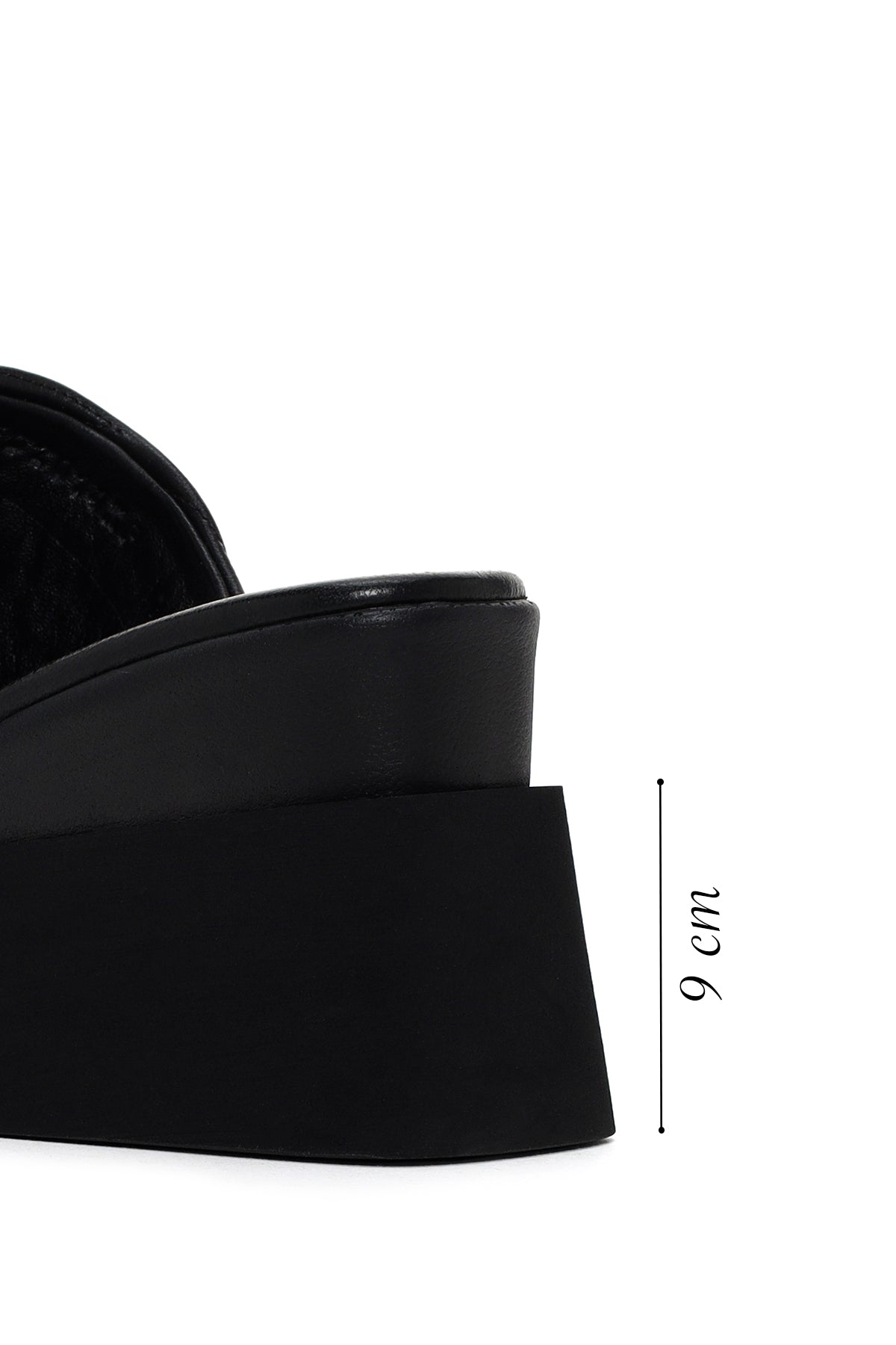 Kadın Siyah Dolgu Topuklu Deri Terlik