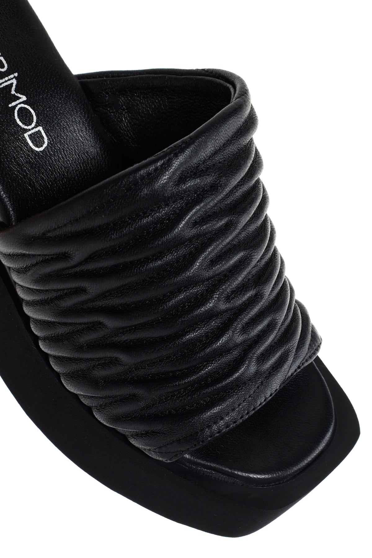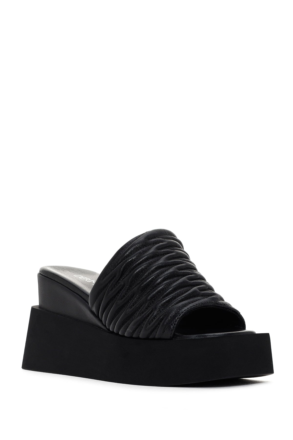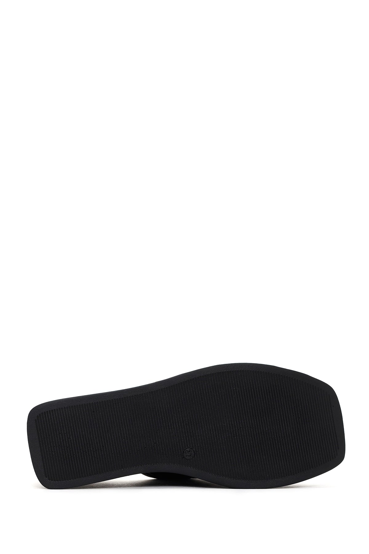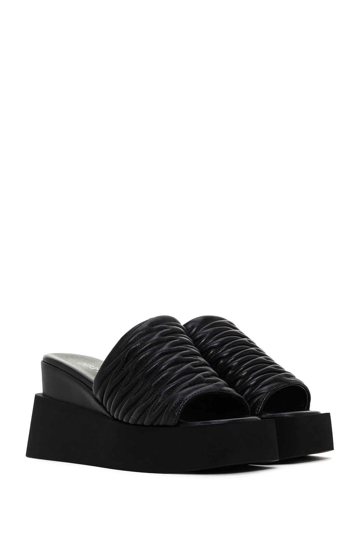 Kadın Siyah Dolgu Topuklu Deri Terlik