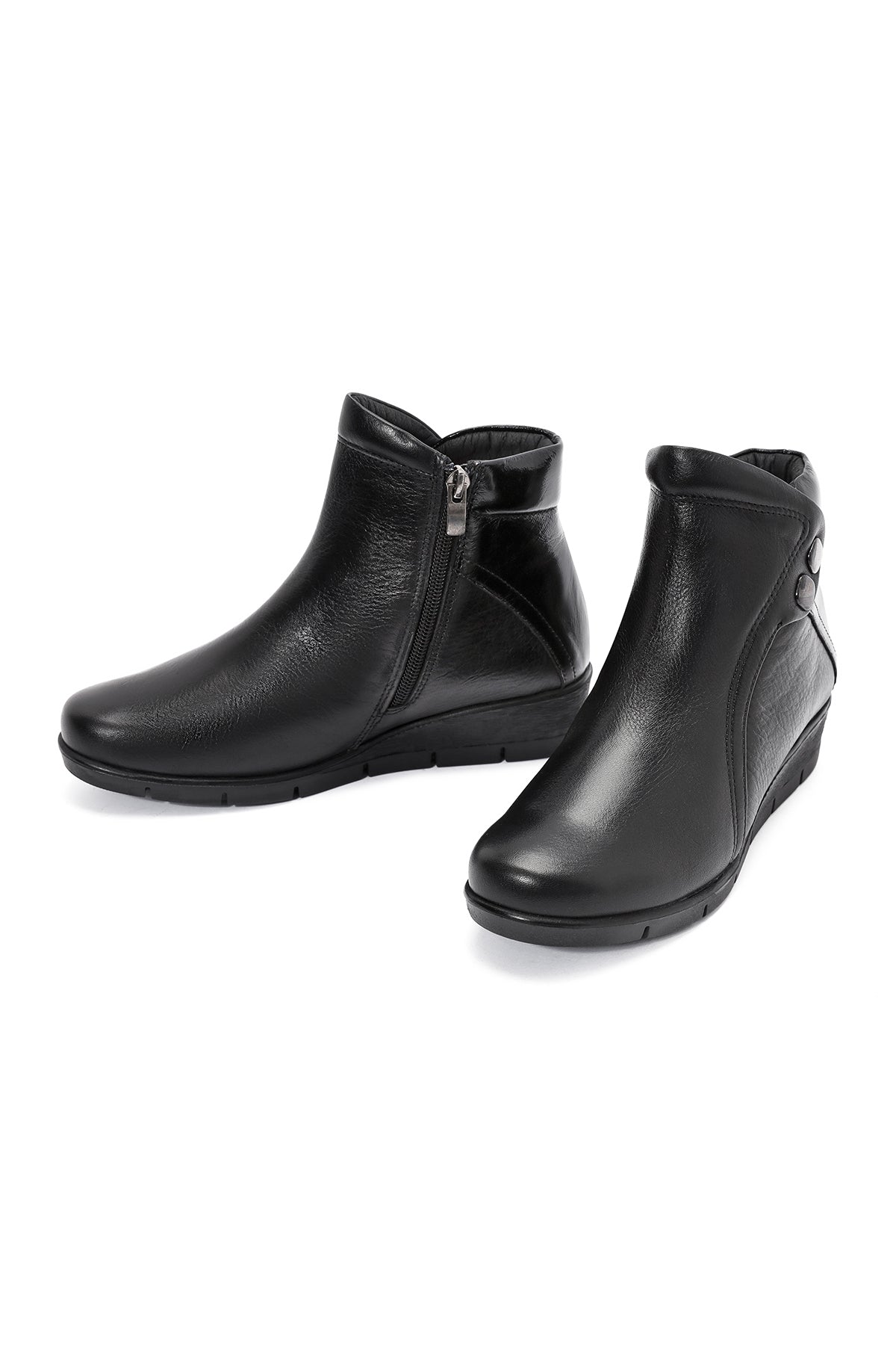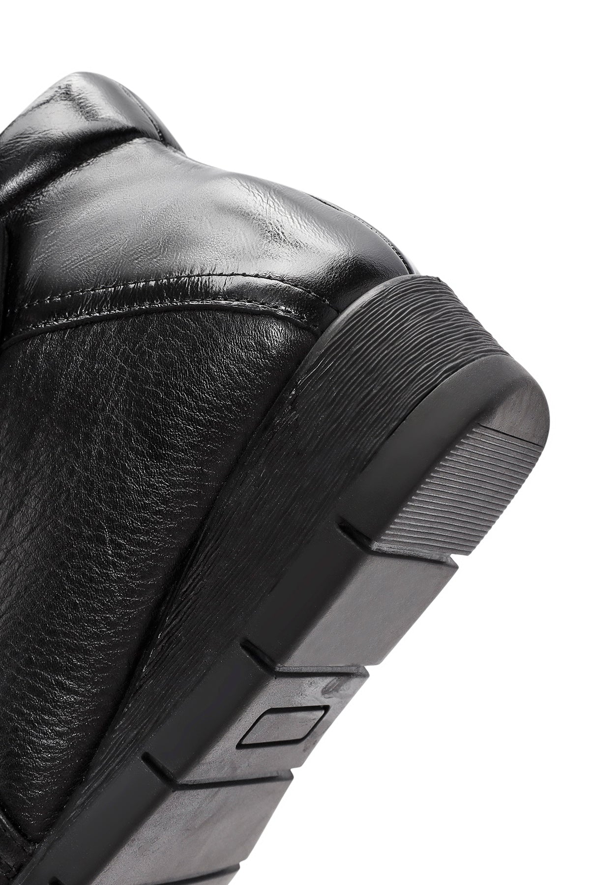Günlük kullanım için tasarlanan siyah deri comfort bot, modern tasarımı ve kullanışlı özellikleriyle öne çıkıyor. 3,5 cm yüksekliğindeki topuğu dengeli bir duruş sağlarken, yan fermuarlı tasarımı kolay giyim imkanı sunuyor. Tekstil iç astarı ve karışık deri yüzeyi ile dört mevsim kullanılabilen model, özellikle sonbahar ve kış aylarında günlük kombinlerin vazgeçilmez parçası oluyor. Jean ve casual pantolonlarla mükemmel uyum sağlayan bot, ofisten hafta sonu aktivitelerine kadar geniş bir kullanım alanı vadediyor. Ürün kodu: 24WFD237114