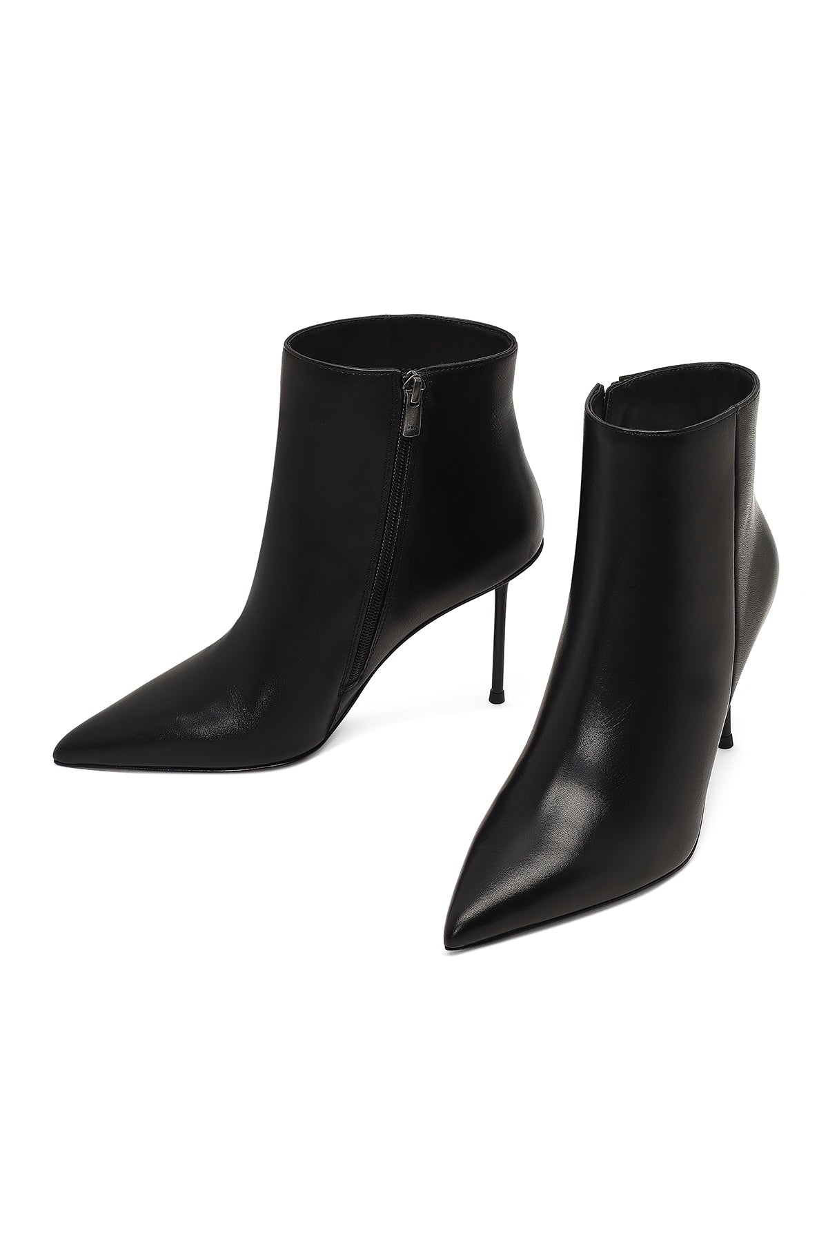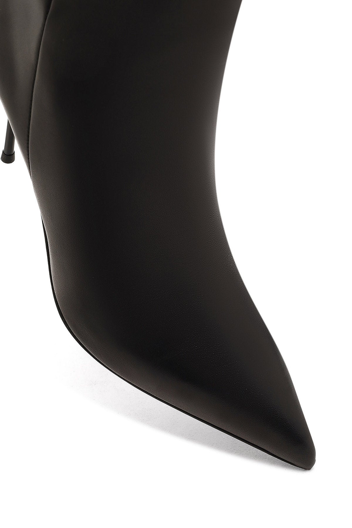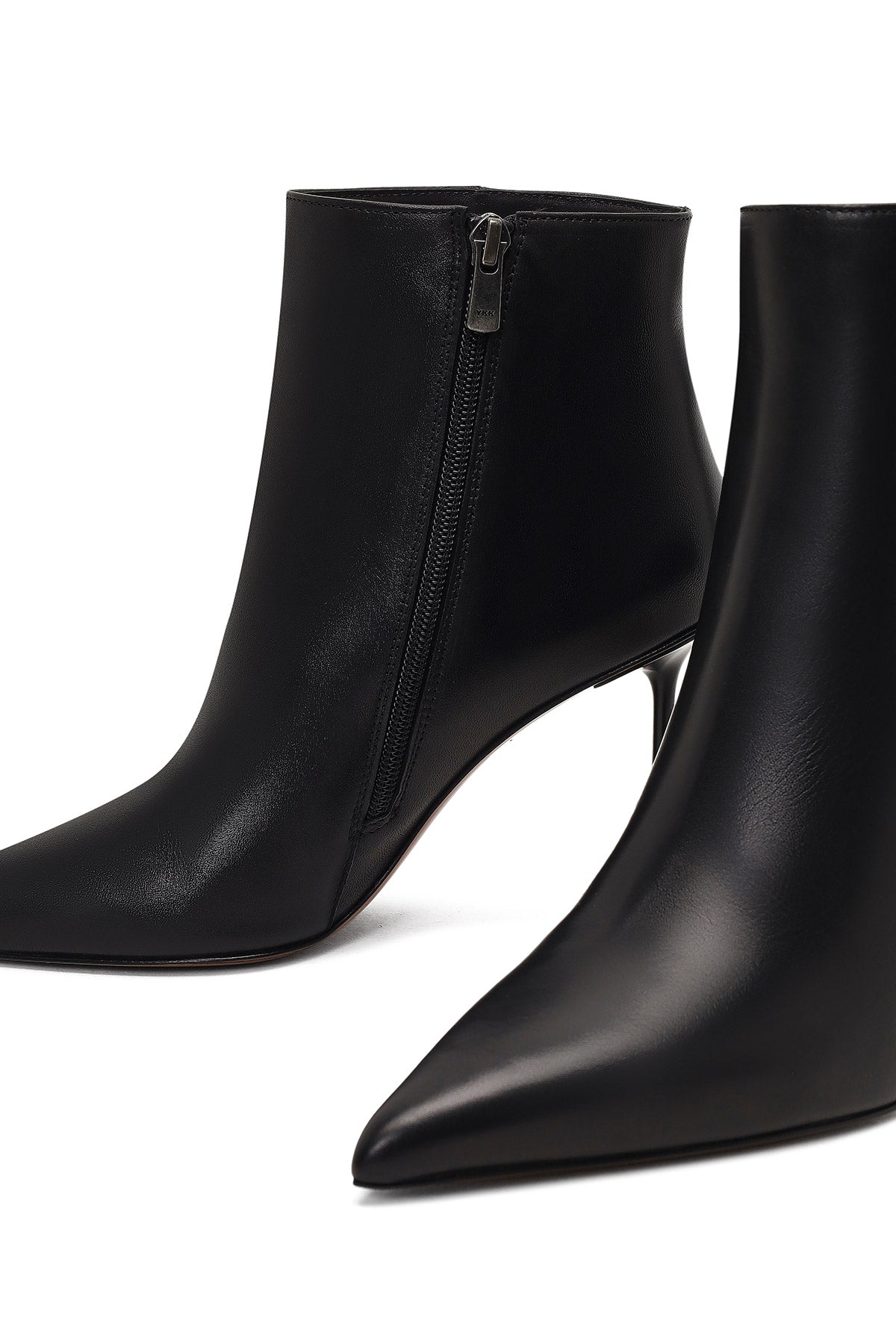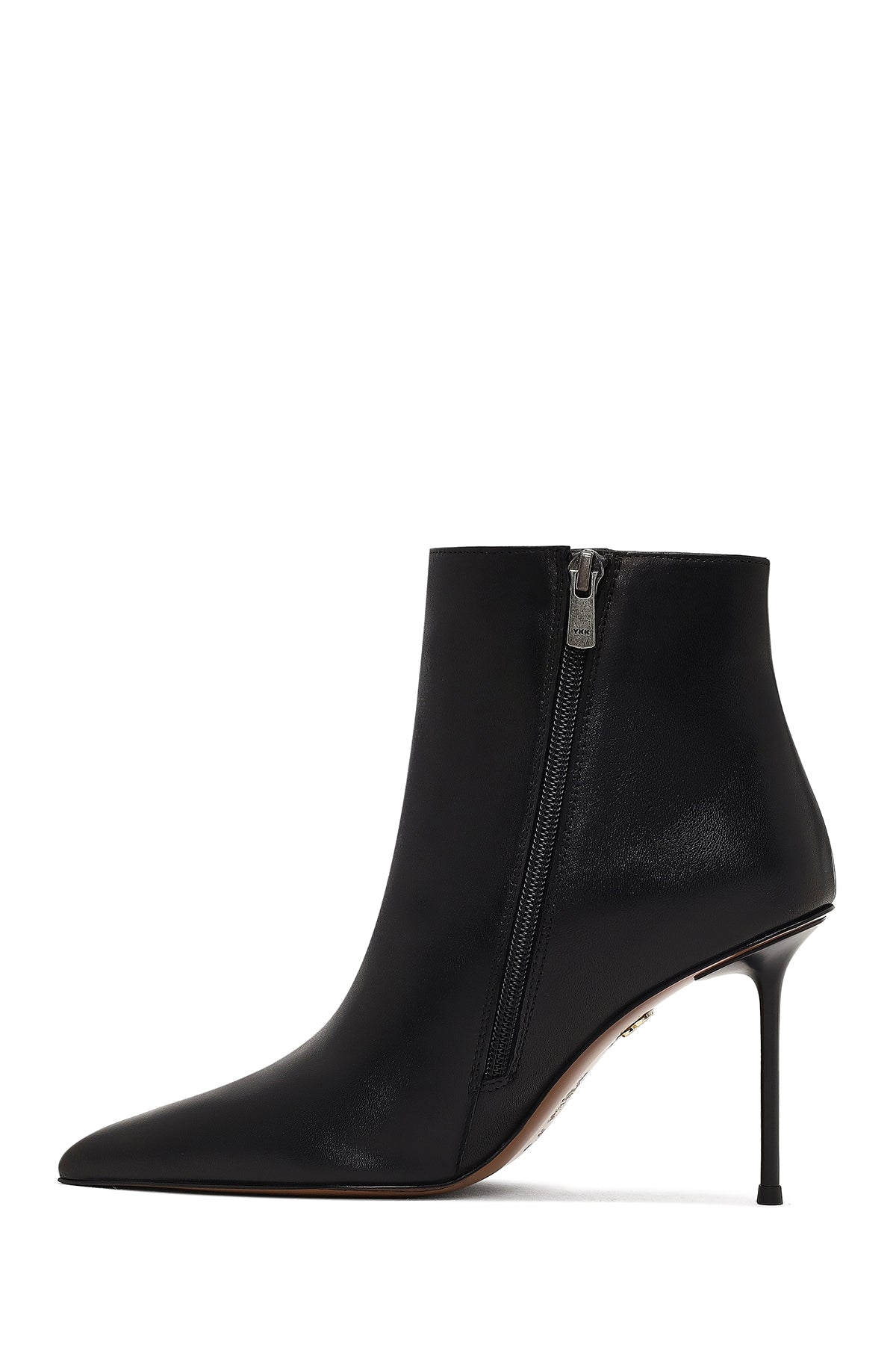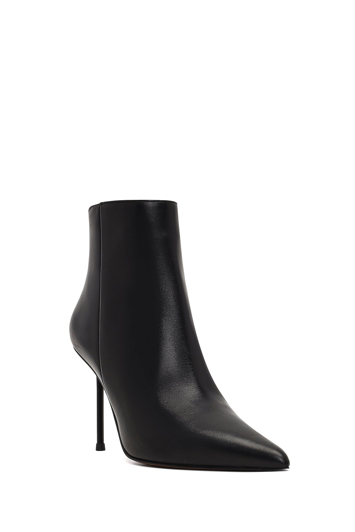 Derimod'un kış koleksiyonundan, vidala deri kullanılarak tasarlanan siyah bot modeli, 9 cm yüksekliğindeki ince topuğu ile zarif bir görünüm sunuyor. Yan fermuar detayı ile kolay giyim sağlayan model, tekstil iç astarı ile şık bir tasarım sergiliyor. Sivri burun formu ve minimalist çizgileriyle dikkat çeken bot, elbiselerden eteklere, pantolonlardan taytlara kadar geniş bir kullanım alanı sunuyor. Sonbahar ve kış mevsimlerinde özel davetlerden ofis kullanımına kadar her ortamda tercih edilebilir. Ürün kodu: 25WFD101218