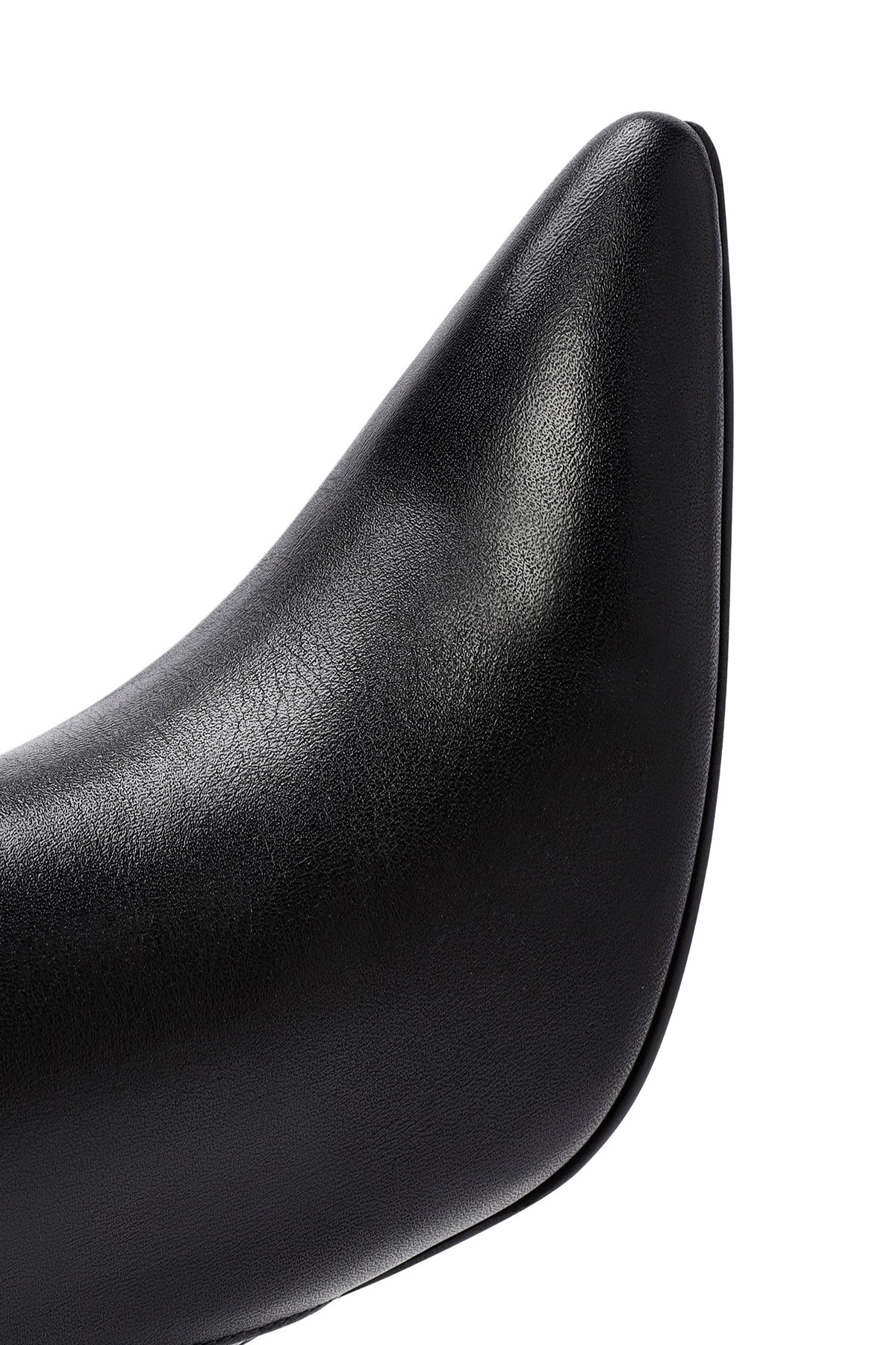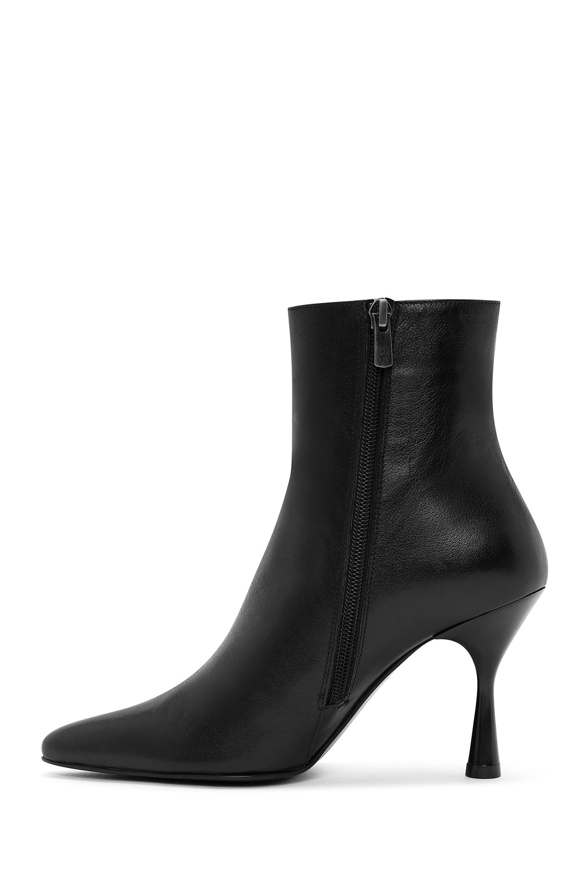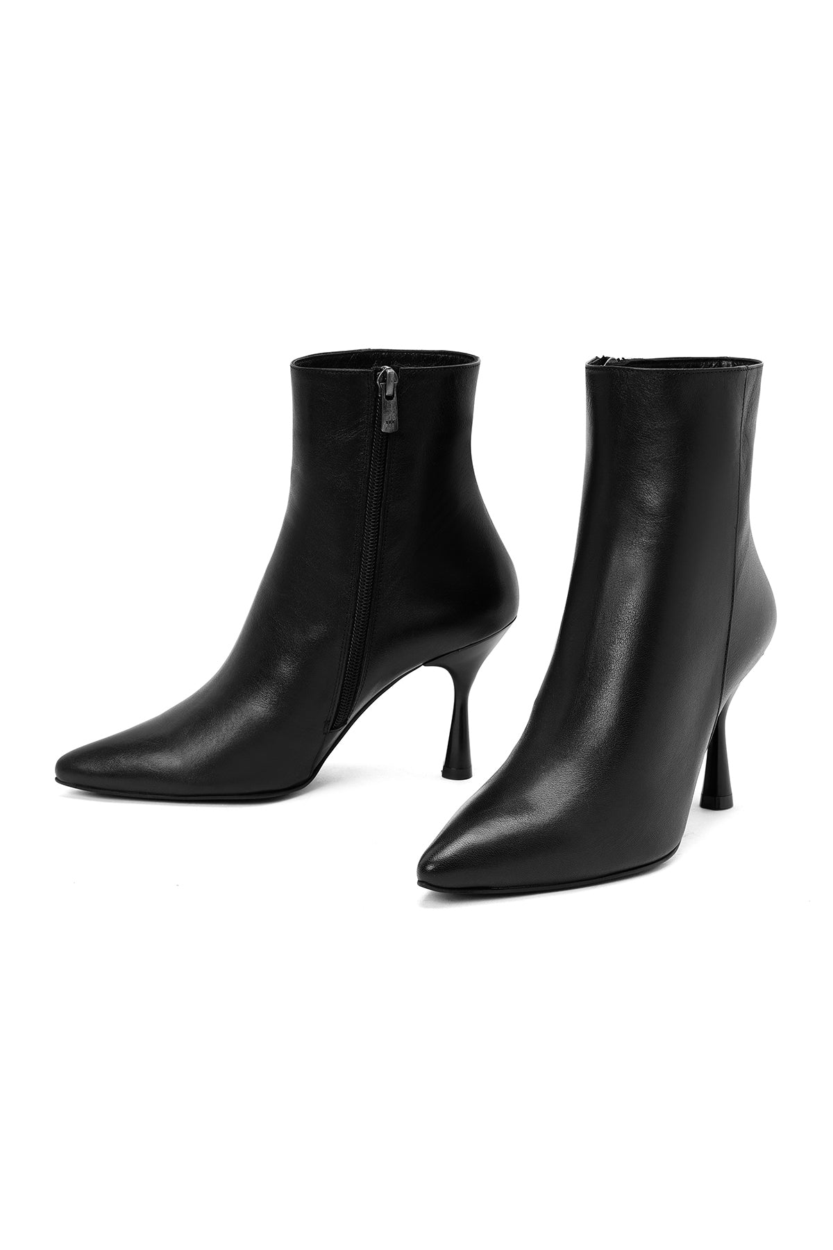 Derimod'un kış koleksiyonundan, vidala deri ile üretilen siyah bot modeli, 9 cm yüksekliğindeki ince topuğu ile zarif bir görünüm sunuyor. Yan fermuarlı tasarımı ile kolay giyim sağlayan model, tekstil iç astarı sayesinde mevsim şartlarına uyum sağlıyor. Sivri burun formu ve minimalist tasarımıyla dikkat çeken bot, ofis kombinlerinden gece kıyafetlerine, etek takımlardan dar paça pantolonlara kadar geniş bir kullanım alanı sunuyor. Sonbahar ve kış mevsimlerinde tercih edilebilir. Ürün kodu: 25WFD131218