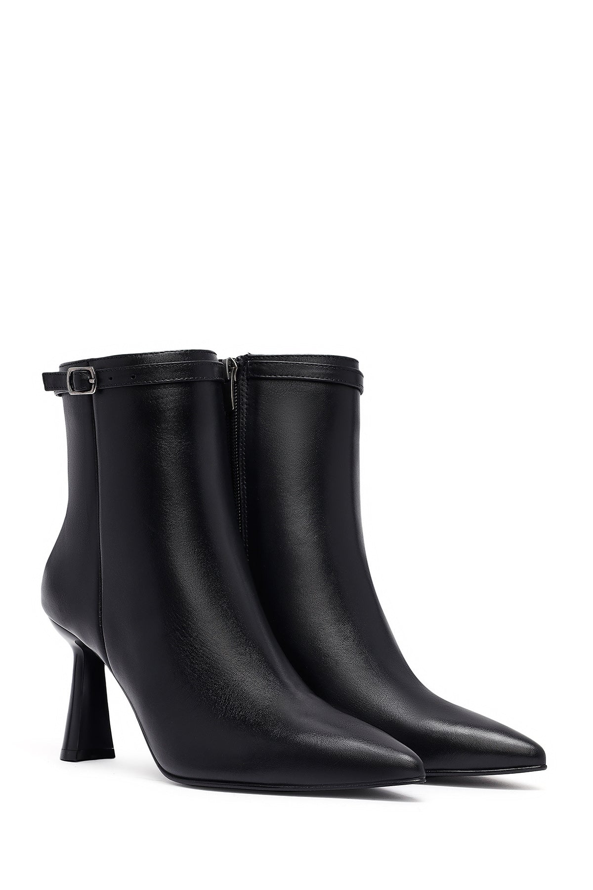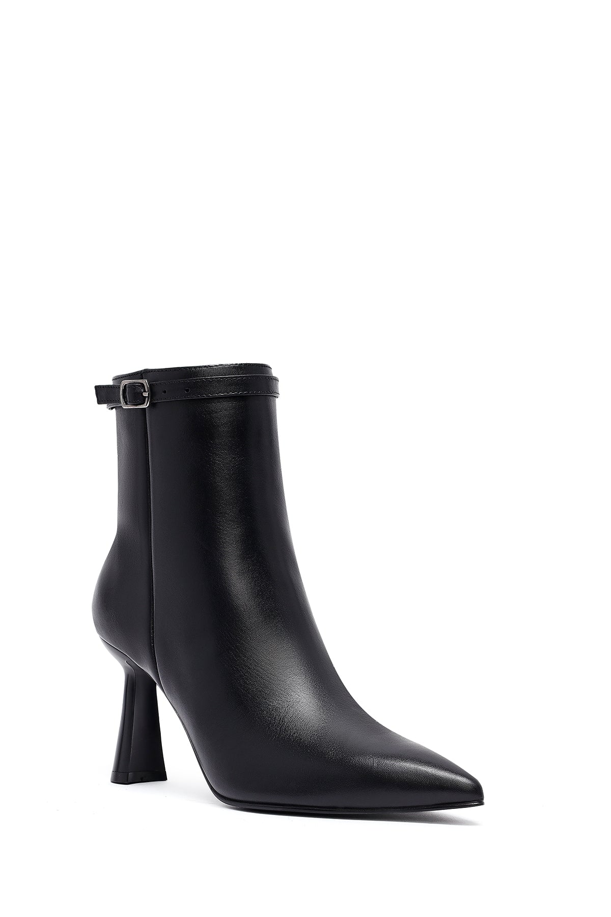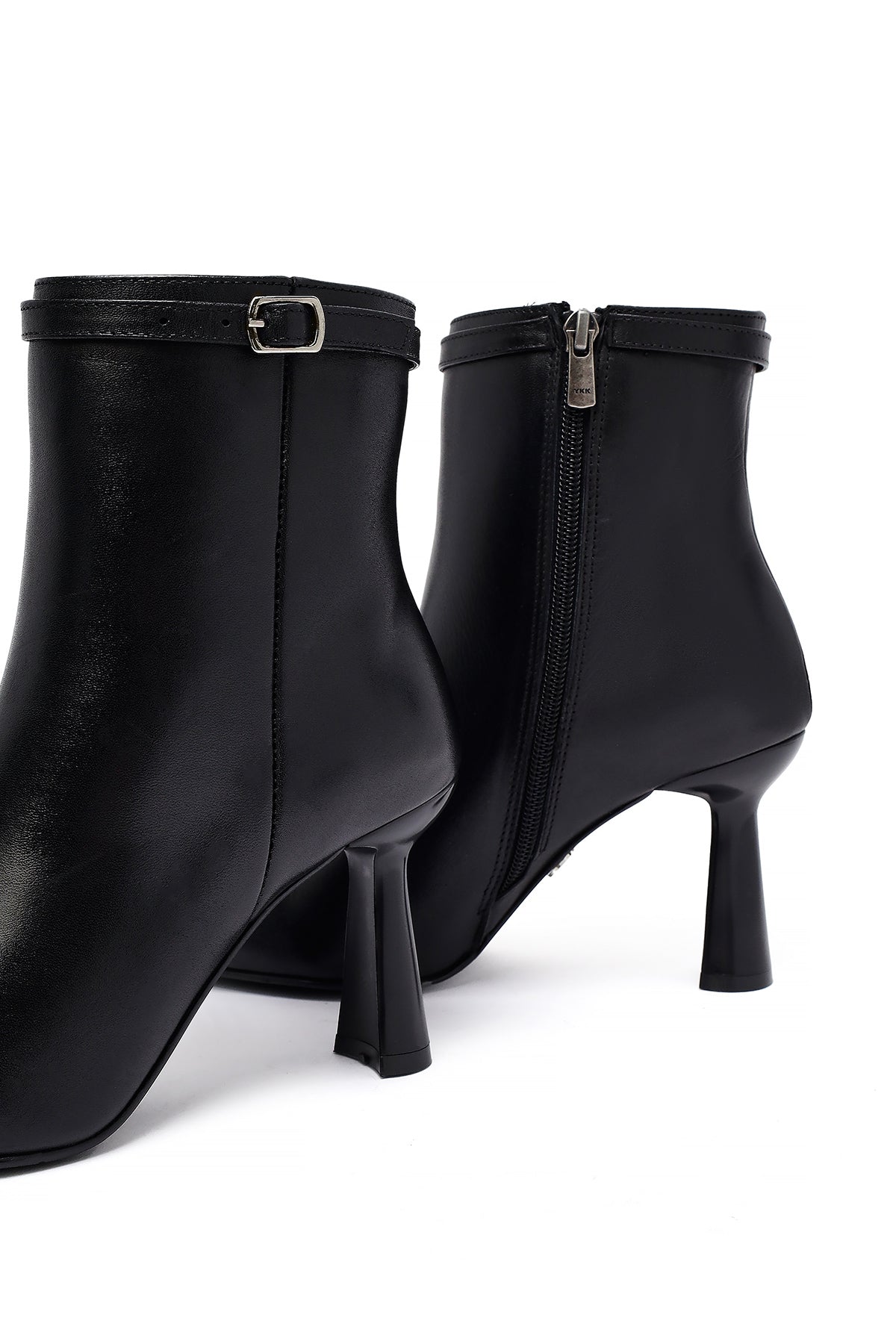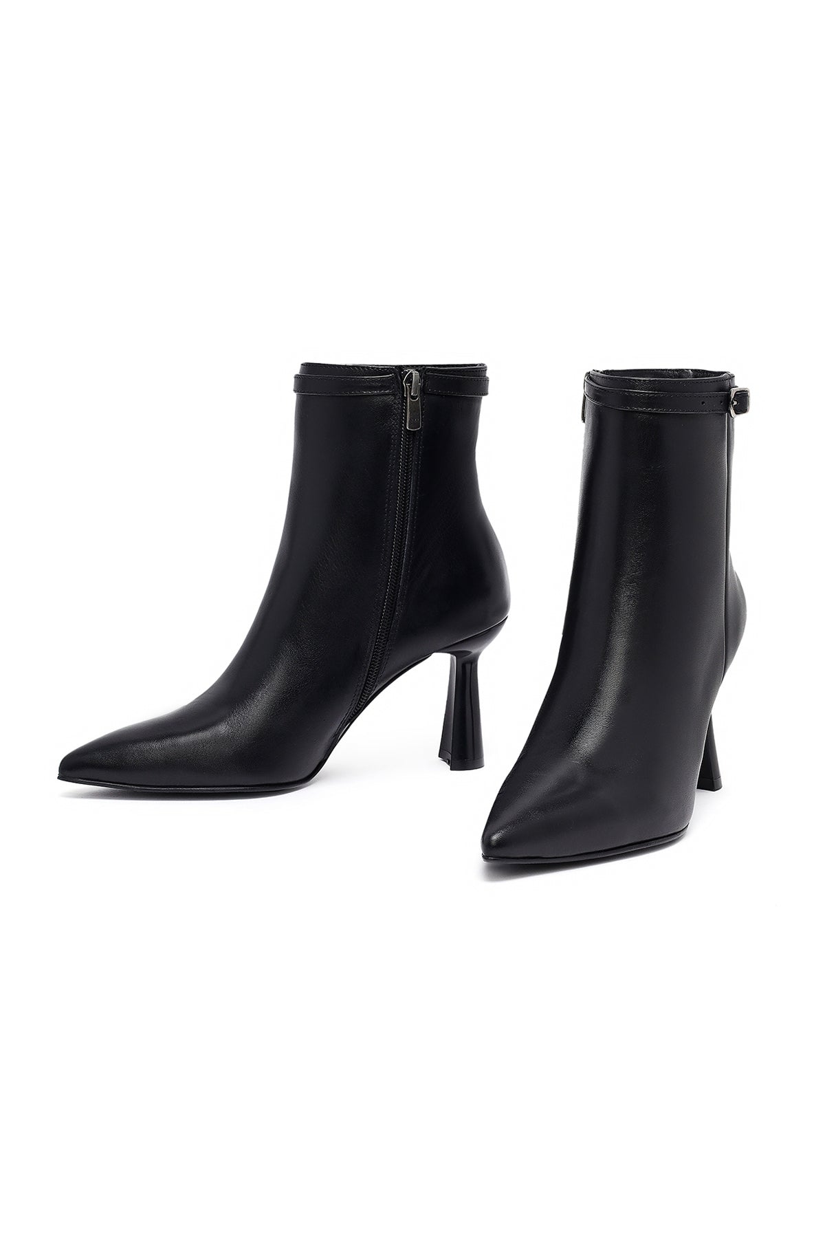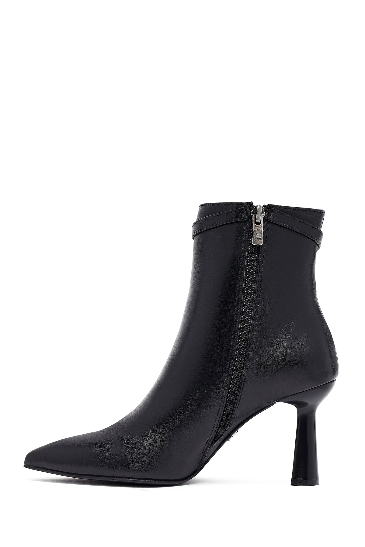 Kadın Siyah Fermuarlı İnce Topuklu Deri Bot